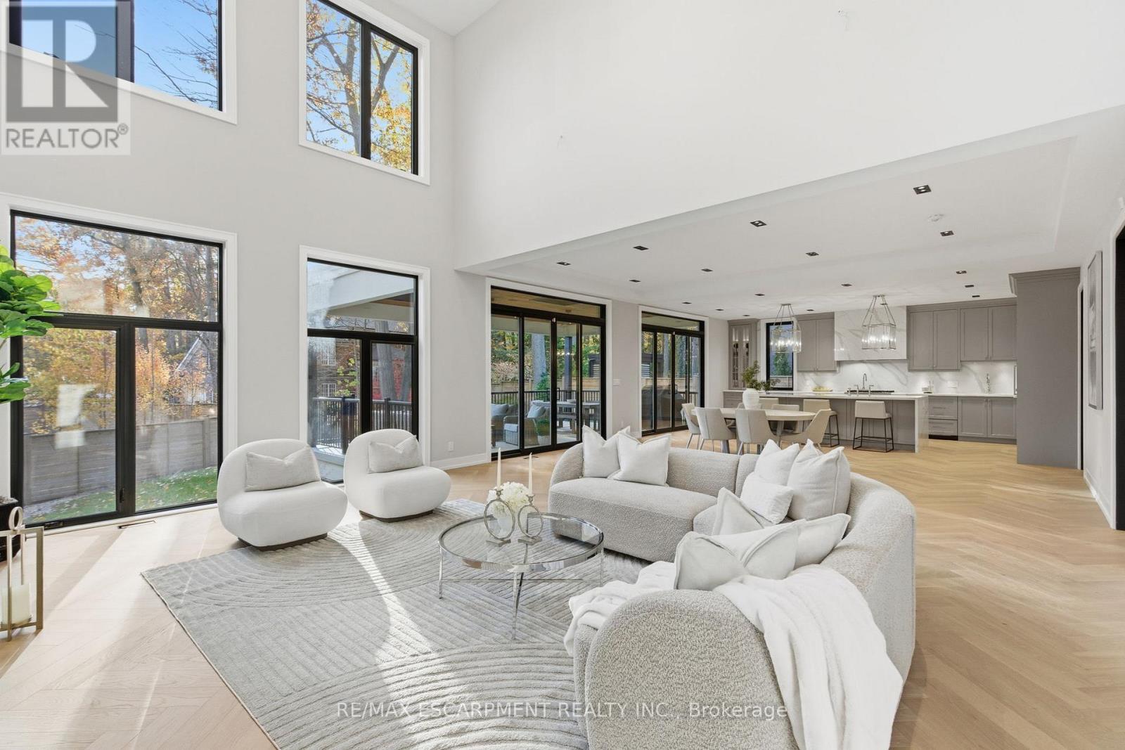 An exceptional custom-built estate by Montbeck Homes, this stunning Modern Georgian masterpiece offers over 7,500 sq. ft. of refined living in the heart of Mineola West, just 400 meters from Kenollie Public School. Set on a quiet, private lot, the home blends timeless elegance with cutting-edge design. The striking stone facade, black-framed windows, and metal roof with dormer accents exude curb appeal, while manicured gardens and an 8-car driveway complete the impressive exterior. Inside, a 26-ft grand foyer with a showstopping chandelier introduces soaring ceilings, herringbone white oak floors, and sleek Italian quartz tile throughout. The chef's kitchen is a showpiece, with a waterfall island, premium appliances, and custom cabinetry, opening to a skylit covered porch with a gas fireplace and outdoor kitchen rough-in-perfect for year-round entertaining. The two-storey great room stuns with a 26-ft feature wall, modern fireplace, and 42-bulb chandelier. Upstairs, the primary suite offers a private terrace, a custom walk-in, and a spa-worthy ensuite with heated floors. Each additional bedroom features bespoke detailing and designer finishes. Every bathroom has heated floors. The lower level with heated floors, walkout, and bath/bar rough-ins offers endless possibilities - home theatre, gym, or in-law suite. With dual furnaces, EV charging, smart home readiness, and professional landscaping, this home defines luxury living just minutes from Port Credit Village, top schools, marinas, parks, and the QEW. Experience the art of living-refined, inspired, and absolutely unforgettable. Luxury Certified. (id:51158)