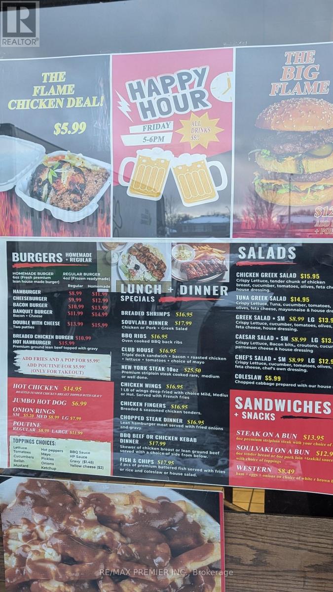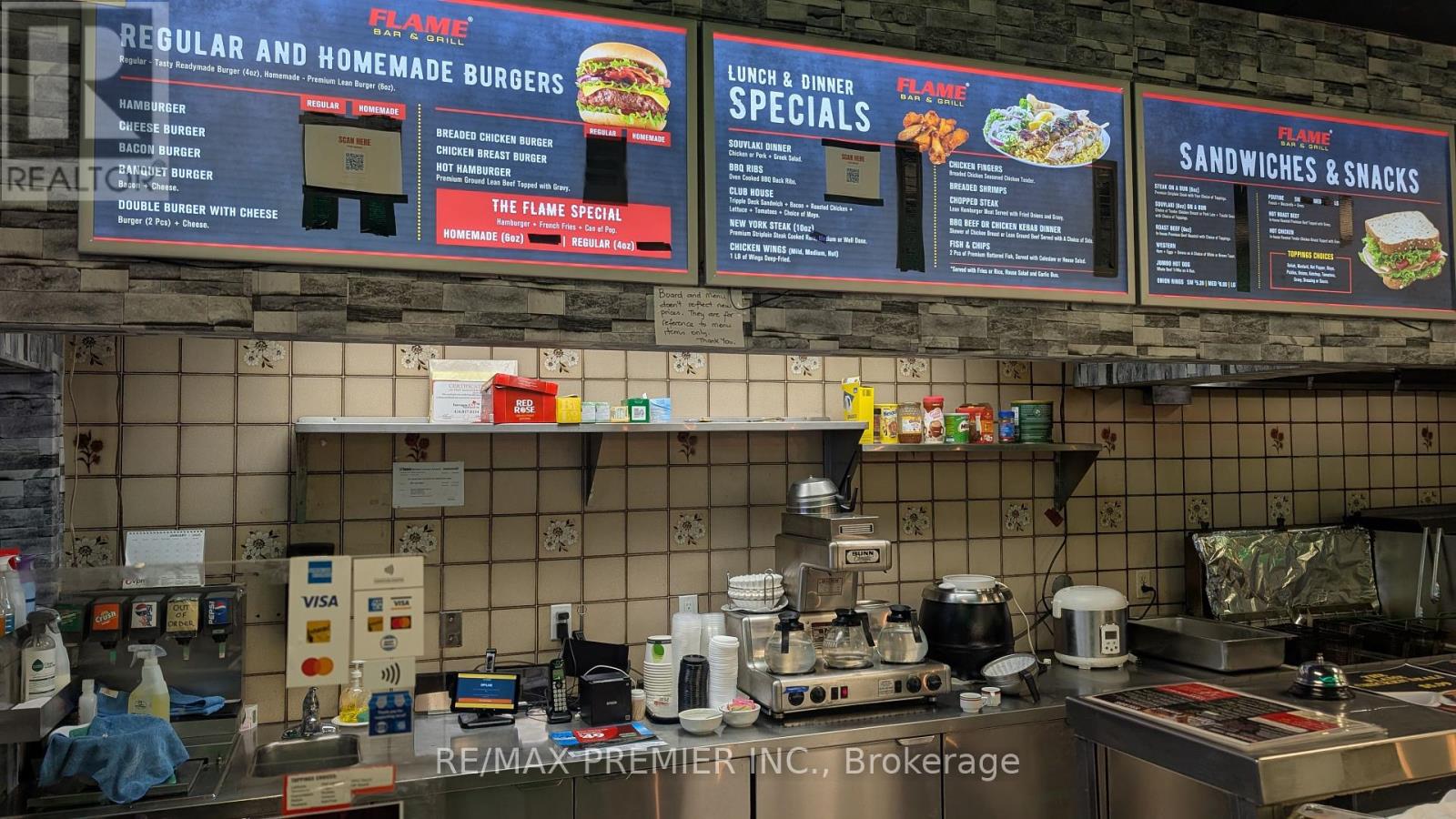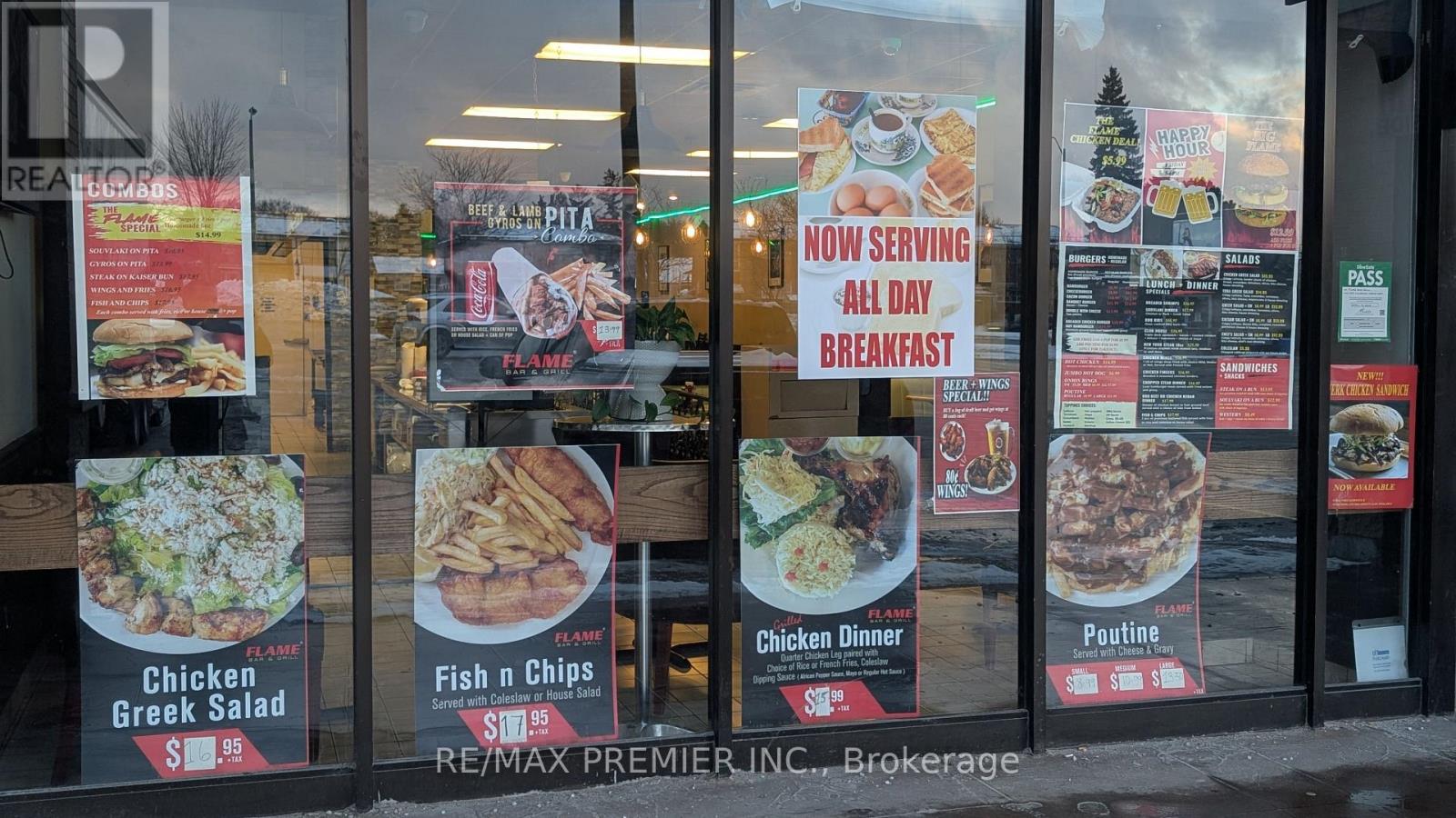 Substantial sales recorded in 6 digits in 2024. LLBO licenced for 112+90 seats, 4+5 years lease term. Popular type of Canadian food offerings (see pictures)+Carribean style Specials by the Owner. YES, you can change selection. YES, you can extend open hours. YES, You are the Boss! YES, Owner will coach! NOT a franchise. Almost 30 years established. Flame Bar and Grill at a busy intersection of Keele and Lawrence offers it all! Large interior floor size, ample storage space, large plaza location with major anchor tenants such as LCBO, Tim Hortons, Metro, Walmart, Dollarama, Penguin Pick-up, etc. Enormous amount of customers daily, walk-ins, drive by's and huge exposure for your business. Large Condo Development posted start day here soon. All chattels owned and included, many improvements to the business completed, 10k in security cameras installed, additional large tvs for sports events, large clientele base. Opportunity for further growth, and to diversify your food offerings. Good working hours. Seperate streams of income with quick-service and full sit down eat in areas, separate liquor bar/lounge area for your evening parties, events and entertainment. Approx 2460 sqft of main floor area, plus fully finished lower floor area. If you are in the market, sure you have seen places, but not many worth the attention. This one must be seen to appreciate the current and further potential! Seller is willing to offer training to a new owner. Transferable liquor license.**EXTRAS** All equipment is owned except 2 pos terminals, operating name is included, turn key operations. Owner is retiring. See it now! (id:51158)