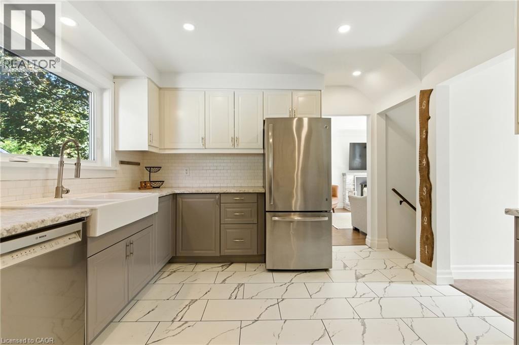 Welcome to 139 Toby Crescent, a beautifully maintained 1½ storey brick and stone home nestled on a quiet, family-friendly street in one of Hamilton’s most sought-after neighbourhoods. This 4-bedroom, 3-bath home offers the perfect balance of character, comfort, and convenience—just minutes from major highways, public transit, parks, and shopping. The main floor welcomes you with a spacious living and dining area centered around a cozy wood-burning fireplace with an updated insert—ideal for relaxing evenings. The bright, family-sized eat-in kitchen offers plenty of room for daily meals and entertaining. A versatile main-floor bedroom can easily serve as a home office or den, with a convenient 2-piece bathroom located near the rear entrance for easy access to the backyard oasis. Upstairs, you'll find two generously sized bedrooms, including a large primary suite with an oversized closet, along with a full 4-piece bathroom. The carpeted staircase and comfortable upper-level finishings make for a cozy retreat. The fully finished lower level adds valuable living space with a spacious rec room, office nook, additional bedroom, modern 3-piece bathroom, and a practical laundry area—perfect for growing families or guests. Step outside to enjoy your own private backyard getaway. The fully fenced yard is ideal for kids, pets, and entertaining. Soak up the summer by the on-ground pool or host unforgettable get-togethers on the patio in this beautifully cared-for outdoor space. A long paved driveway and detached garage provide ample parking and storage. Located within walking distance to Mohawk Sports Park, Mountain Brow trails, and King’s Forest Golf Club, and just a short drive to Limeridge Mall and essential amenities. Don’t miss your chance to live in this established and desirable community—where charm, space, and a backyard pool come together to create the ideal family home. (id:51158)