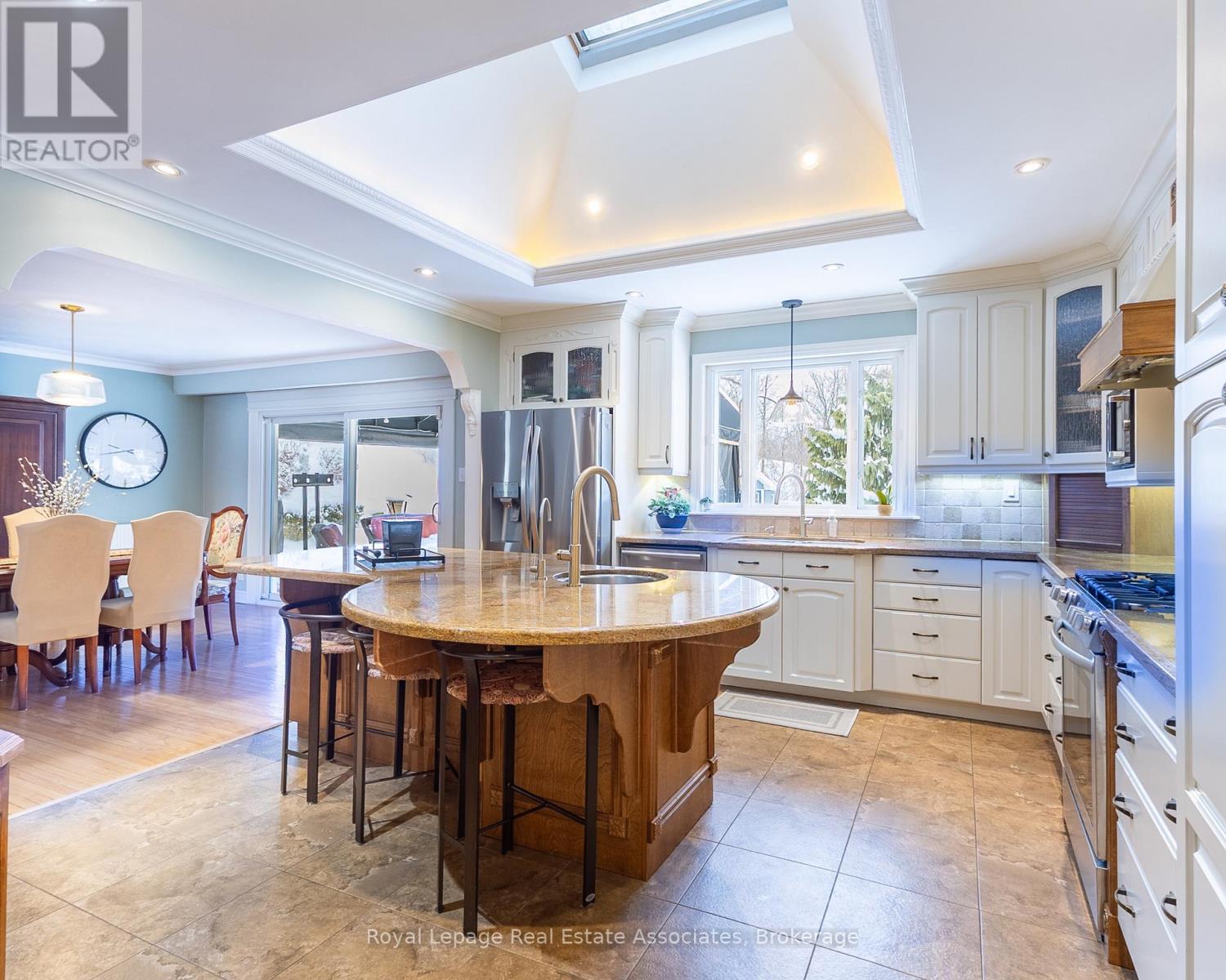 Tucked away on a quiet dead-end cul-de-sac court, this stunning raised bungalow combines elegance, comfort, and versatility with rare country-style privacy just steps from city living. Perfect for families, entertainers, or those seeking multi-generational living, this home offers an exceptional lifestyle. Inside, you'll find a spacious layout featuring 4 bedrooms above grade, including a primary suite with his-and-her closets and convenient semi-ensuite access. The home offers a luxurious 5-piece semi-ensuite bath plus a powder room with laundry, balancing style with everyday practicality. The heart of the home is the expansive gourmet kitchen with skylight, designed with both function and entertaining in mind. The adjoining dining area flows seamlessly to the backyard, creating a natural extension of your living space. Gather in the inviting family room with a cozy fireplace, or enjoy cinematic nights with the built-in drop-down screen. The lower level impresses with a second full kitchen, 3-piecebath, and a private dwelling unit with its own entrance-ideal for extended family, guests, or rental income. This self-contained suite features 1 bedroom, 1 bath, a kitchen, laundry, and storage. Car enthusiasts and professionals will love the double tandem heated garage, partially converted into a stylish hair salon while still offering generous storage. Additional parking is effortless with an attached carport and a driveway for 10+ vehicles. A large barn at the rear provides secure space for your collector car or extra storage. The backyard is a true resort-style retreat. Enjoy the pool, sauna, and cabana built by Jameson Pools in 2010, complemented by an outdoor fire pit-perfect for summer gatherings or quiet evenings under the stars. The expansive grounds invite both entertaining and private relaxation in equal measure. This property truly offers it all: luxury, functionality, and endless possibilities-all in an unparalleled setting. (id:51158)