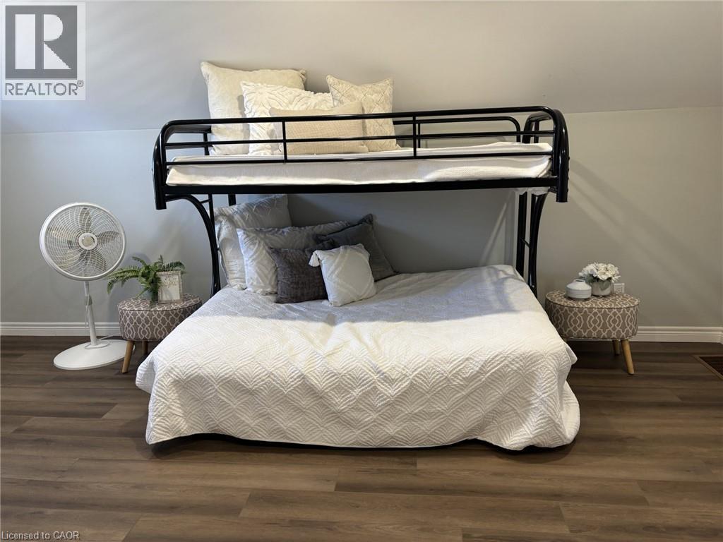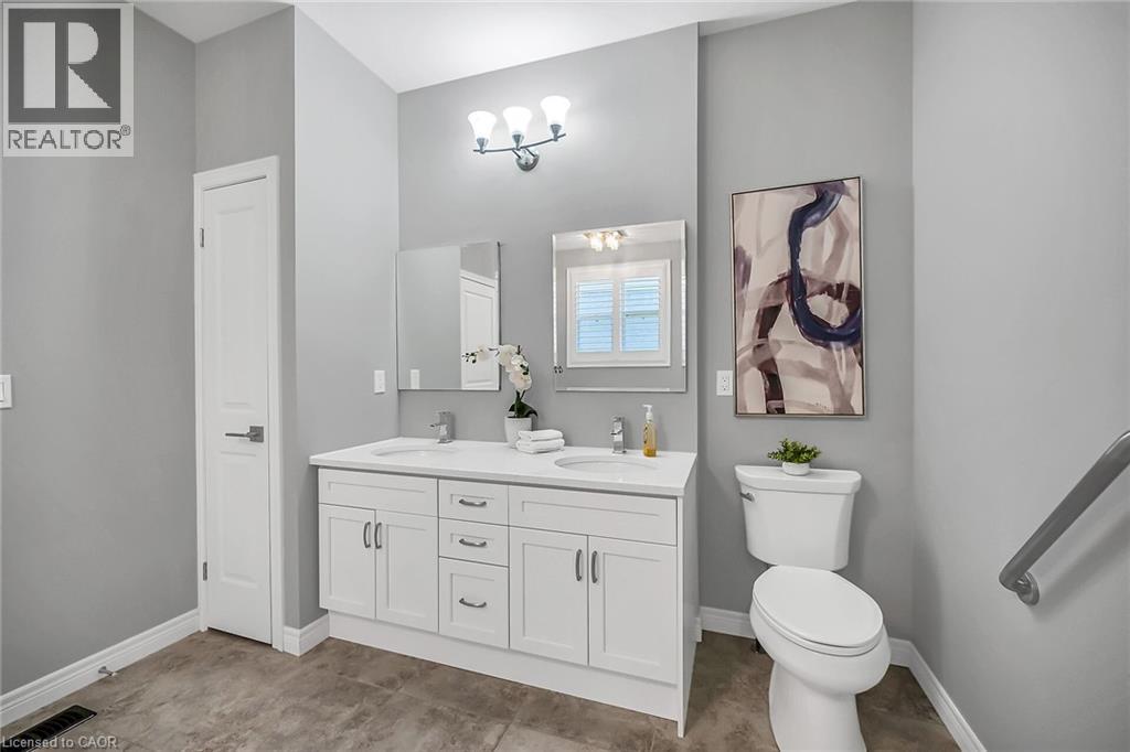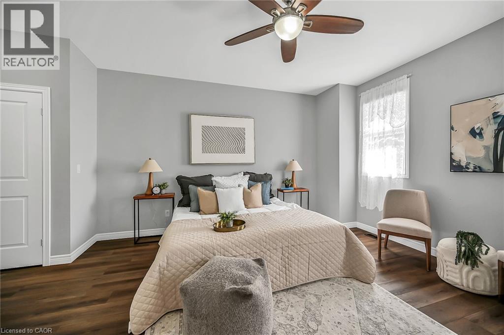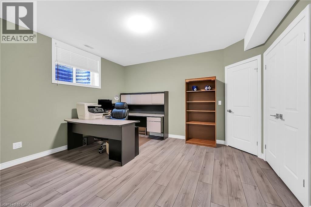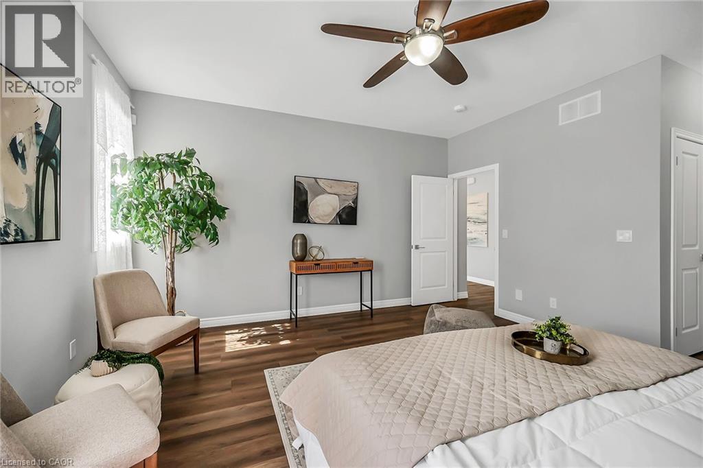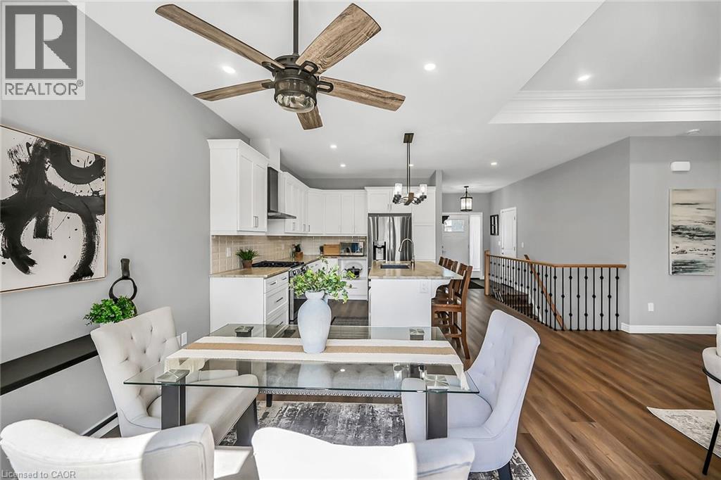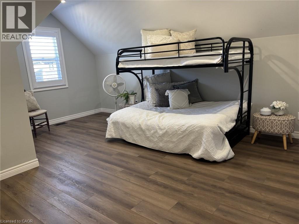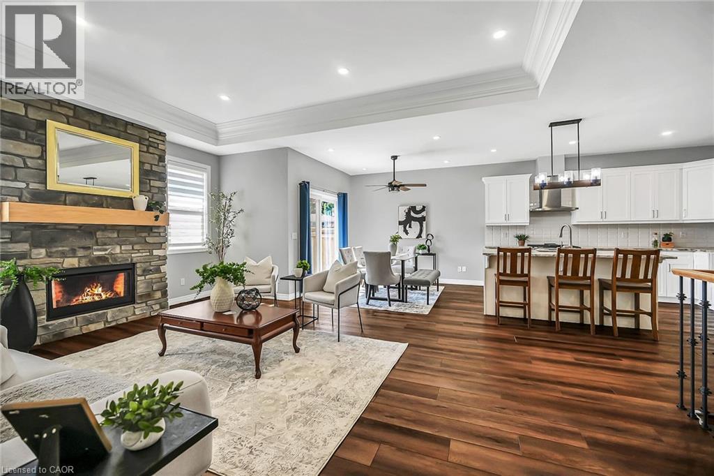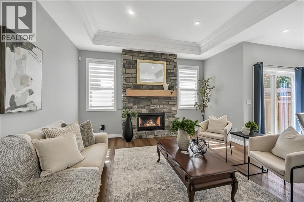 Looking for a newer bungalow with loft? This beauty has all the bells and whistles - even a separate entrance for a possible in-law or rental unit in the basement! Built in 2021 by quality reputable builder, the home offers almost 1600 square feet above grade plus finished basement, 2+2 bedrooms, 3 bathrooms, and high ceilings through out! Open concept main living area features modern white kitchen with stainless steel appliances (all LG under warranty), leathered quartz counter tops, work island/breakfast bar and pot lighting. Living room with cozy natural gas fireplace in a stone hearth, and dining area featuring a patio door walk out to back yard. Primary bedroom on the main offers a 4 pc ensuite bath with gorgeous soaker tub and glass walk in shower, plus his and hers oversized closets. Upstairs is a loft space perfect for a craft room/den/office or an extra bedroom. The fully finished lower level (finished by the builder) includes 2 more bedrooms, a full bath, family room and lots of storage, plus bonus staircase that leads into the two car garage. Lots of money spent here on extras including california shutters and zebra blinds (lifetime warranty), outdoor sprinkler system, security system, massive concrete patio across the back of the house with BBQ hook-up, quaint garden shed, fence, exterior lighting and more! Parking for two cars on the asphalt driveway, plus 2 spots in the garage. Exterior is stone, brick and vinyl, heated by natural gas furnace, plus central air - everything only 3 years old. Still under Tarion Warranty! No maintenance worries for years to come! (id:51158)