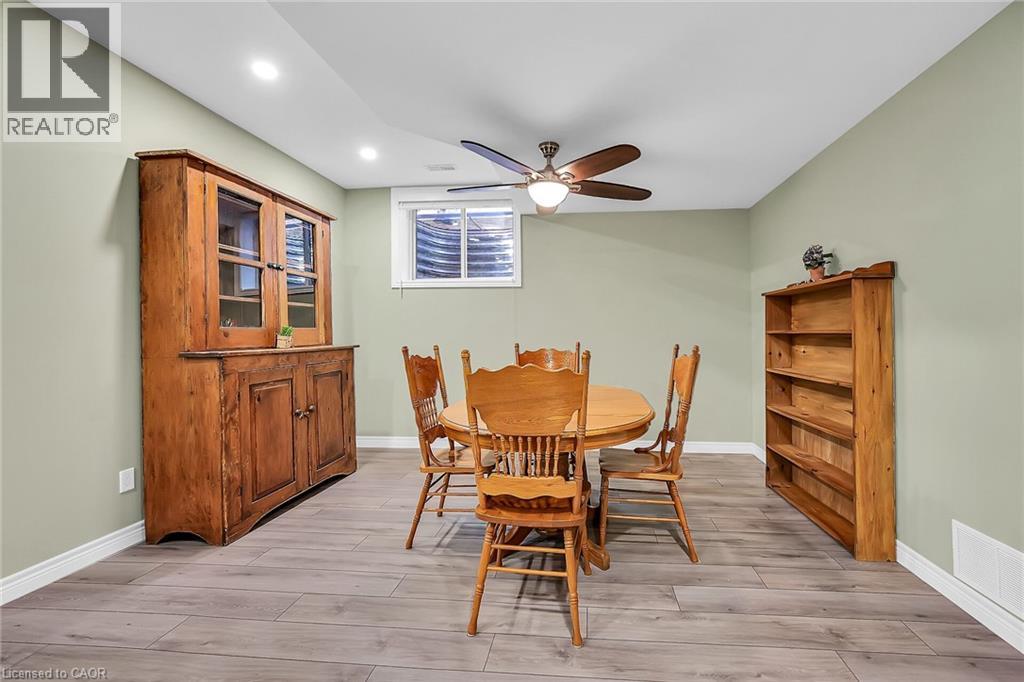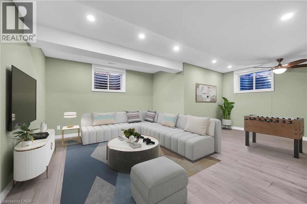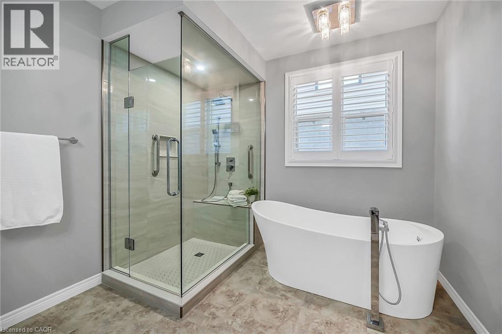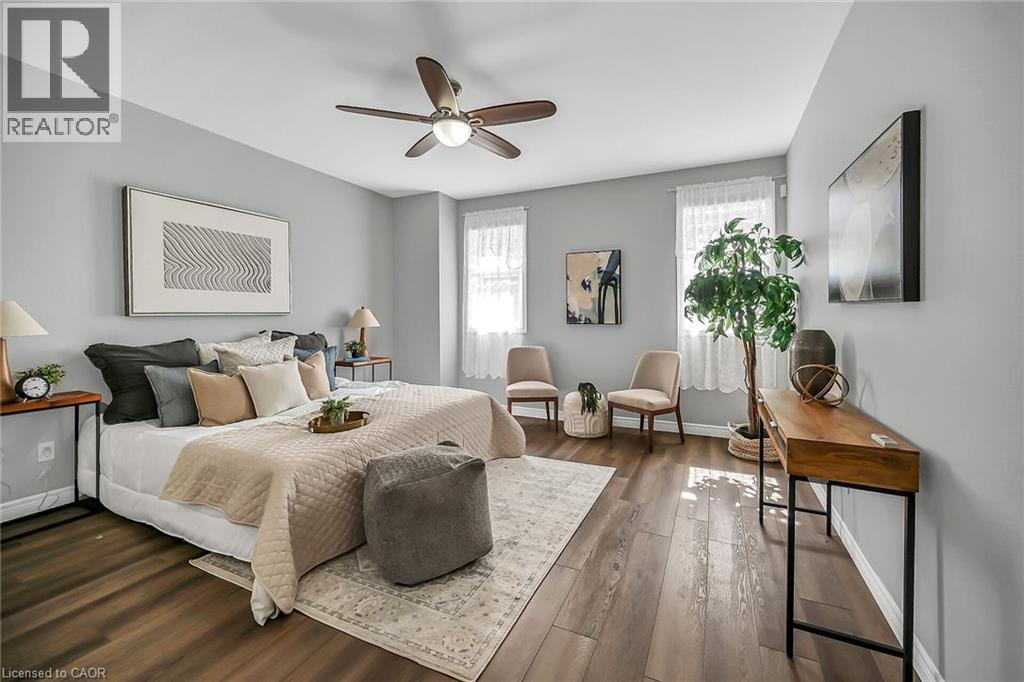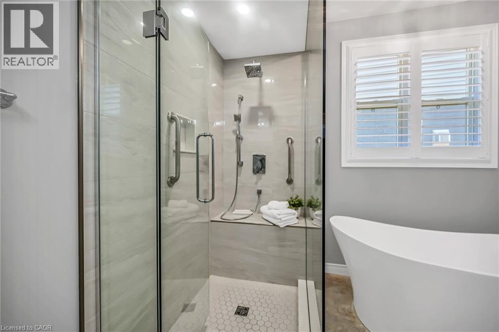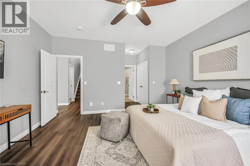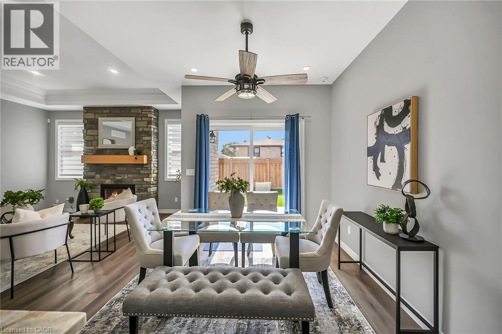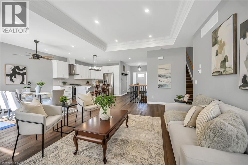 Looking for a newer bungalow with loft? This beauty has all the bells and whistles - even a separate entrance for a possible in-law or rental unit in the basement! Built in 2021 by quality reputable builder, the home offers almost 1600 square feet above grade plus finished basement, 2+2 bedrooms, 3 bathrooms, and high ceilings through out! Open concept main living area features modern white kitchen with stainless steel appliances (all LG under warranty), leathered quartz counter tops, work island/breakfast bar and pot lighting. Living room with cozy natural gas fireplace in a stone hearth, and dining area featuring a patio door walk out to back yard. Primary bedroom on the main offers a 4 pc ensuite bath with gorgeous soaker tub and glass walk in shower, plus his and hers oversized closets. Upstairs is a loft space perfect for a craft room/den/office or an extra bedroom. The fully finished lower level (finished by the builder) includes 2 more bedrooms, a full bath, family room and lots of storage, plus bonus staircase that leads into the two car garage. Lots of money spent here on extras including california shutters and zebra blinds (lifetime warranty), outdoor sprinkler system, security system, massive concrete patio across the back of the house with BBQ hook-up, quaint garden shed, fence, exterior lighting and more! Parking for two cars on the asphalt driveway, plus 2 spots in the garage. Exterior is stone, brick and vinyl, heated by natural gas furnace, plus central air - everything only 3 years old. Still under Tarion Warranty! No maintenance worries for years to come! (id:51158)