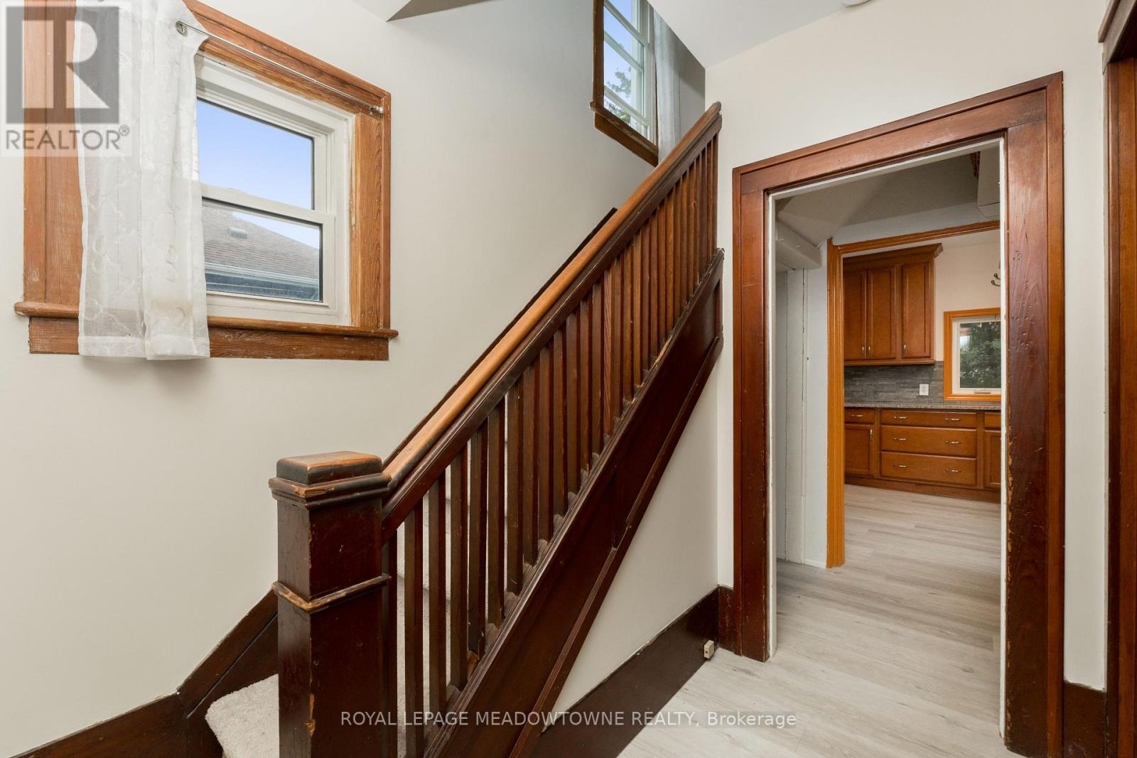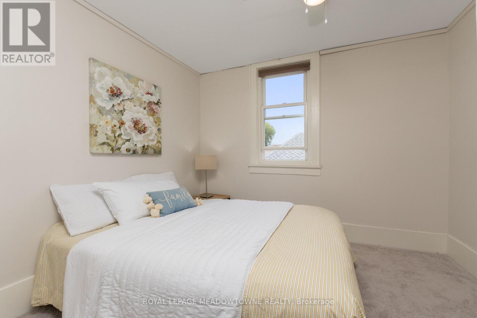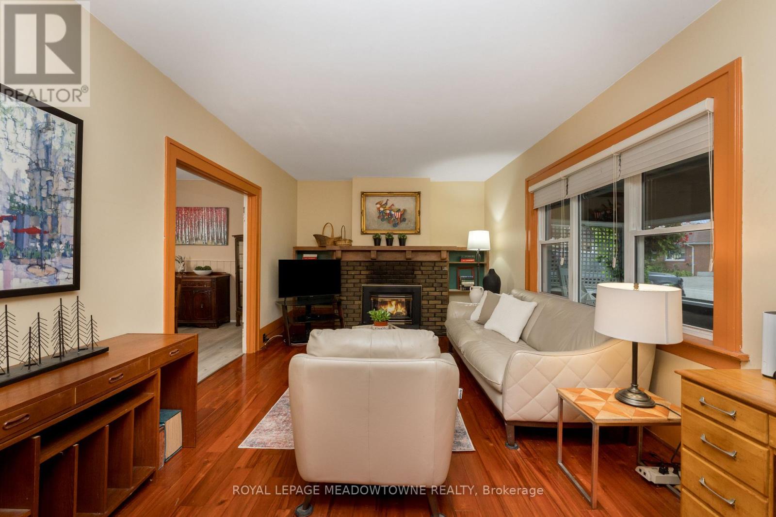 Charming 1.5-Storey Home on a Private 50 x 132 Ft Lot in Central Georgetown. Set on a quiet, tree-lined street, this inviting 3-bedroom, 2-bath home offers character, comfort, and convenience. A screened front porch leads to a practical layout featuring an updated kitchen (2012) with granite counters and direct side entry from the driveway. The dining room opens to a deck and beautifully treed backyard -- your own private oasis. Recent 2025 updates include fresh paint throughout, new broadloom, and luxury vinyl plank flooring in the hallway, kitchen, and dining room. An oversized shed provides excellent storage or workshop potential, and the driveway accommodates up to three vehicles. Prime central location -- walk to the GO Station, downtown shops and restaurants, parks, trails, and the village of Glen Williams. Properties on this quiet street are rarely available -- don't miss this exceptional opportunity in a well-established neighbourhood. Updates: Interior paint ('25), Broadloom ('25), LVP flooring ('25), Exterior siding & Insulation - approx. 30k ('19), Kitchen ('12) (id:51158)