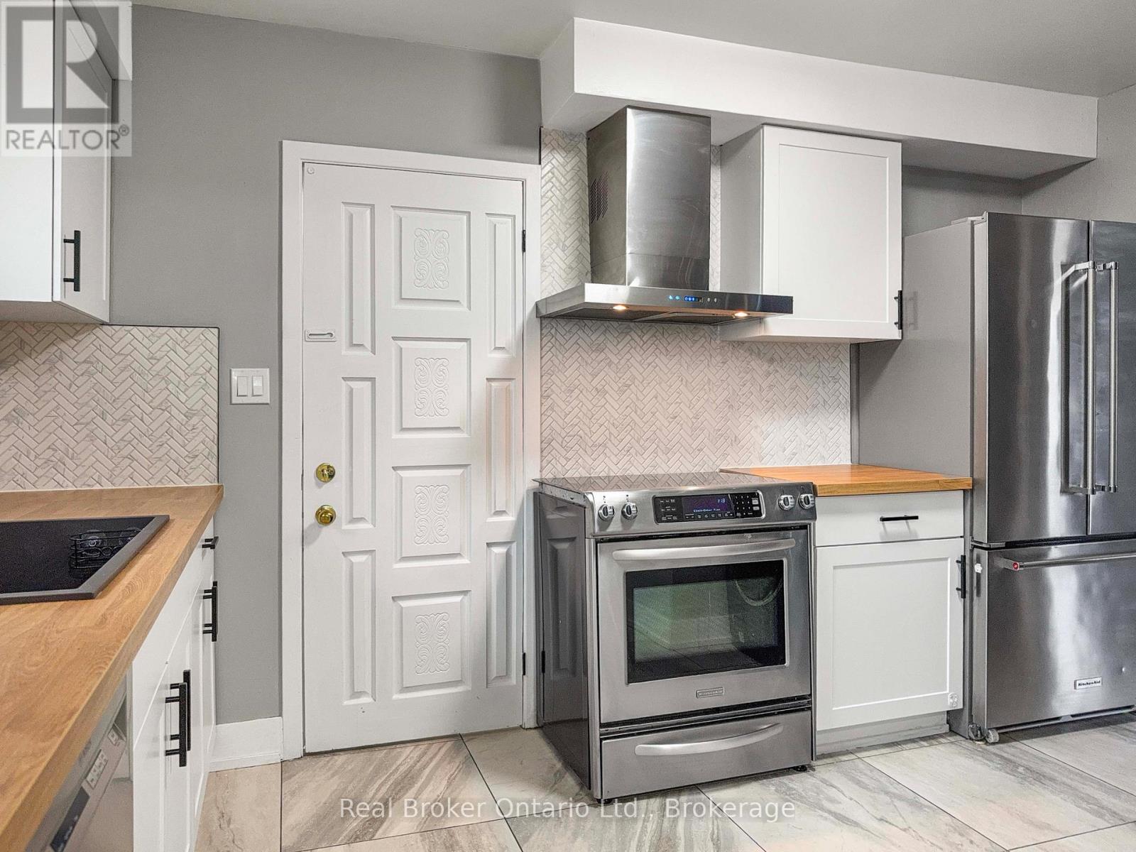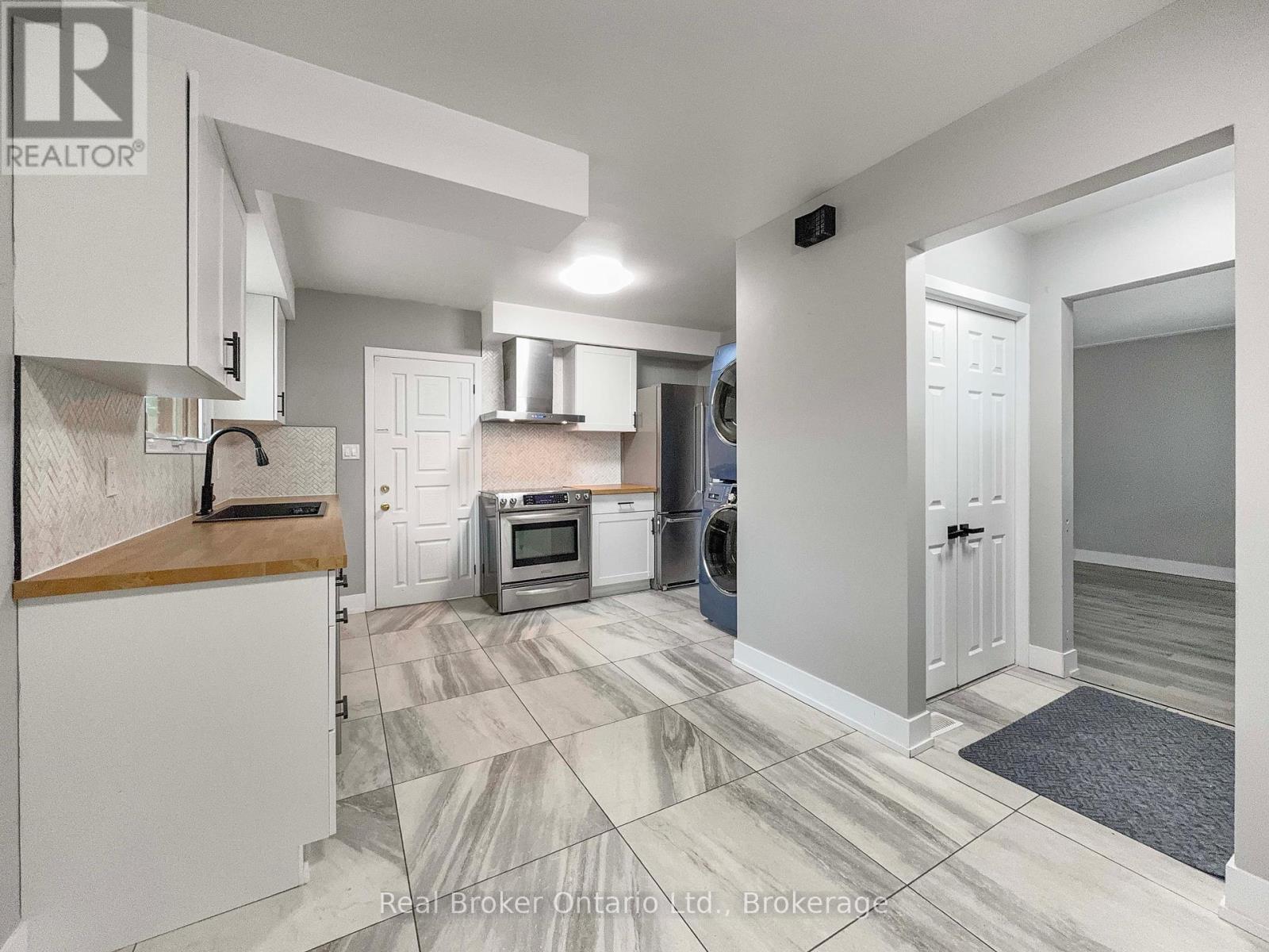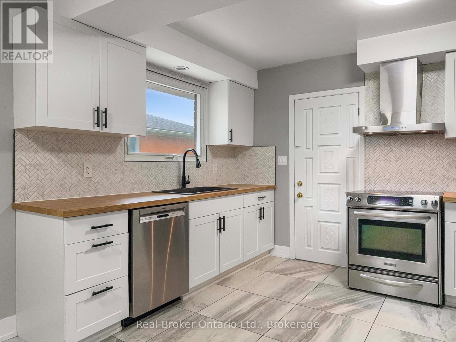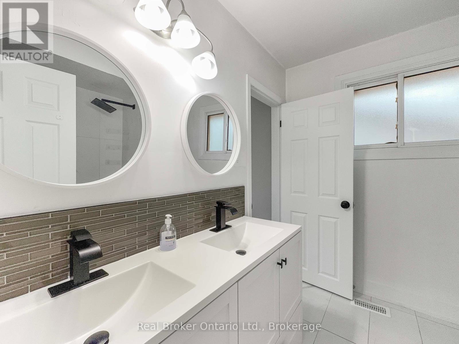 This beautifully maintained all-brick back-split offers a rare and practical setup for multi-generational living or an in-law suite, complete with a separate entrance to the basement. Each living area features its own laundry and fully equipped kitchen, providing convenience and privacy for all occupants. The main level welcomes you with a bright, spacious living room ideal for relaxing or entertaining. An open kitchen with ample cupboards and counter space flows seamlessly into the dining area. Fresh, modern décor updates throughout the home create a warm and contemporary feel. Upstairs, youll find three generous bedrooms and a 5-piece bathroom. The primary bedroom enjoys the added bonus of ensuite privileges. The lower level boasts an open-concept layout with a large eat-in kitchen, perfect for gatherings, along with a spacious bedroom and a 3-piece bathroom. Outdoors, the family-sized yard invites play, gardening, or quiet relaxation, while the expansive paved driveway offers plenty of parking. Located close to schools, parks, shopping, and restaurants, this home combines comfort, flexibility, and convenience-- all within easy reach. (id:51158)