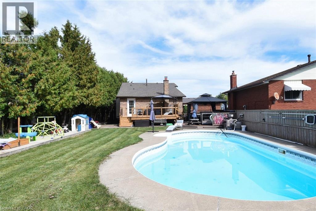 Welcome to 14 Basin Crescent, an exceptional home in a quiet neighbourhood, that masterfully combines lifestyle, convenience, and outdoor flair. Set back on a quiet crescent and backing onto a lush greenbelt, this 5-level sidesplit, boasting 3 bedrooms and 3 baths, offers space and flexibility for the way you live today. Step into the main floor where bright living and dining areas set the stage for modern family life, with the option to open up to the outdoor eating area for easy movement through spaces. The thoughtfully placed home office and 2-piece bath make remote work seamless. Venture down to the lower level family room is ideal for media, play, or simple relaxation. Upstairs, generous bedrooms include a roomy master retreat. Outdoors, your resort starts in your own backyard: a beautiful inground pool, outdoor eating and lounging under the gazebo, and shuffleboard area create an entertainer’s paradise. The lot’s greenbelt rear adds privacy, and the interlocking brick driveway accommodating up to 2 cars plus attached garage answers all parking needs. With mature landscaping, and a location that brings shops, schools, transit, and highway access within easy reach, this home delivers both charm and practical comfort. Don’t miss your chance to own a rare find in Berrisfield. (id:51158)