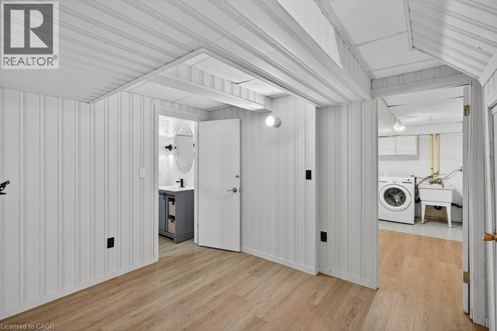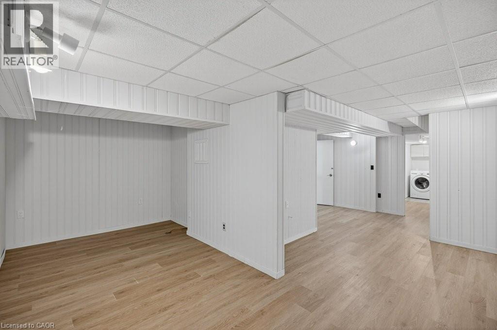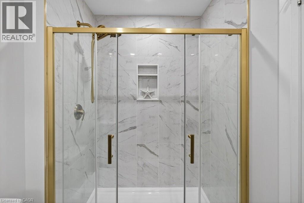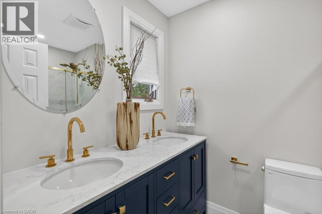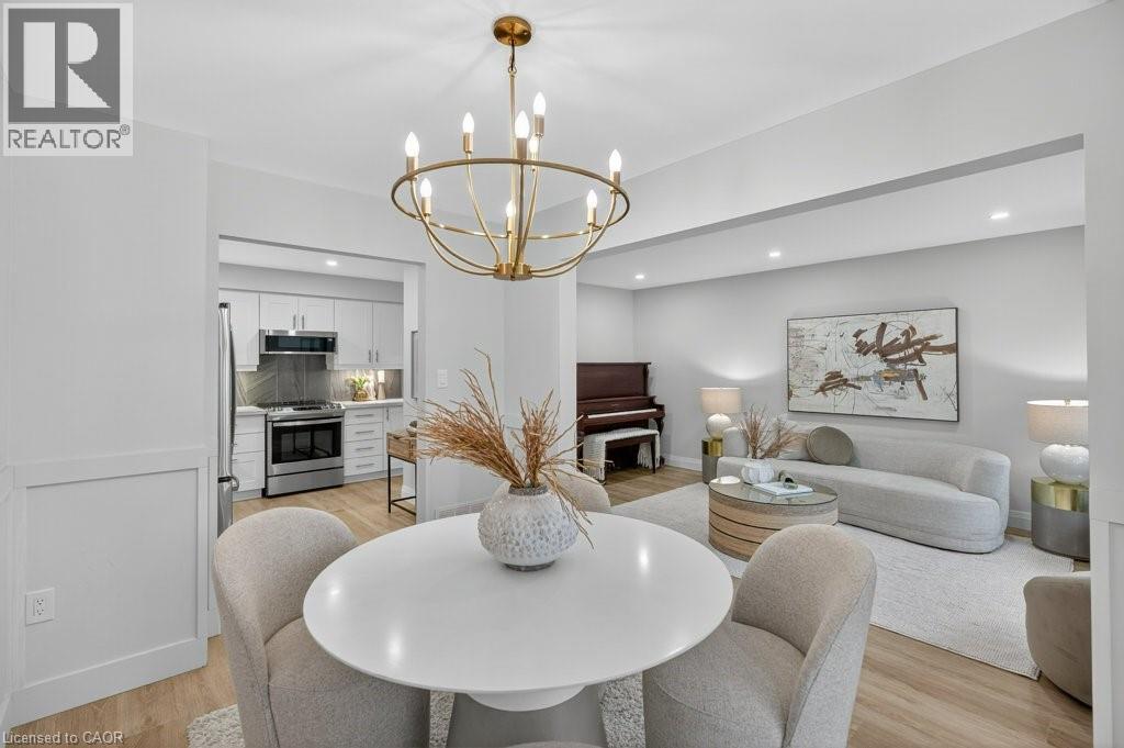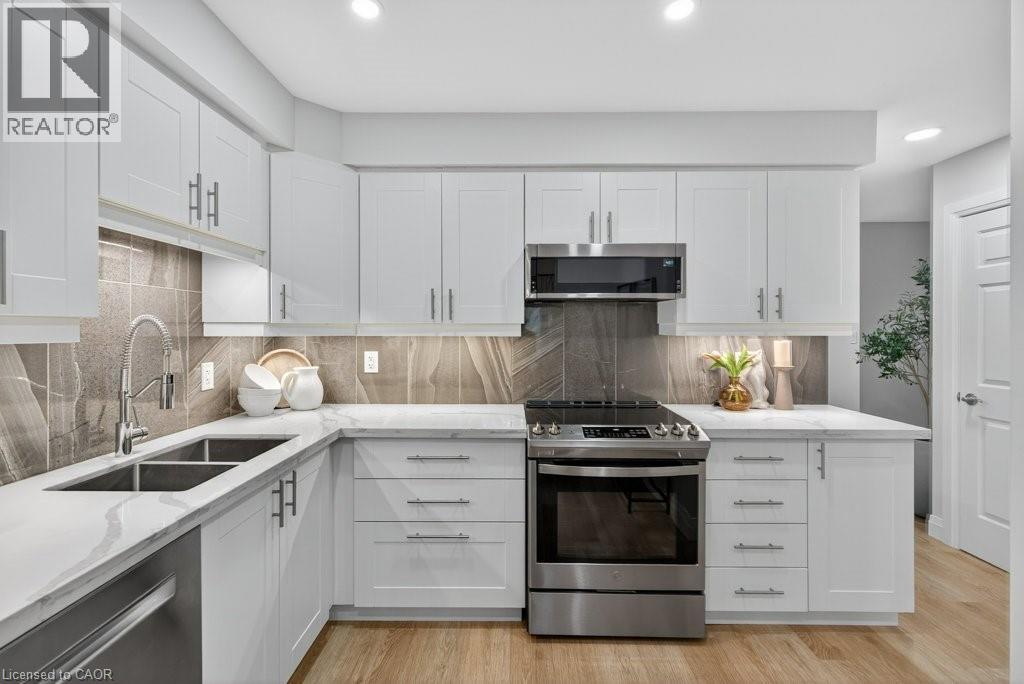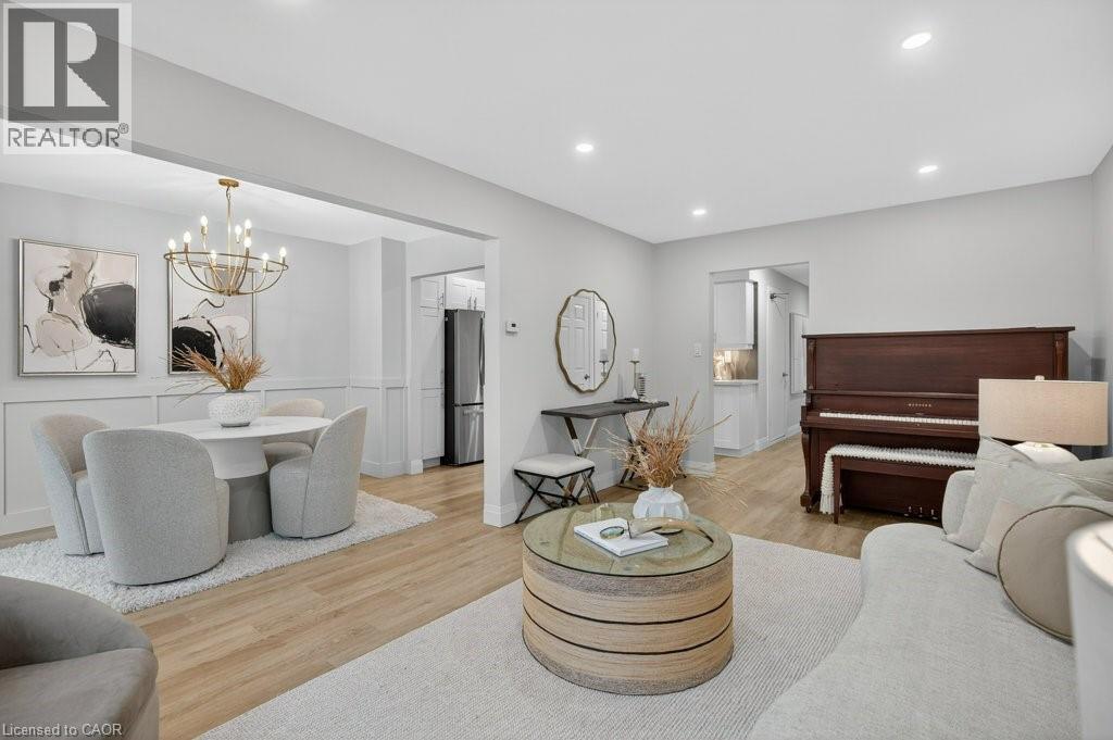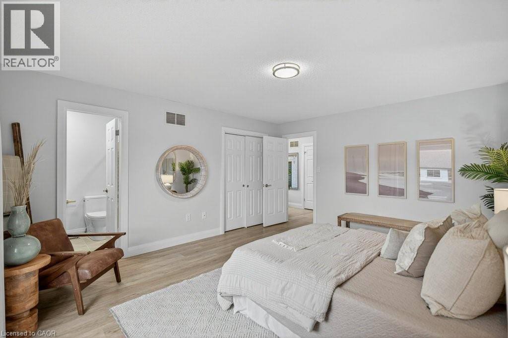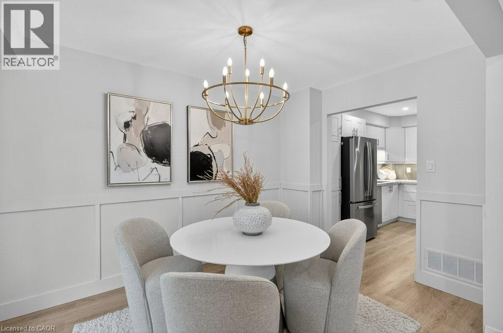 This beautifully renovated 3-bedroom, 4-bath end-unit townhome offers the perfect blend of style, space and low-maintenance living in a quiet small enclave of homes. Step inside and you’ll immediately appreciate the attention to detail throughout. Completely renovated from top to bottom, this home features all the finishes and design choices you love. The updated kitchen is loaded with cupboard space and showcases quartz countertops and stainless steel appliances. The main floor offers updated flooring, pot lights, and an ideal layout that flows seamlessly from the large family room with a newer bay window to the dining area highlighted by elegant wall mouldings, a stunning light fixture, and a walkout to your private backyard.Upstairs, natural light fills the home thanks to an extra side window exclusive to an end unit. The spacious primary bedroom features an oversized window and a beautifully updated ensuite with a walk-in shower and double sinks. Two additional bedrooms offer flexibility, one even includes a charming balcony overlooking the backyard. The main bathroom on this level has also been stylishly updated.The finished lower level adds even more living space with updated flooring and a 3-piece bathroom, perfect for all of your growing needs. The true standout is the private backyard, a rare find for a townhome. With no neighbours beside or behind, this end unit offers an extra-wide yard surrounded by mature trees, providing a greater sense of privacy and openness, ideal for relaxing, entertaining, or letting kids play freely. Enjoy easy, maintenance-free living with snow removal and exterior upkeep are all taken care of for you. Located close to parks, schools, trails, shopping, and transit, this home provides convenient access to everything the Hamilton Mountain has to offer, with quick connections to the LINC and downtown. (id:51158)