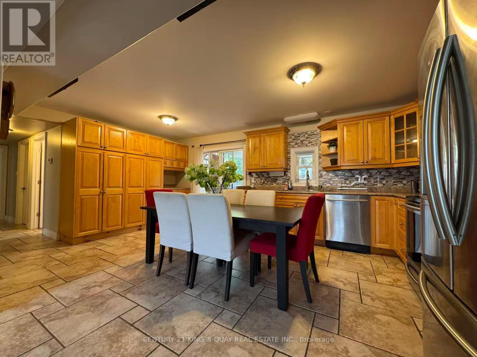 14 Churchill Court, Collingwood, Ontario L9Y 321Spacious 2-Storey Home with Office Potential and In-Law Suite Welcome to this versatile 5-bedroom, 3-bathroom home with office/den space, ideally located near the lakefront of Georgian Bay and just minutes from the Blue Mountain Resort area as well as Collingwood's downtown amenities. The flexible layout offers the potential for a 3-bedroom, 2-bath apartment plus a 1-bedroom + den, 1-bath ground-level apartment-ideal for extended family, in-laws, or private guest accommodations. Inside, enjoy in-floor hot water heating and two large, modern kitchens with high-end stainless steel appliances. Each floor features a walkout to the private backyard, making it easy to enjoy all-season outdoor living. Key Features: Huge front yard with parking for 8 vehicles (4 driveway + 4 additional spaces), Double front doors, including a separate office entrance, Sprinklered front lawn, Easy commuting access, Minutes to Georgian Bay waterfront and the Blue Mountain Resort area. This property combines comfort, functionality, and a prime Collingwood location-perfect for multi-generational living, a live/work setup, or a spacious family retreat. (id:51158)