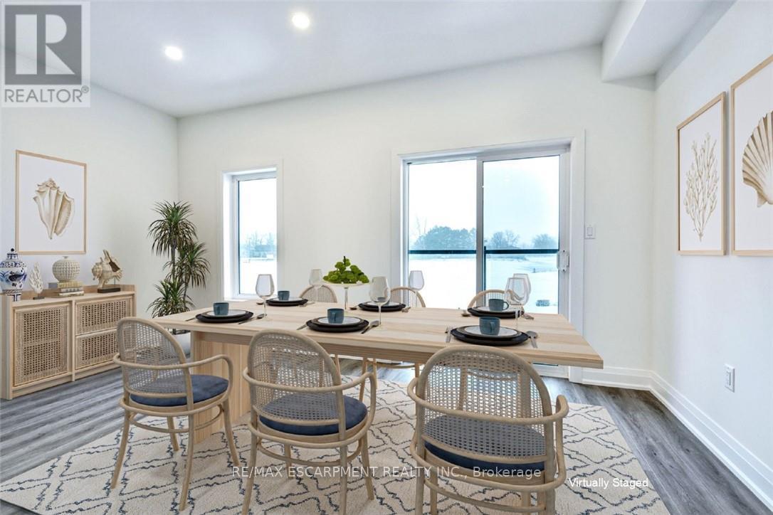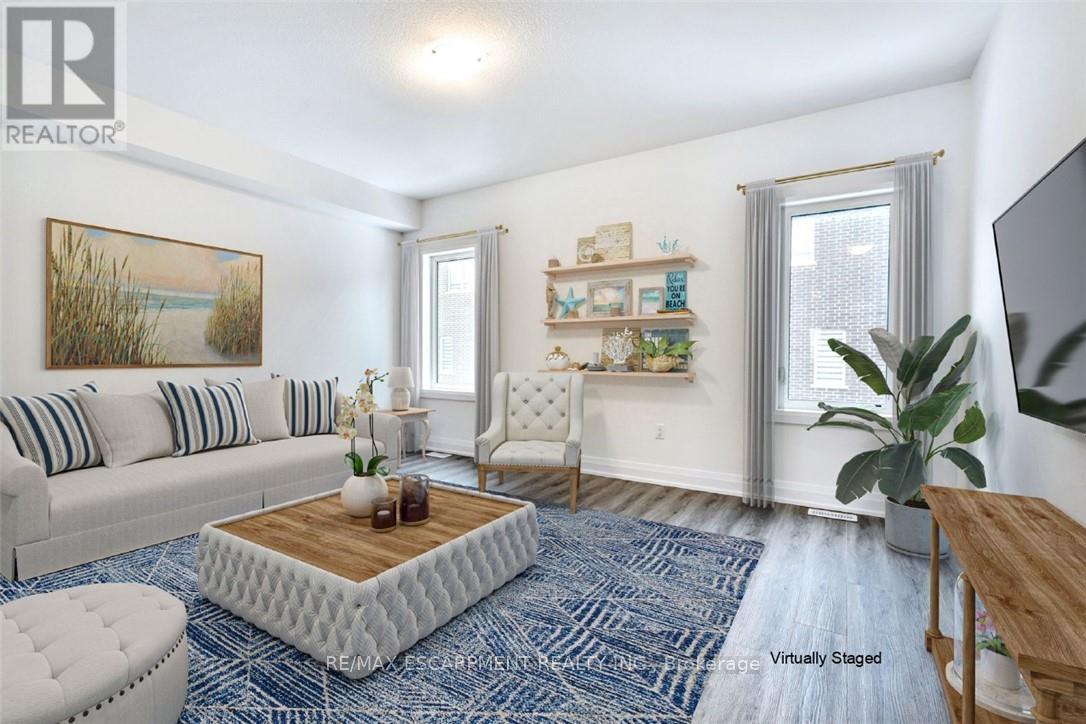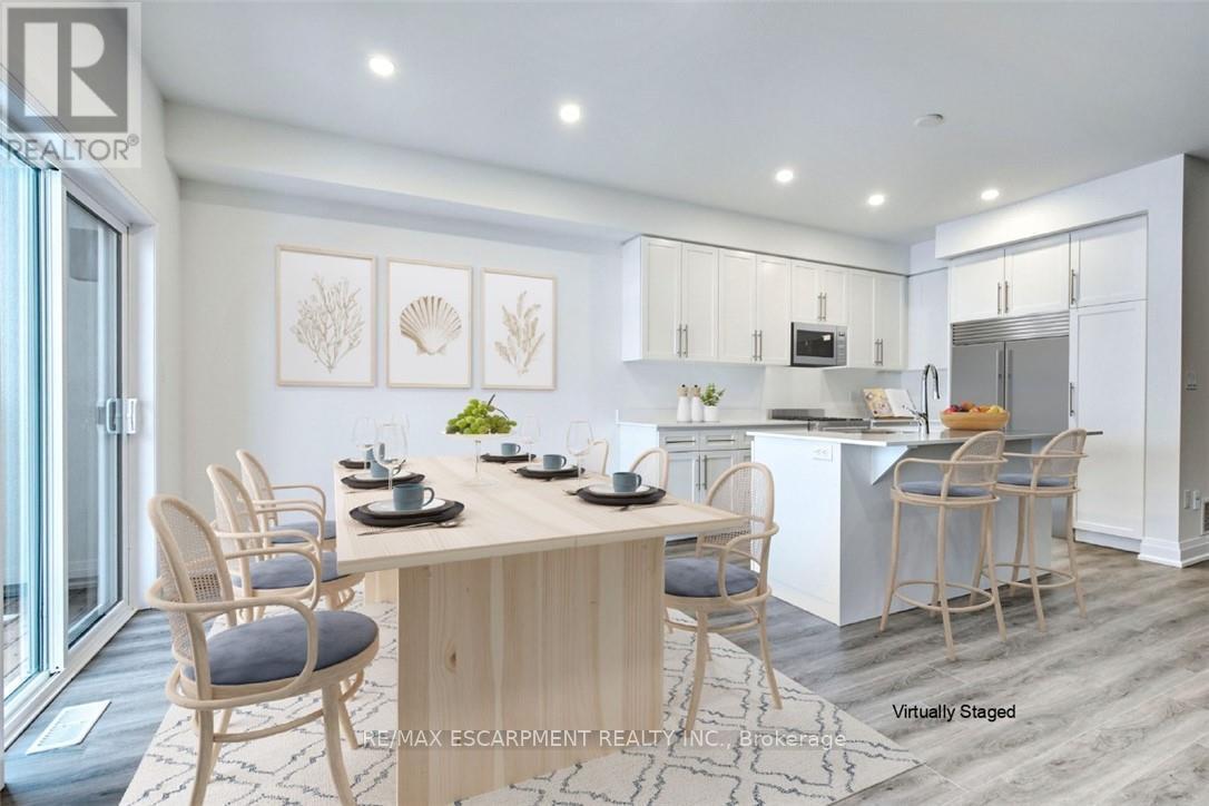 Newly built townhome by award winning builder Sonoma Homes offers exceptional, most cost effective, price per square foot value in the Hamilton and surrounding area. Located in the heart of Mount Hope where ease of accessibility and convenience to nearby amenities such as major roads, highways, shopping, schools, and parks are mere minutes away. This neighbourhood affords you peaceful and serene everyday living. Built with superior materials that include, brick, stone, stucco exteriors and 30-year roof shingles, the quality continues & flows right into the home. There you will find, a spacious living area of over 2,100 sq ft with beautiful upgraded kitchen cabinets, quartz countertops, 4 bathrooms, 3 bedrooms which includes a wonderful primary retreat, a generous flex space, oak stairs, pot lights and a step out balcony. Purchasing this gem is even more enticing with the superior sound barrier wall, separating you from your neighbours. A rarity in the home building industry! This model home is move in ready and can accommodate a flexible closing date. You don't want to miss this opportunity to own in Phase One! Some photos have been virtually staged. (id:51158)