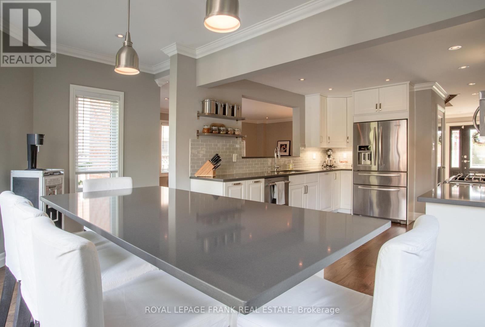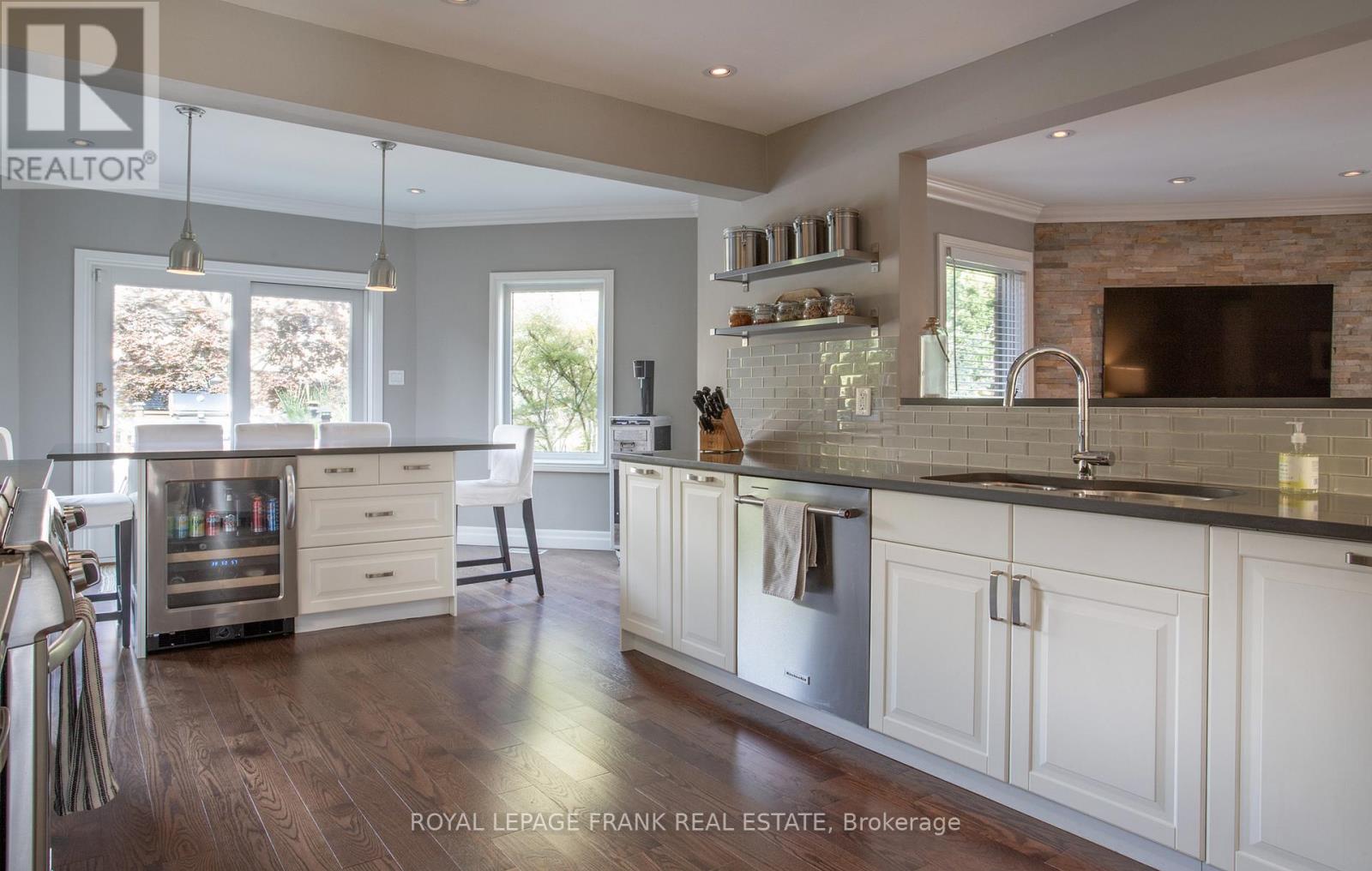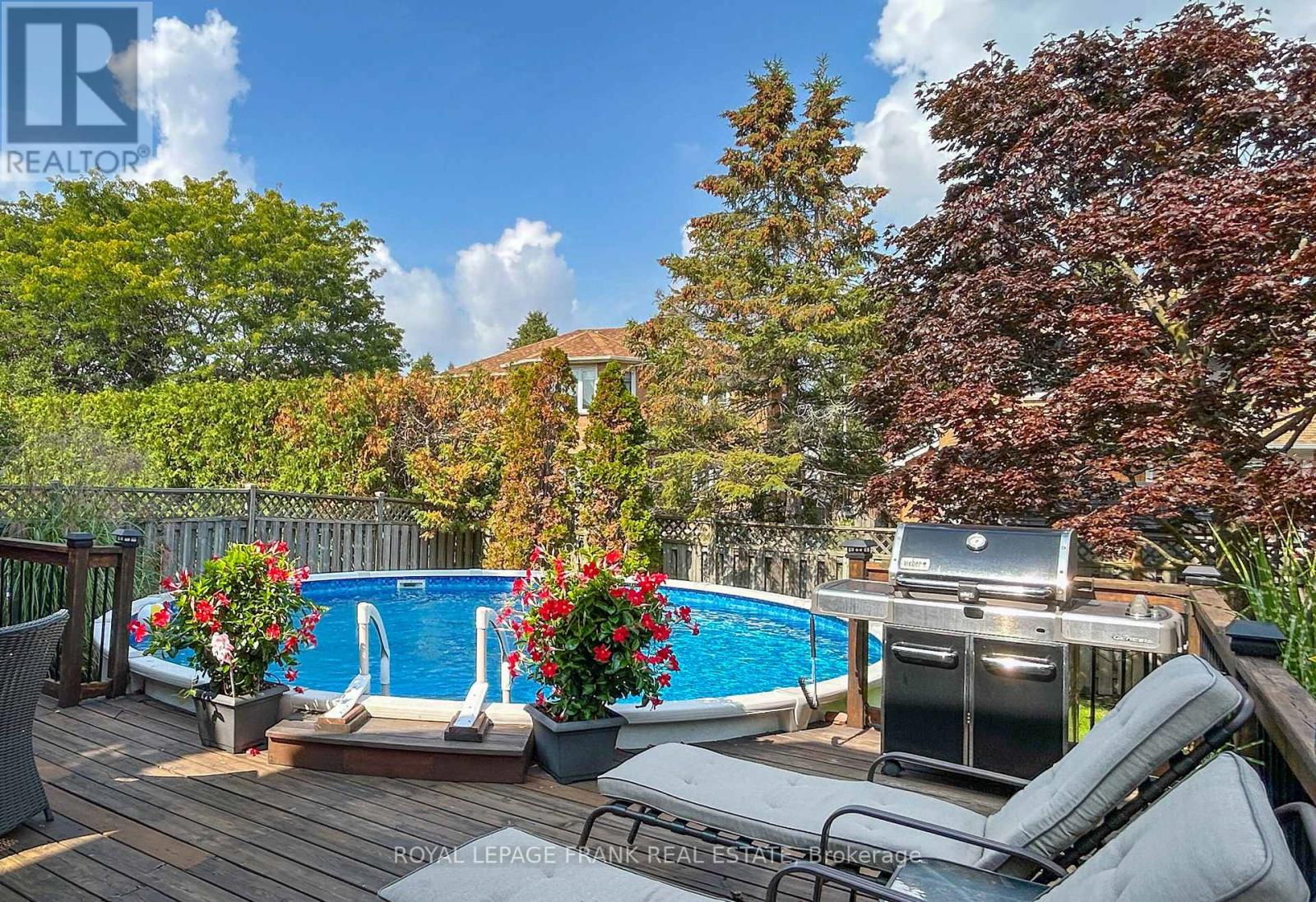 Welcome to 14 Drewbrook Court, Whitby! This beautiful fully renovated family home is tucked away on a community-oriented court, just steps from Pringle Creek Public School, Pringle Creek Market, and the bus route. The main floor features a combined living and dining room -perfect for hosting family dinners-with a bay window, pot lights, and gleaming hardwood floors. A sunken family room with gas fireplace overlooks the kitchen which boasts a centre island, built-in microwave, under-cabinet lighting, pot lights, and a walkout to the deck, where you'll find a 21 foot round above-ground saltwater pool, ideal for summer fun and entertaining. Professionally Landscaped , low maintenance gardens with sprinkler system enhance the outdoor living space. Upstairs, the renovated primary suite offers an ensuite with double sinks, a walk-in closet, dressing room area with additional closet space, the perfect spot to relax with a book or enjoy quiet time. Three additional bedrooms are bright, spacious, and versatile for family, guests. The finished basement extends your living space with a wet bar, home office area, recreation room, and ample storage. This home checks all the boxes for comfort, function, and lifestyle in one of Whitby's most welcoming neighbourhoods. Pool-2013, New Salt Filter - 2024, New Pump - 2024, Kitchen - 2014, Ensuite - 2022, Windows and Doors - 2014, Stairs - 2017. All Offers Are Welcome On Wednesday October 1st at 2pm, Please register by 12 noon. No Pre-emptive Offers as per Sellers. 24 Hours Irrevocable. (id:51158)