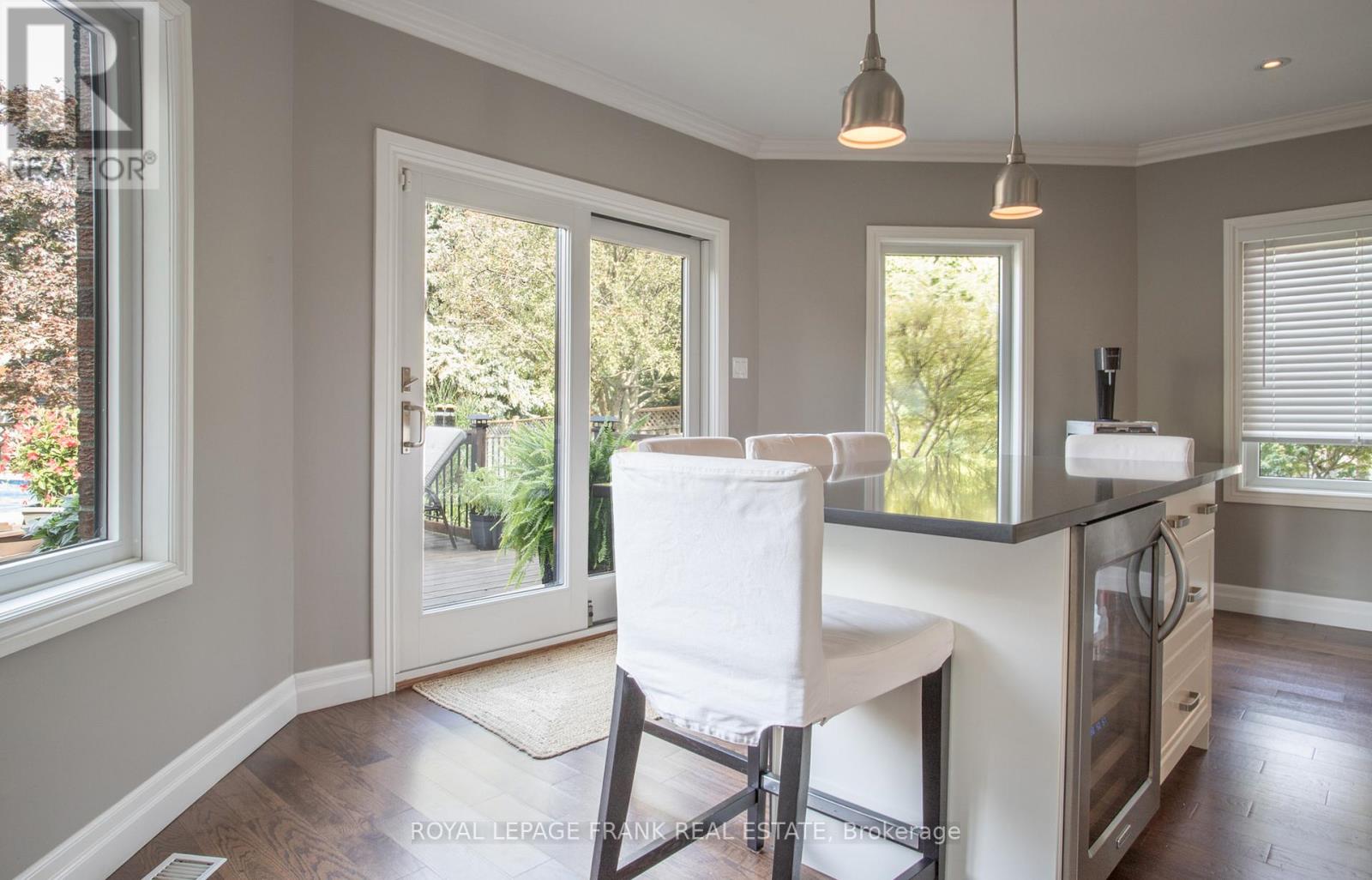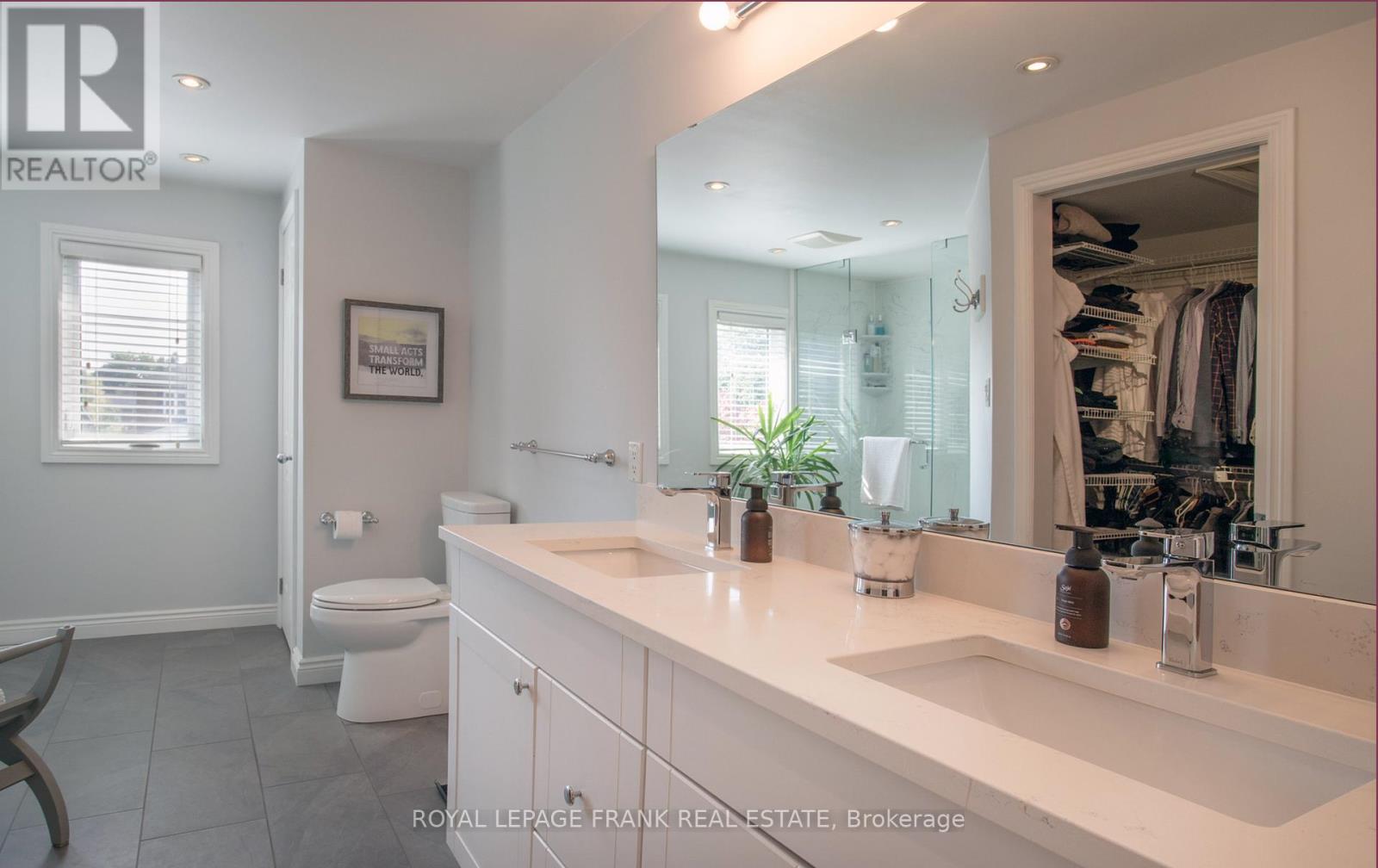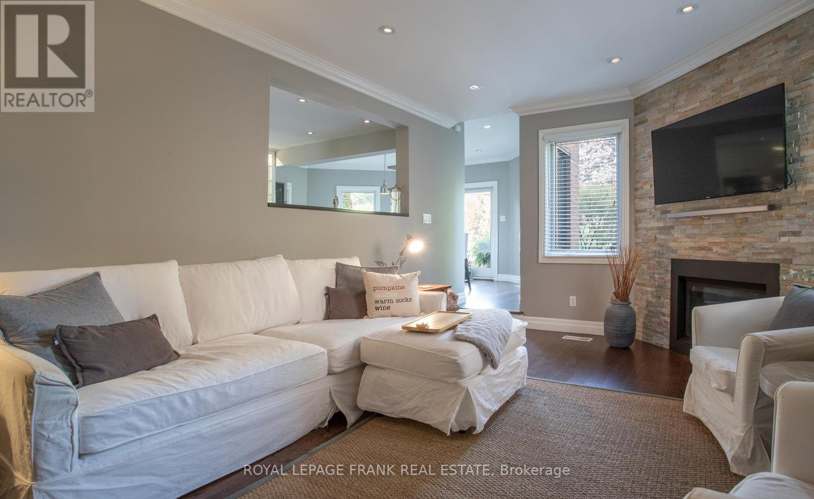 Welcome to 14 Drewbrook Court, Whitby! This beautiful fully renovated family home is tucked away on a community-oriented court, just steps from Pringle Creek Public School, Pringle Creek Market, and the bus route. The main floor features a combined living and dining room -perfect for hosting family dinners-with a bay window, pot lights, and gleaming hardwood floors. A sunken family room with gas fireplace overlooks the kitchen which boasts a centre island, built-in microwave, under-cabinet lighting, pot lights, and a walkout to the deck, where you'll find a 21 foot round above-ground saltwater pool, ideal for summer fun and entertaining. Professionally Landscaped , low maintenance gardens with sprinkler system enhance the outdoor living space. Upstairs, the renovated primary suite offers an ensuite with double sinks, a walk-in closet, dressing room area with additional closet space, the perfect spot to relax with a book or enjoy quiet time. Three additional bedrooms are bright, spacious, and versatile for family, guests. The finished basement extends your living space with a wet bar, home office area, recreation room, and ample storage. This home checks all the boxes for comfort, function, and lifestyle in one of Whitby's most welcoming neighbourhoods. Pool-2013, New Salt Filter - 2024, New Pump - 2024, Kitchen - 2014, Ensuite - 2022, Windows and Doors - 2014, Stairs - 2017. All Offers Are Welcome On Wednesday October 1st at 2pm, Please register by 12 noon. No Pre-emptive Offers as per Sellers. 24 Hours Irrevocable. (id:51158)