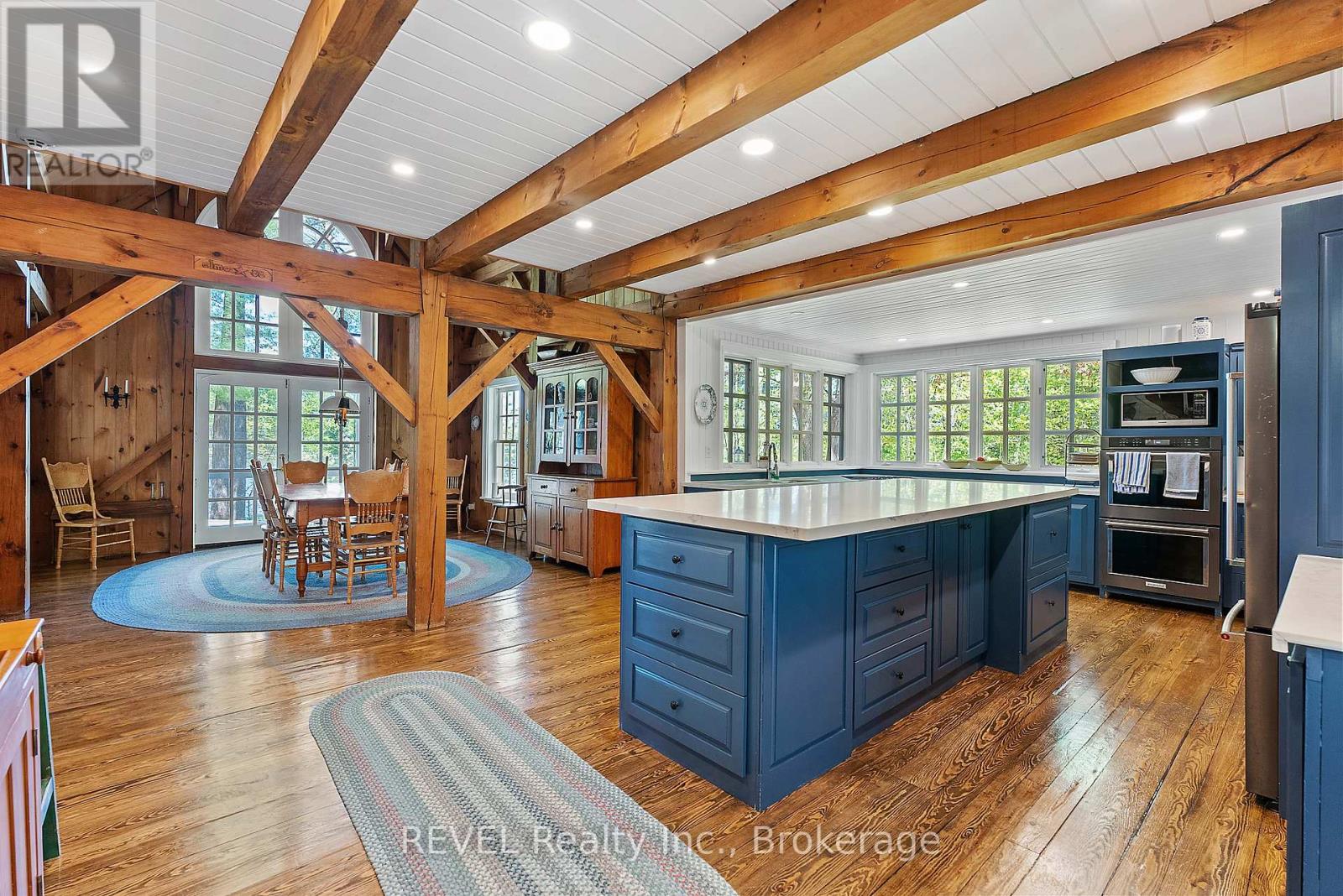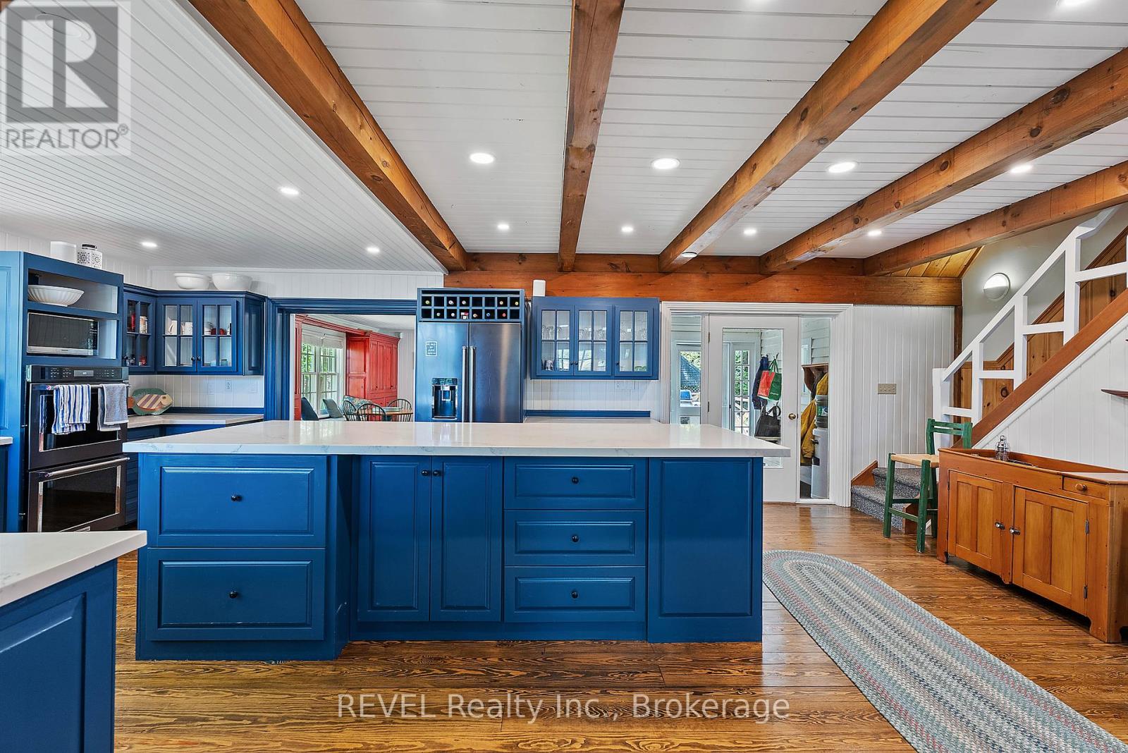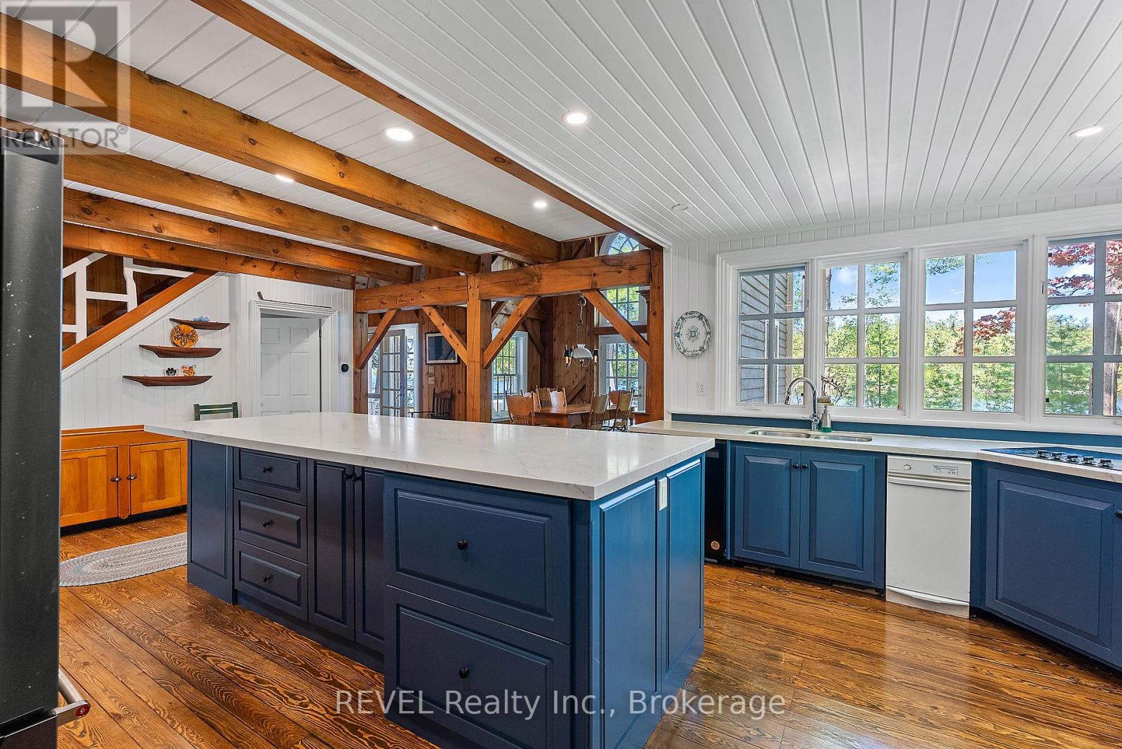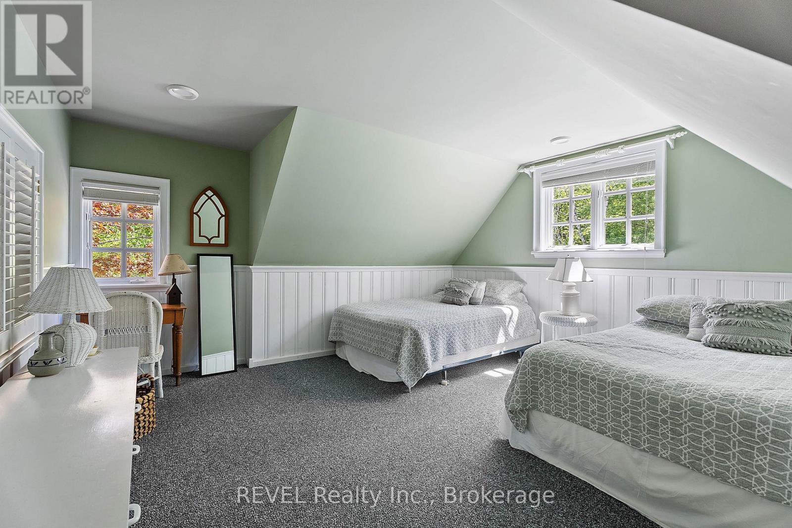A rare opportunity to own a timeless 4.5-acre estate with 1,160 ft of pristine, level frontage in the coveted Beaumaris corridor. This private four-season retreat offers unmatched tranquility, with walking paths, towering pines, and open meadows - perfect for families of all ages.Nestled away from the main boat channel, the property enjoys exceptional privacy and features a beautiful sandy cove, oversized swim dock, and panoramic island-dotted views. The current cottage and boathouse are ideally sited, offering potential to sever a large parcel without sacrificing privacy. Built by renowned Elmo Starr, the 5-bed cottage showcases vaulted ceilings, post-and-beam detailing, gleaming wood floors, and expansive windows that fill the space with natural light. Enjoy both formal and informal living areas, a Muskoka room, and a large unfinished basement ready for a gym, theatre, or rec room.The grandfathered boathouse is a true gem, with 3 boat slips and 1,100 sq ft of living space above - complete with 3 bedrooms, kitchen, bath, living/dining, and covered porch, ideal for guests or multi-generational stays.With space for 10 boats, west wind protection, and close proximity to Bala, Port Carling, and Bracebridge, this rare offering blends location, lifestyle, and limitless potential. Build your dream compound or enjoy it as-is: this is Muskoka living at its finest. (id:51158)