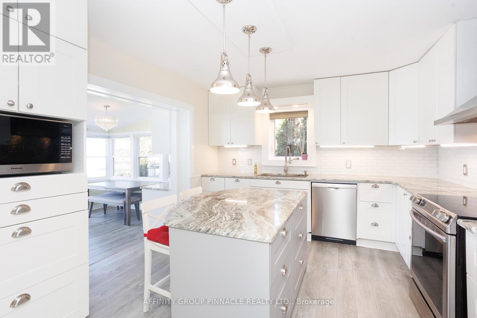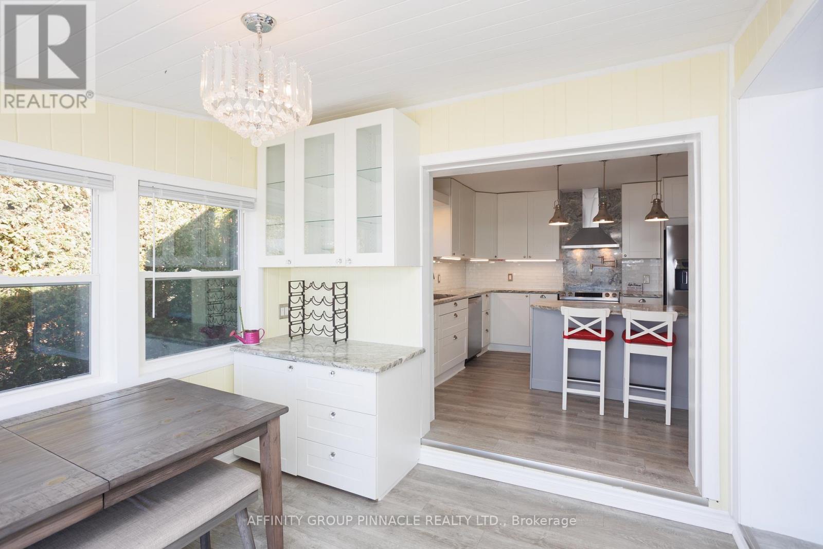 Experience the pinnacle of lakeside living in Fenelon Falls with this meticulously renovated bungalow on Cameron Lake. Ideal for those that want an intown waterfront, this home offers tranquility and elegance in every detail. Step inside to a bright, open entrance that leads to an expansive sunroom, where large gable windows invite abundant natural light and reveal panoramic lake views. The main floor thoughtfully blends modern style with classic charm, featuring three bedrooms and one and a half bathrooms.Outside, enjoy stunning sunsets from the deck, or take advantage of the convenient location. A short trip by car or boat will lead you to the town center, offering a variety of restaurants, shops, and entertainment. For water enthusiasts, explore the Trent Severn Waterway. The waterfront is perfect for swimming, with a clean, mixed gravel/sand bottom off the dock. Practical amenities include a dry boatslip with a marine rail for your watercraft and a detached 20x20 garage. This exceptional waterfront property is more than just a home; its a gateway to an unparalleled lakefront lifestyle. Create lasting memories in this spectacular residence, where every day feels like a vacation. Quick closing is available, making your dream of lakeside living a reality sooner. (id:51158)
