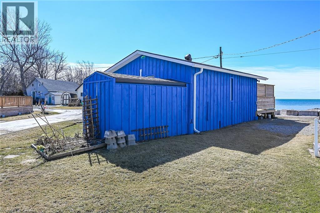 Possibly the best priced waterfront property available in Niagara’s Golden Horseshoe. Features an extensively renovated, from the “studs-out” in 2023, beautiful presented cottage located in Featherstone Park - a privately owned park home to over 100 cottages bordering the banks of Lake Erie’s Golden South Coast. Relaxing 50-55 min commute to Hamilton, Brantford & Hwy 403 - 20 mins west of Dunnville’s amenities - similar distance east of Port Dover’s popular attractions - near the sea-side village of Selkirk. This Erie Treasure is positioned perfectly on large leased land lot at end of quiet Pike Lane enjoying breathtaking, panoramic water views from the the cottage’s oversized windows & new 260sf treated wood deck-2025 - literally just a few steps to gorgeous private sand beach situated directly in front of property. Introduces 600sf of open concept living area showcasing brilliant white kitchen - leads to bright & airy living room/dining room combination segues to open style primary bedroom - continues to multi-purpose room (possible bedroom), storage room & side entry foyer - completed with 3pc bath. Stylish vaulted ceilings & garden door deck walk-out compliment the modern decor with nautical flair. Attached versatile shed houses laundry facilities. Professional 2023 upgrades & improvements include - new Atlantic Blue board & baton wood exterior siding, roof shingles, windows, flooring, 100 amp electrical, plumbing, insulation, drywall, kitchen/bath cabinetry, light/plumbing fixtures. Extras - all appliances, concrete pier foundation, ductless mini-split heat/cool HVAC, 2000 gal water cistern & 2000 gal holding tank. Featherstone Park allows for 9 month occupancy (must vacate January/February/March) with annual lease of $4,400 includes property tax & use of play-park, volleyball court & 2 beaches. Affordable waterfront “Majesty” (id:51158)