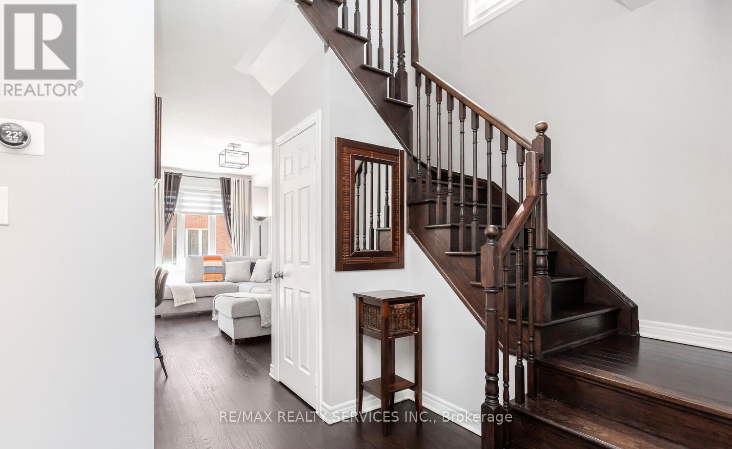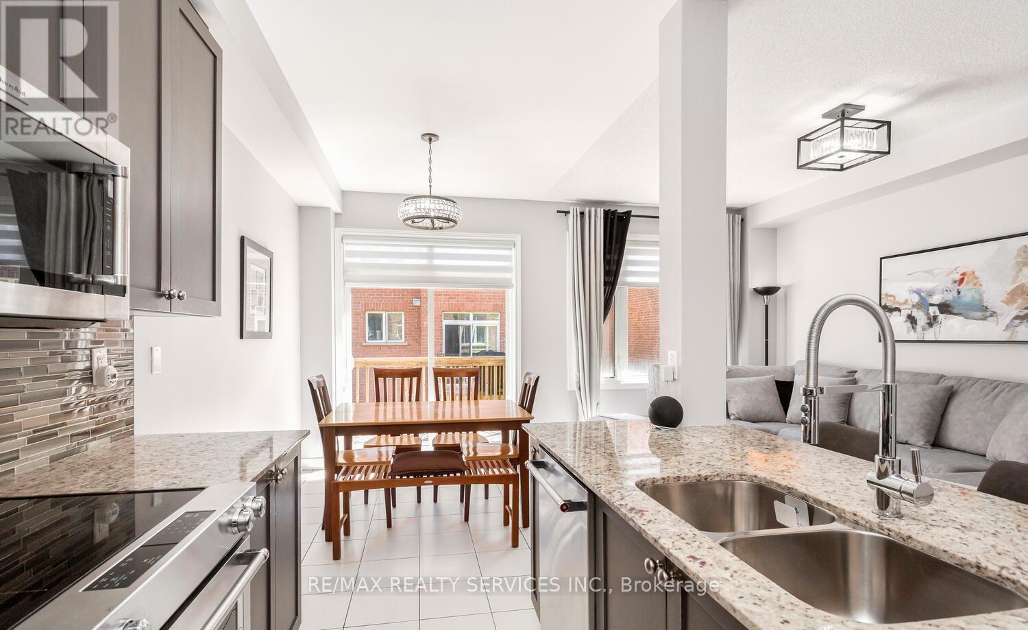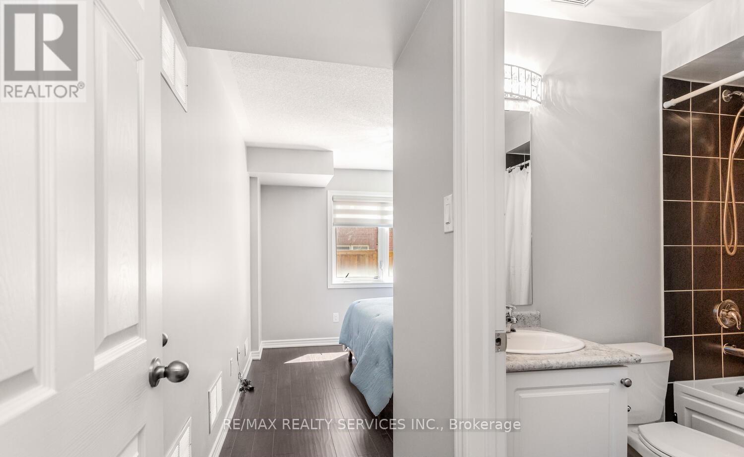 Spectacularly upgraded 3-level freehold townhome featuring a total 4 bedrooms and 3.5 bathrooms, including a fully finished lower level with private bedroom and ensuite washroom ideal for guests or extended family. Enjoy dark-stained hardwood floors and stairs throughout, a modern kitchen with granite countertops and high quality stainless steel appliances, and a walkout to a private deck perfect for morning coffee . Professionally finished perimeter landscaping including backyard with interlocking stone, offering a low-maintenance outdoor space with great curb appeal. Additional highlights include, smart entry system, upgraded light fixtures, convenient upper-level laundry. This perfect family home is conveniently located in a high-demand location close to schools, parks, shopping, transit, and more. A perfect blend of style, function, and location move in and enjoy! (id:51158)