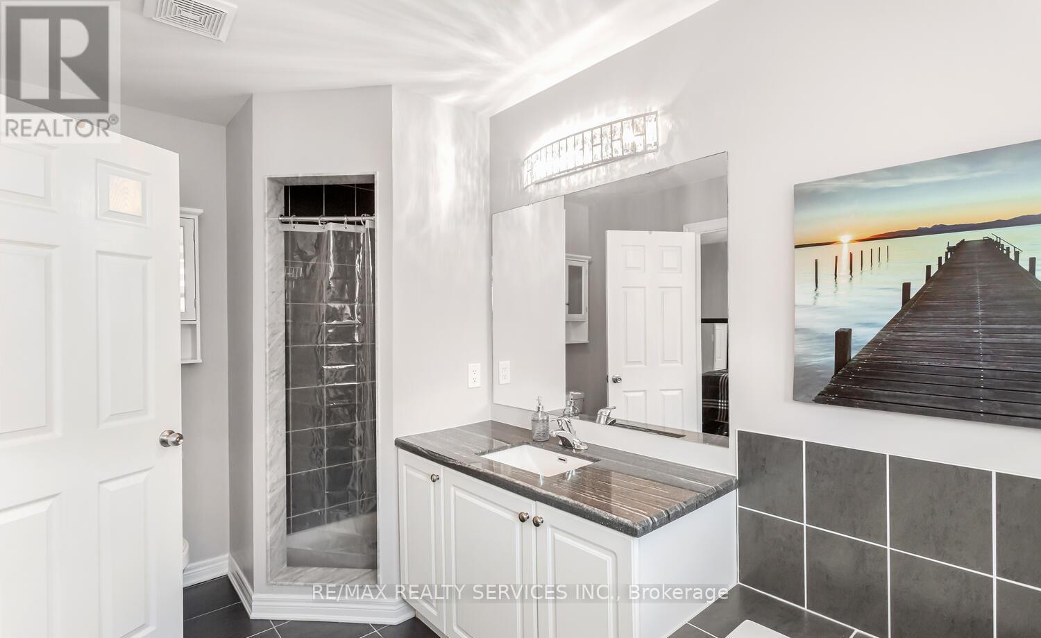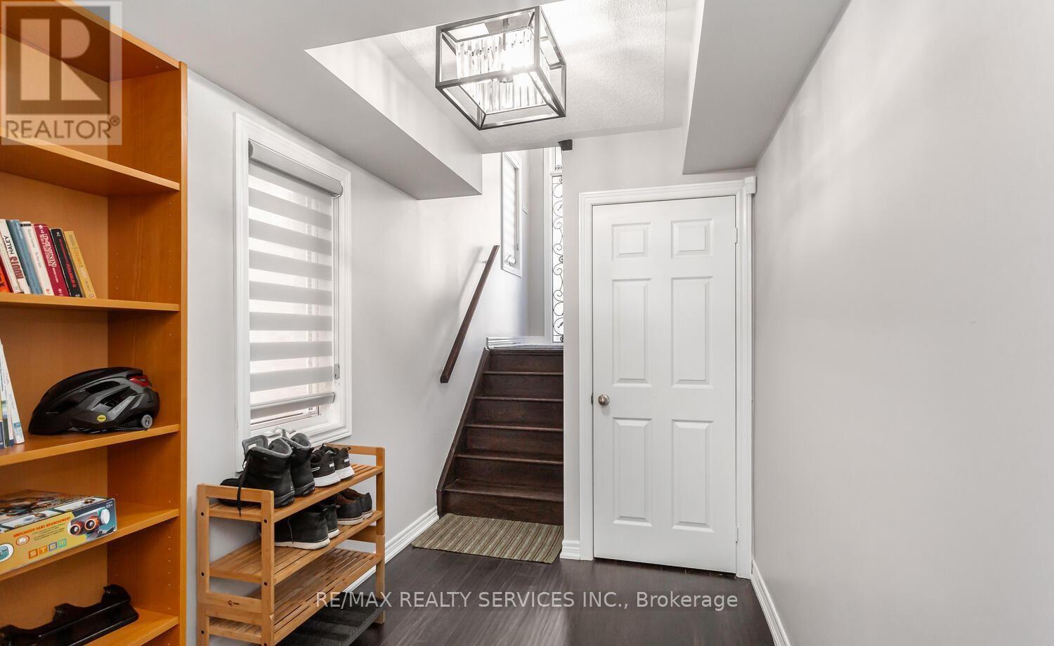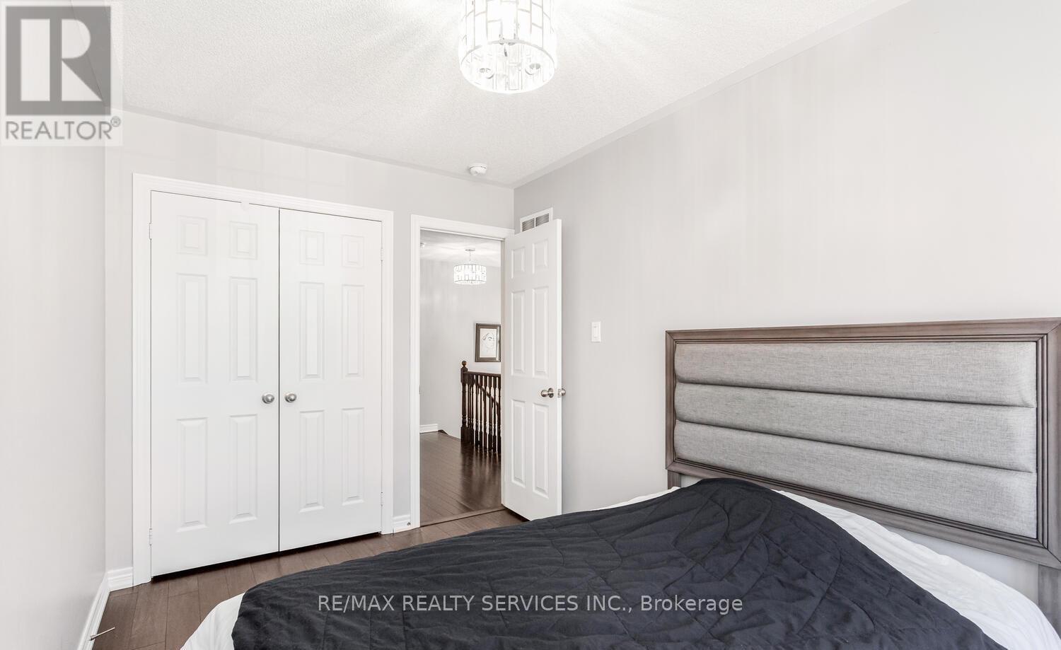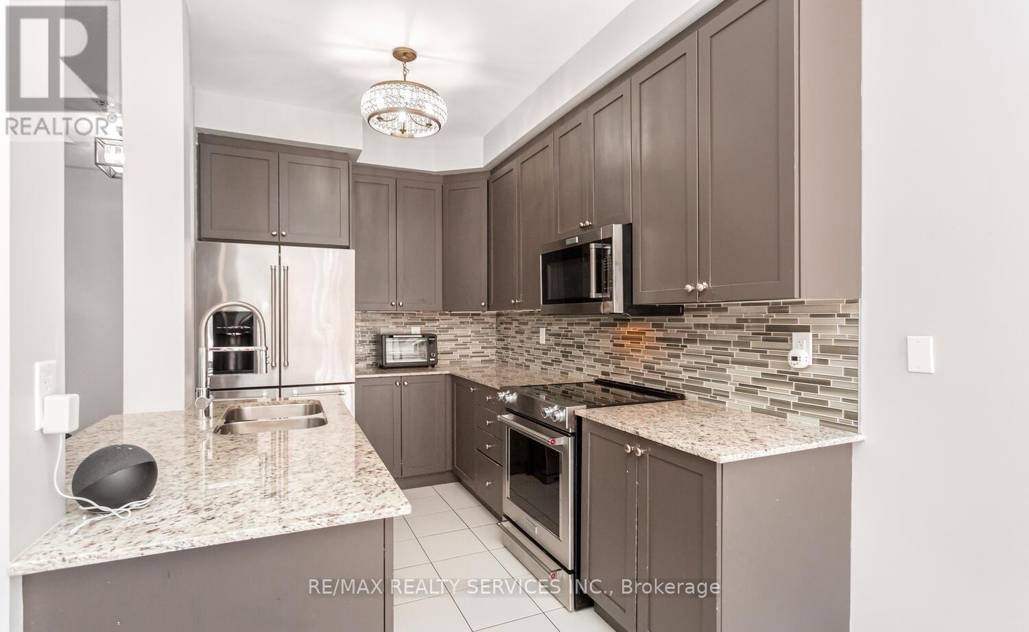 Spectacularly upgraded 3-level freehold townhome featuring a total 4 bedrooms and 3.5 bathrooms, including a fully finished lower level with private bedroom and ensuite washroom ideal for guests or extended family. Enjoy dark-stained hardwood floors and stairs throughout, a modern kitchen with granite countertops and high quality stainless steel appliances, and a walkout to a private deck perfect for morning coffee . Professionally finished perimeter landscaping including backyard with interlocking stone, offering a low-maintenance outdoor space with great curb appeal. Additional highlights include, smart entry system, upgraded light fixtures, convenient upper-level laundry. This perfect family home is conveniently located in a high-demand location close to schools, parks, shopping, transit, and more. A perfect blend of style, function, and location move in and enjoy! (id:51158)