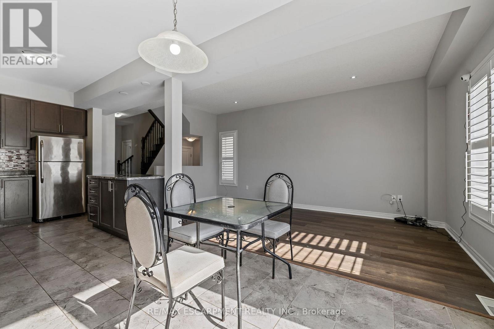 $90.19 MonthlyWelcome to 14 Serenity Lane - a beautifully maintained 3-bedroom, 2.5-bath freehold townhouse offering the perfect blend of style, comfort, and convenience. Ideally located near top-rated schools, parks, shopping, and major highways, this home features elegant porcelain tile and upgraded flooring throughout the main level, an open-concept kitchen with stainless steel appliances and floor-to-ceiling cabinetry, and a bright layout ideal for everyday living and entertaining. An oak staircase leads to three spacious bedrooms, including a primary suite with a private 3-piece ensuite, along with the added convenience of second-floor laundry. The unfinished basement provides excellent storage and future potential, while California shutters and a low-maintenance backyard complete this move-in-ready home. A true turnkey opportunity you won't want to miss. (id:51158)