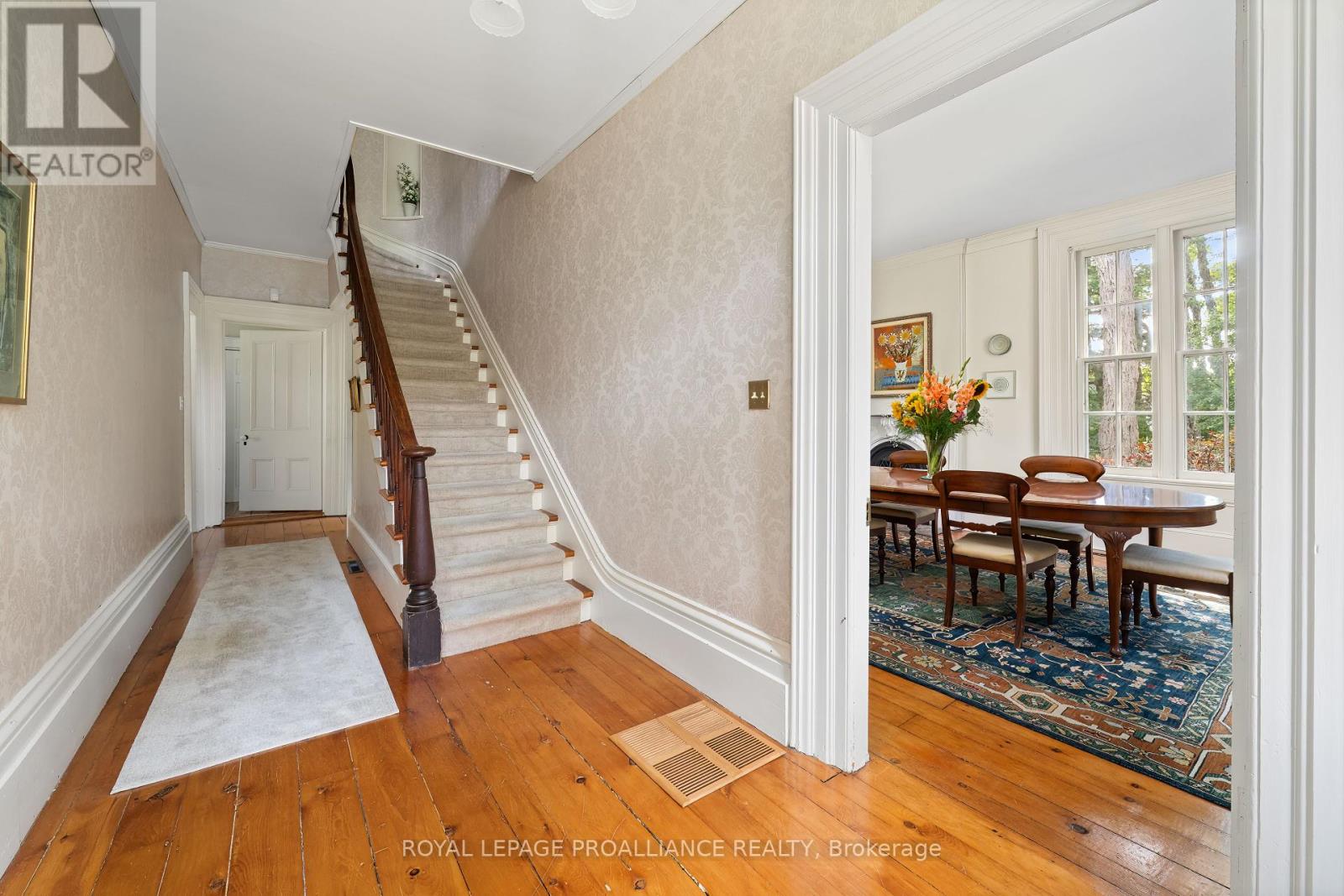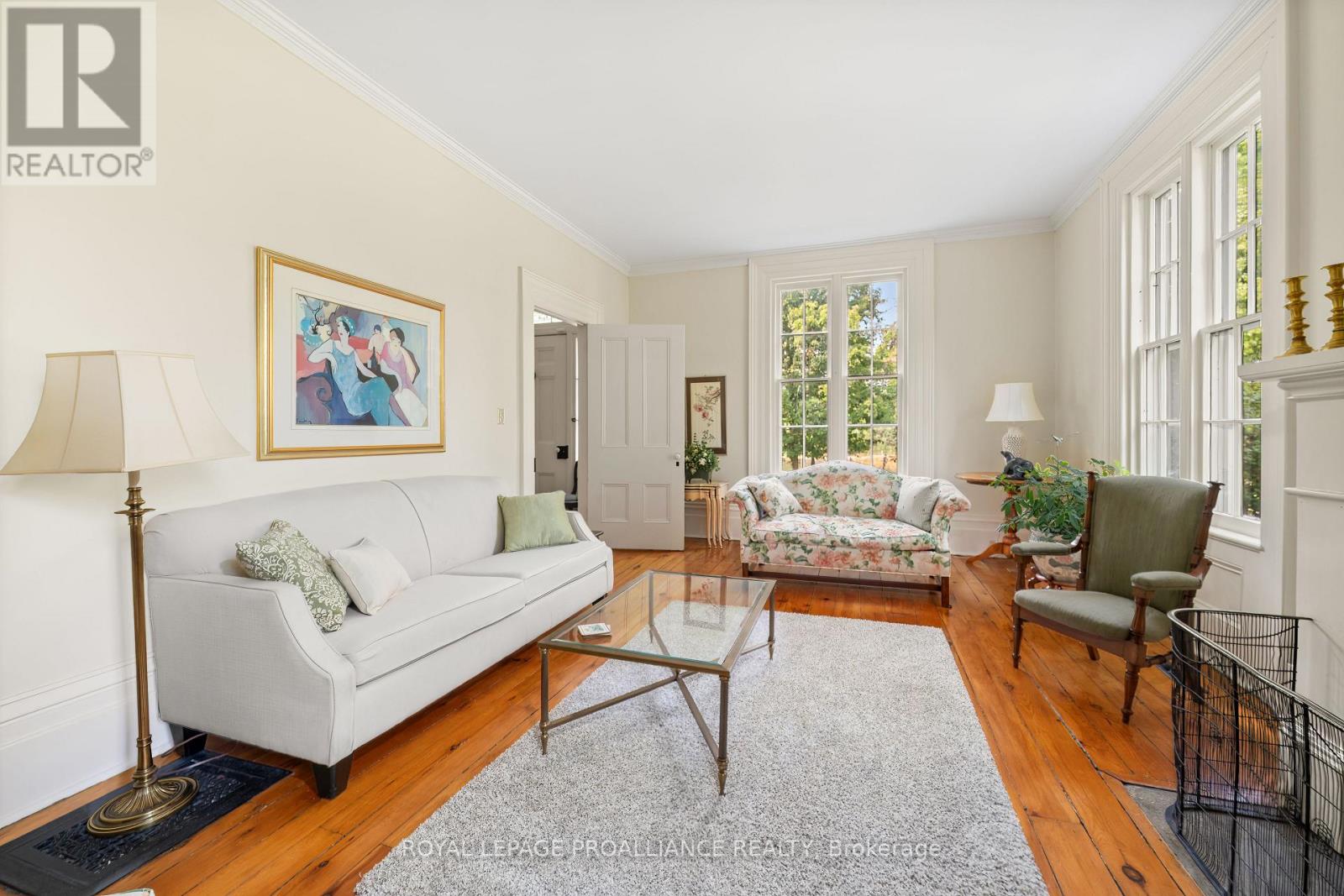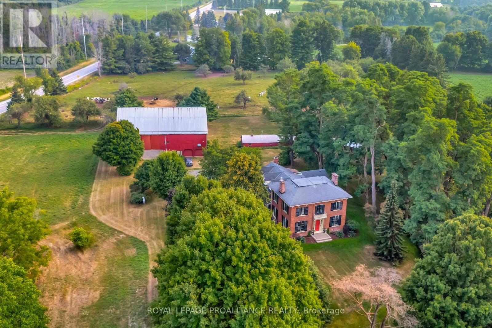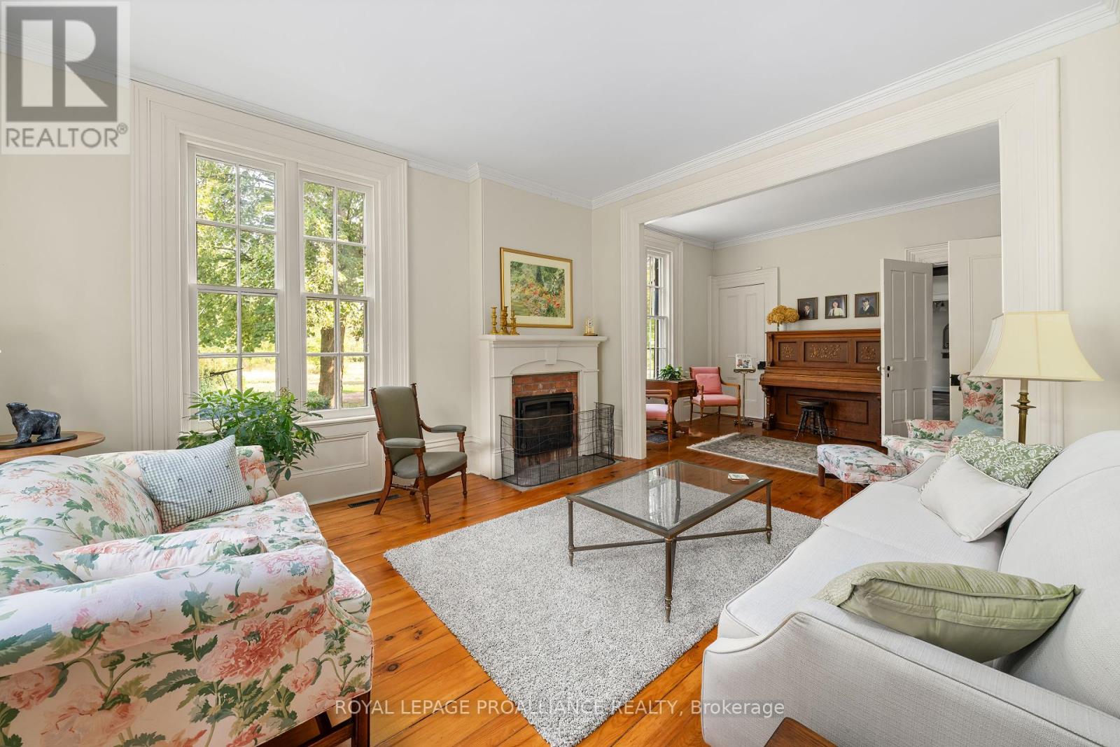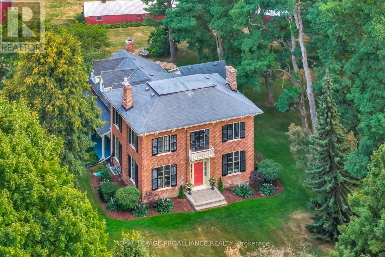 Welcome to this beloved county gem, a century old red brick home located just on the edge of Bloomfield, elegantly set back from Loyalist Parkway in a grove of conifers. This home is historically significant, as seen in The Settlers Dream as the Simpson Mallory house, with similarities to its neighbours The West Lake Boarding School and Fair Lea but with the added benefit of 29+ acres including prime agriculture land under cultivation. The classical symmetry is compared with grand homes like Macaulay House and the Striker Walmsley House in Picton. When Benjamin Simpson, a wagon maker came to this town in 1837 it is likely that the present kitchen tail of the house was a wooden frame farmhouse facing Mallory Crossroad. This outstanding home showcases fascinating architectural features and enduring touches that reflect its Quaker influence. Bloomfield was established in1799 and remains a village with many historical homes and charming shops on Main Street. The house boasts 5 bedrooms and 4 bathrooms, an elegant living room and dining room, perfect for entertaining and family gatherings. The kitchen has been renovated to reflect the character of the home. This property has a fabulous old barn, a workshop and a woodshed, and a lane way access to the Millennium Trail to complete the perfect picture. Only six minutes from Picton home to the Prince Edward County Memorial Hospital, The Regent Theatre, The Royal Hotel, The Waring House, many unique shops, as well as numerous fine dining restaurants, and the PEC Yacht Club. The County is one of the premier destinations for those seeking unforgettable experiences whether its exploring nature, enjoying watersports, savouring food and wine, or relaxing at the beaches. There truly is something for everyone! (id:51158)