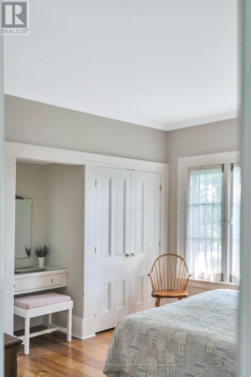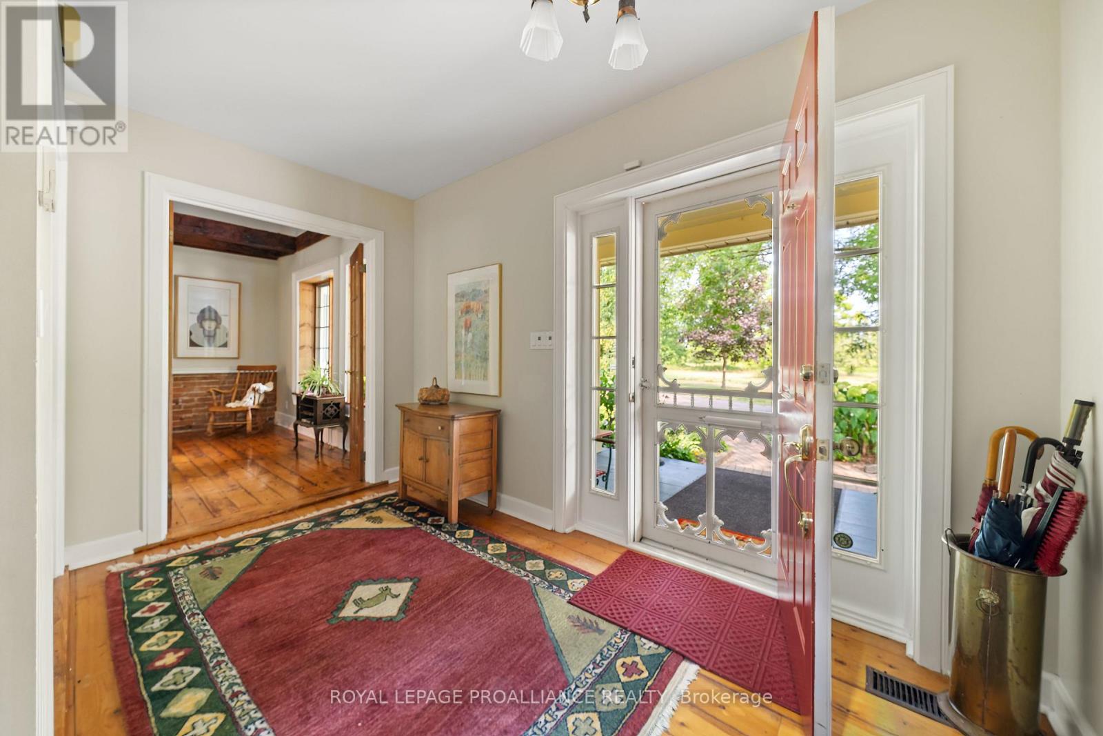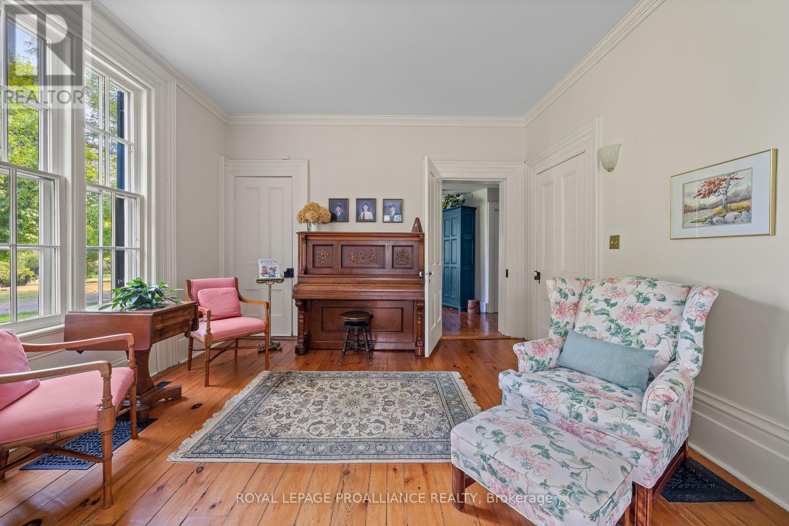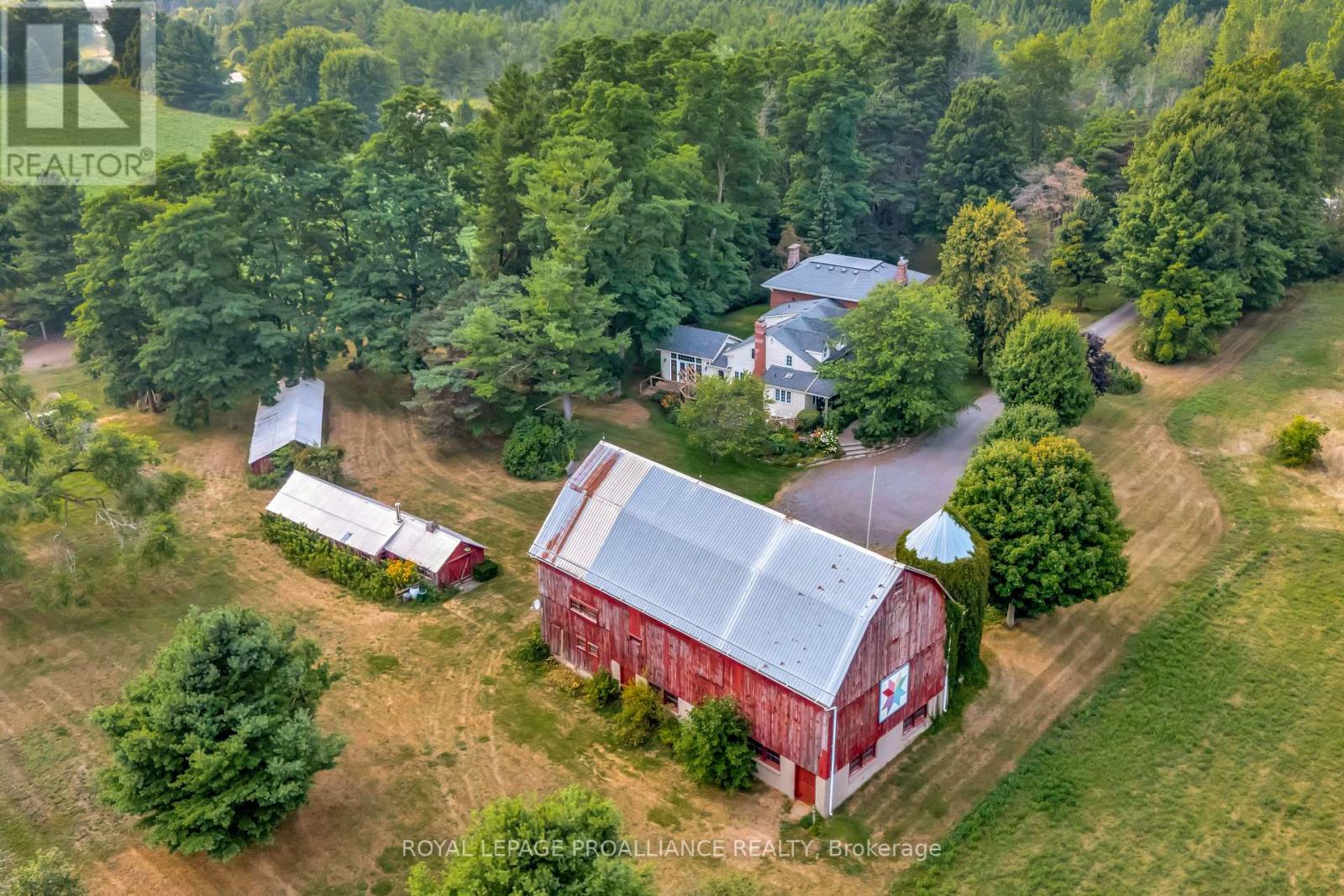 Welcome to this beloved county gem, a century old red brick home located just on the edge of Bloomfield, elegantly set back from Loyalist Parkway in a grove of conifers. This home is historically significant, as seen in The Settlers Dream as the Simpson Mallory house, with similarities to its neighbours The West Lake Boarding School and Fair Lea but with the added benefit of 29+ acres including prime agriculture land under cultivation. The classical symmetry is compared with grand homes like Macaulay House and the Striker Walmsley House in Picton. When Benjamin Simpson, a wagon maker came to this town in 1837 it is likely that the present kitchen tail of the house was a wooden frame farmhouse facing Mallory Crossroad. This outstanding home showcases fascinating architectural features and enduring touches that reflect its Quaker influence. Bloomfield was established in1799 and remains a village with many historical homes and charming shops on Main Street. The house boasts 5 bedrooms and 4 bathrooms, an elegant living room and dining room, perfect for entertaining and family gatherings. The kitchen has been renovated to reflect the character of the home. This property has a fabulous old barn, a workshop and a woodshed, and a lane way access to the Millennium Trail to complete the perfect picture. Only six minutes from Picton home to the Prince Edward County Memorial Hospital, The Regent Theatre, The Royal Hotel, The Waring House, many unique shops, as well as numerous fine dining restaurants, and the PEC Yacht Club. The County is one of the premier destinations for those seeking unforgettable experiences whether its exploring nature, enjoying watersports, savouring food and wine, or relaxing at the beaches. There truly is something for everyone! (id:51158)