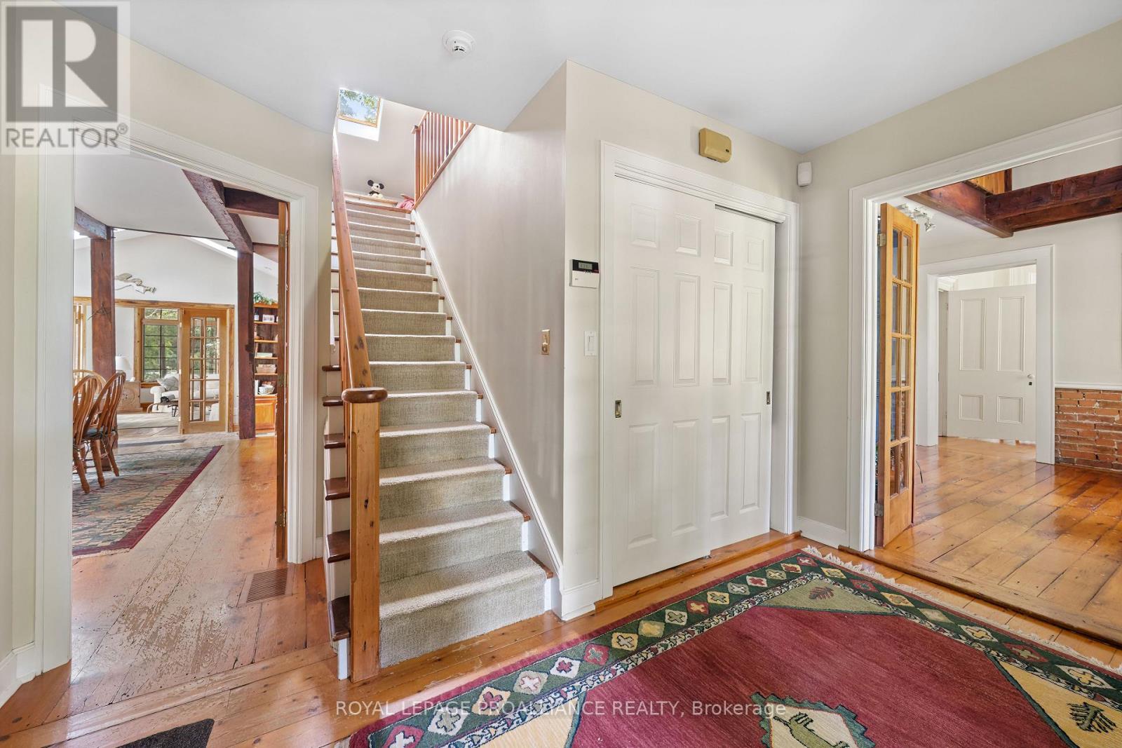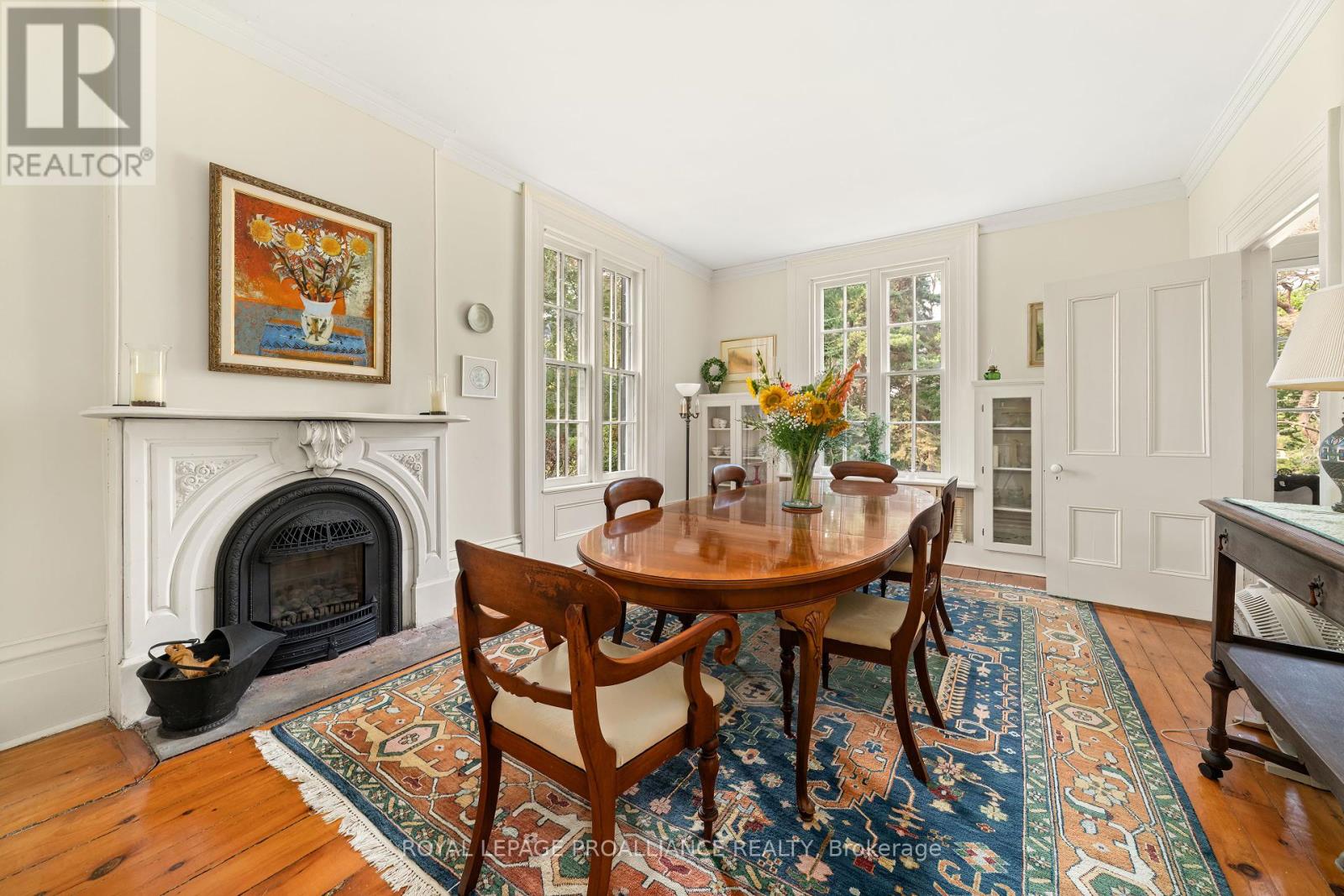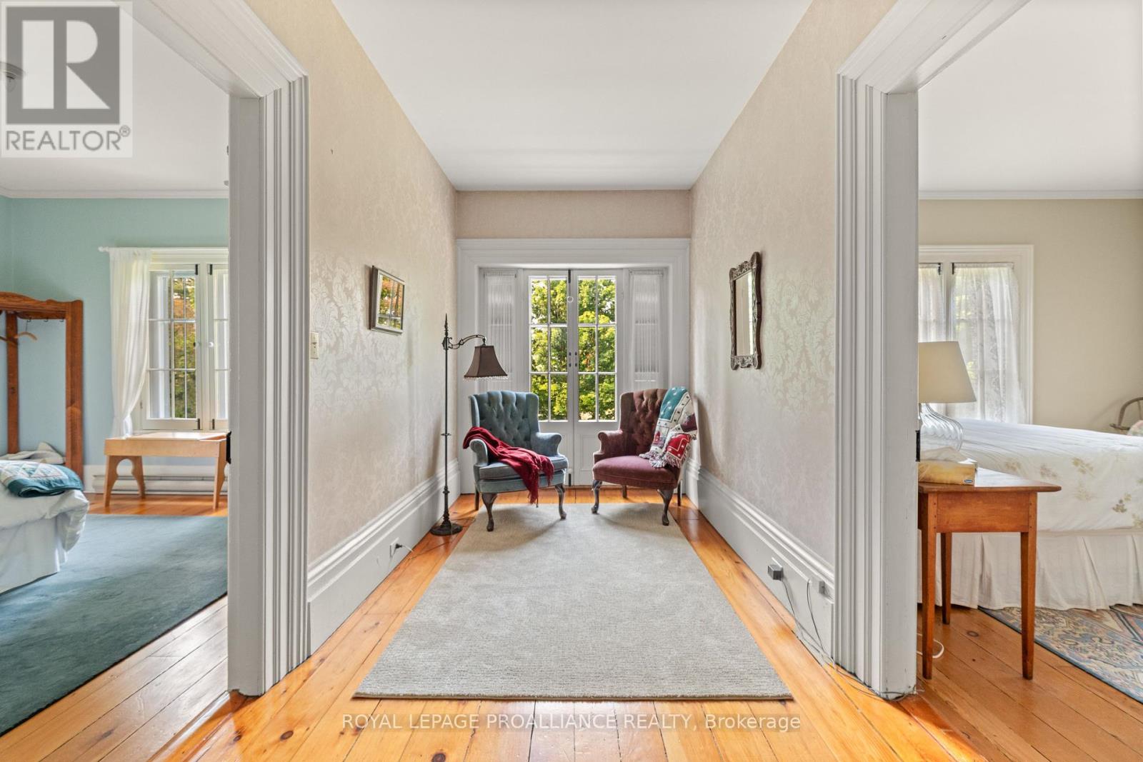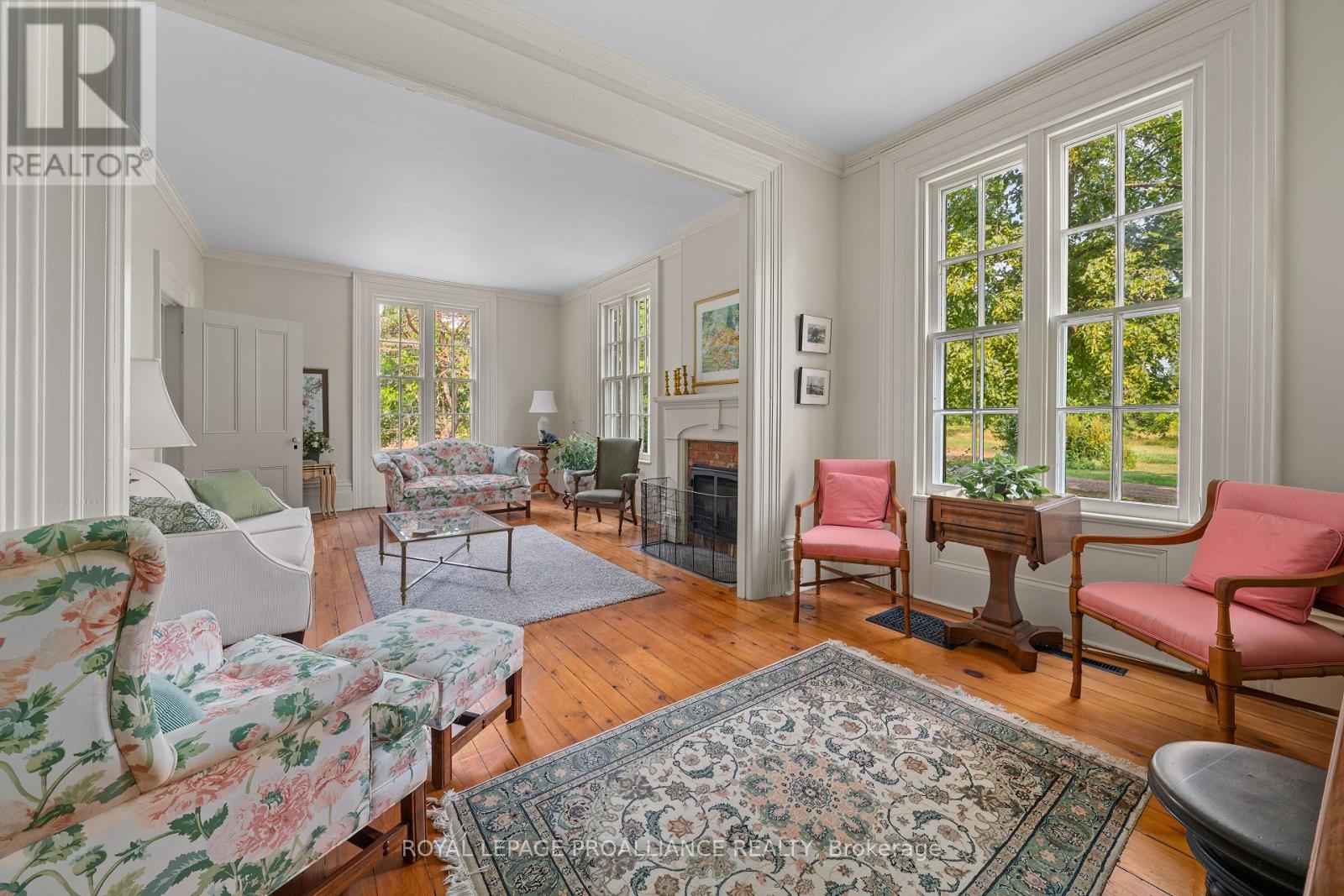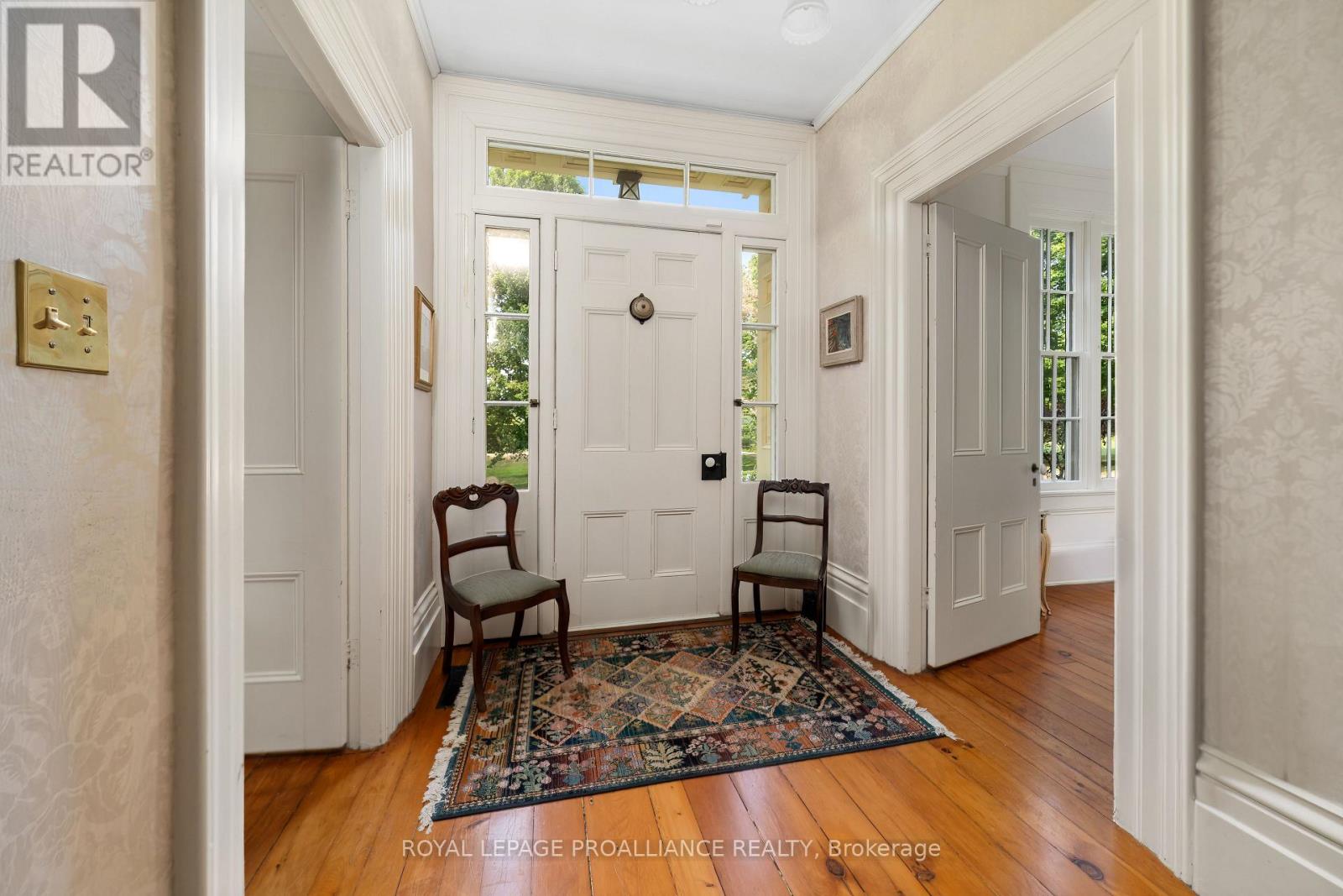 Welcome to this beloved county gem, a century old red brick home located just on the edge of Bloomfield, elegantly set back from Loyalist Parkway in a grove of conifers. This home is historically significant, as seen in The Settlers Dream as the Simpson Mallory house, with similarities to its neighbours The West Lake Boarding School and Fair Lea but with the added benefit of 29+ acres including prime agriculture land under cultivation. The classical symmetry is compared with grand homes like Macaulay House and the Striker Walmsley House in Picton. When Benjamin Simpson, a wagon maker came to this town in 1837 it is likely that the present kitchen tail of the house was a wooden frame farmhouse facing Mallory Crossroad. This outstanding home showcases fascinating architectural features and enduring touches that reflect its Quaker influence. Bloomfield was established in1799 and remains a village with many historical homes and charming shops on Main Street. The house boasts 5 bedrooms and 4 bathrooms, an elegant living room and dining room, perfect for entertaining and family gatherings. The kitchen has been renovated to reflect the character of the home. This property has a fabulous old barn, a workshop and a woodshed, and a lane way access to the Millennium Trail to complete the perfect picture. Only six minutes from Picton home to the Prince Edward County Memorial Hospital, The Regent Theatre, The Royal Hotel, The Waring House, many unique shops, as well as numerous fine dining restaurants, and the PEC Yacht Club. The County is one of the premier destinations for those seeking unforgettable experiences whether its exploring nature, enjoying watersports, savouring food and wine, or relaxing at the beaches. There truly is something for everyone! (id:51158)