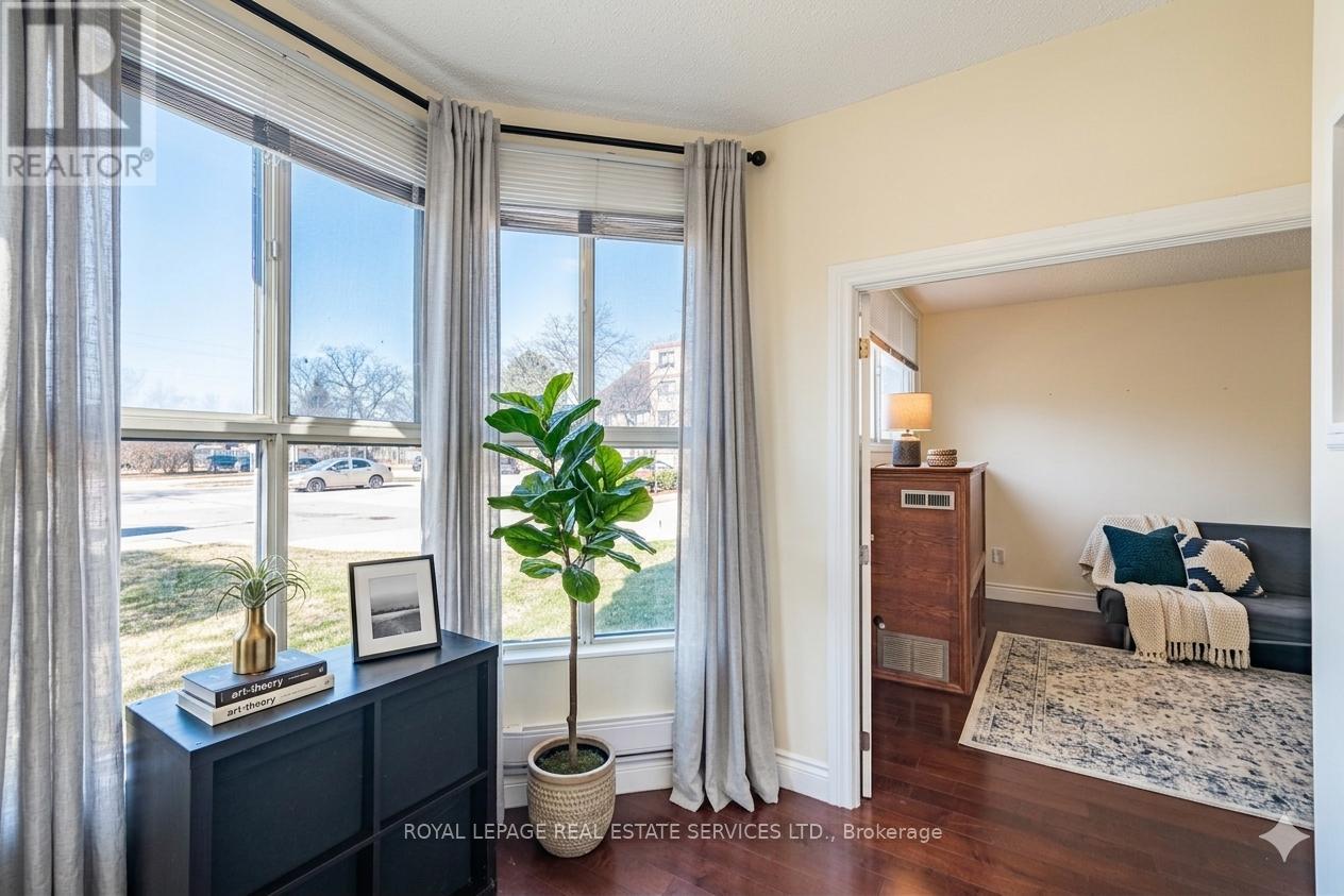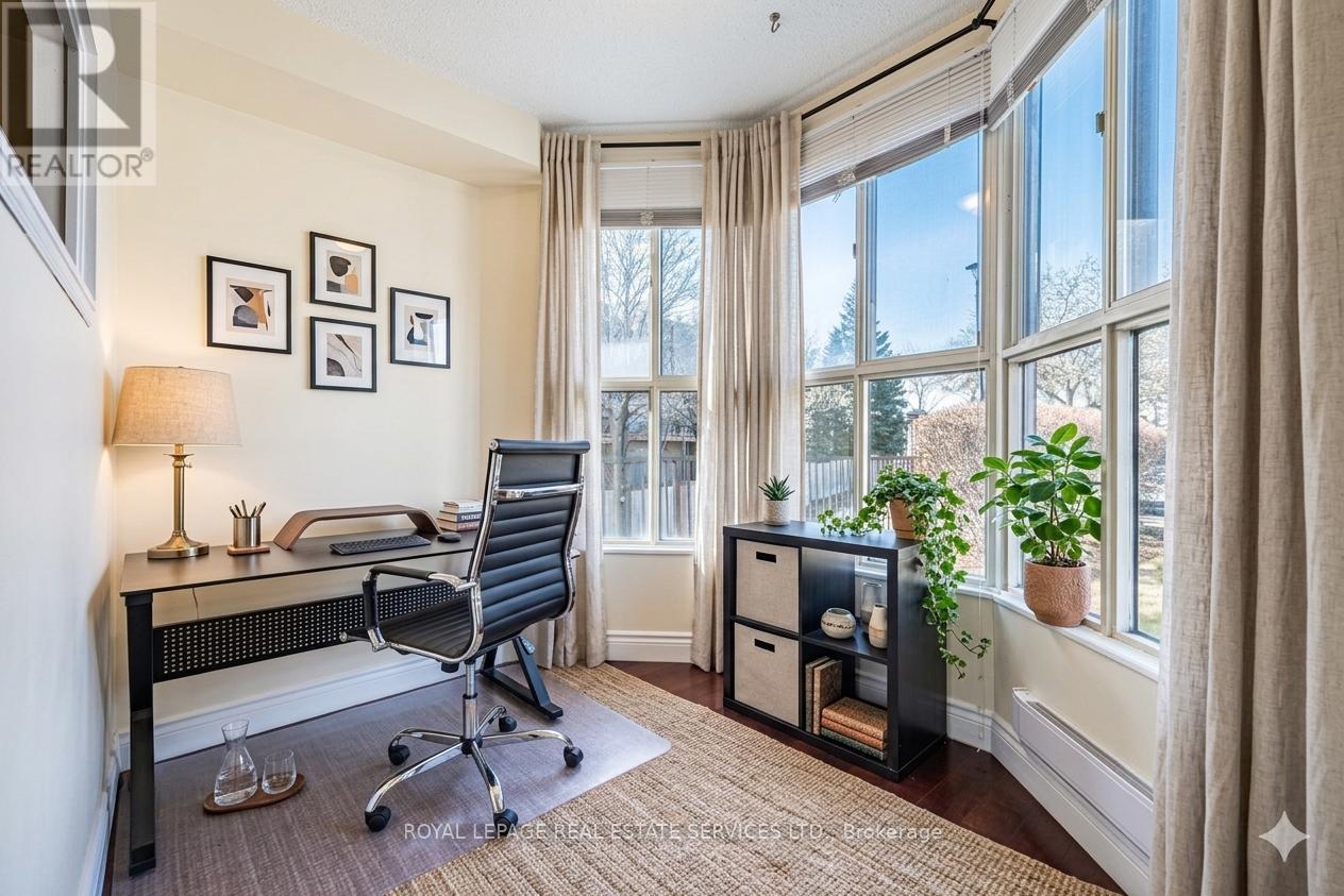 Step into comfort and charm at Camelot on the Park-a welcoming community where everyday living feels just a little more special. Ideally located at 8351 McLaughlin Rd S, you're perfectly positioned to enjoy nearby parks, a large shopping mall, transit, schools, and a variety of restaurants, all just moments from your door. This bright and beautifully maintained 1-bedroom + Den , 1-bathroom ground-floor condo offers a thoughtfully designed layout that feels both open and cozy. Sunlight pours through southwest-facing windows, creating a warm, inviting atmosphere throughout the day. The open-concept living and dining area is perfect for quiet evenings in front of an electric fireplace or hosting friends, while updated laminate flooring and a refreshed kitchen with sleek stainless-steel appliances add a modern touch. The spacious bedroom provides a peaceful retreat, and the enclosed den with elegant French doors offers wonderful flexibility, ideal as a home office, cozy reading nook, guest space, or a children's bedroom. Enjoy the added comfort of in-suite laundry and the everyday convenience of secure underground parking-especially appreciated during the winter months. Residents also have access to a fantastic selection of amenities, including an indoor pool, fitness centre, games room, library, and guest suites, along with welcoming common spaces that foster a true sense of community. Move in, settle down, and start enjoying a lifestyle that blends ease, warmth, and connection in one delightful place. (id:51158)
