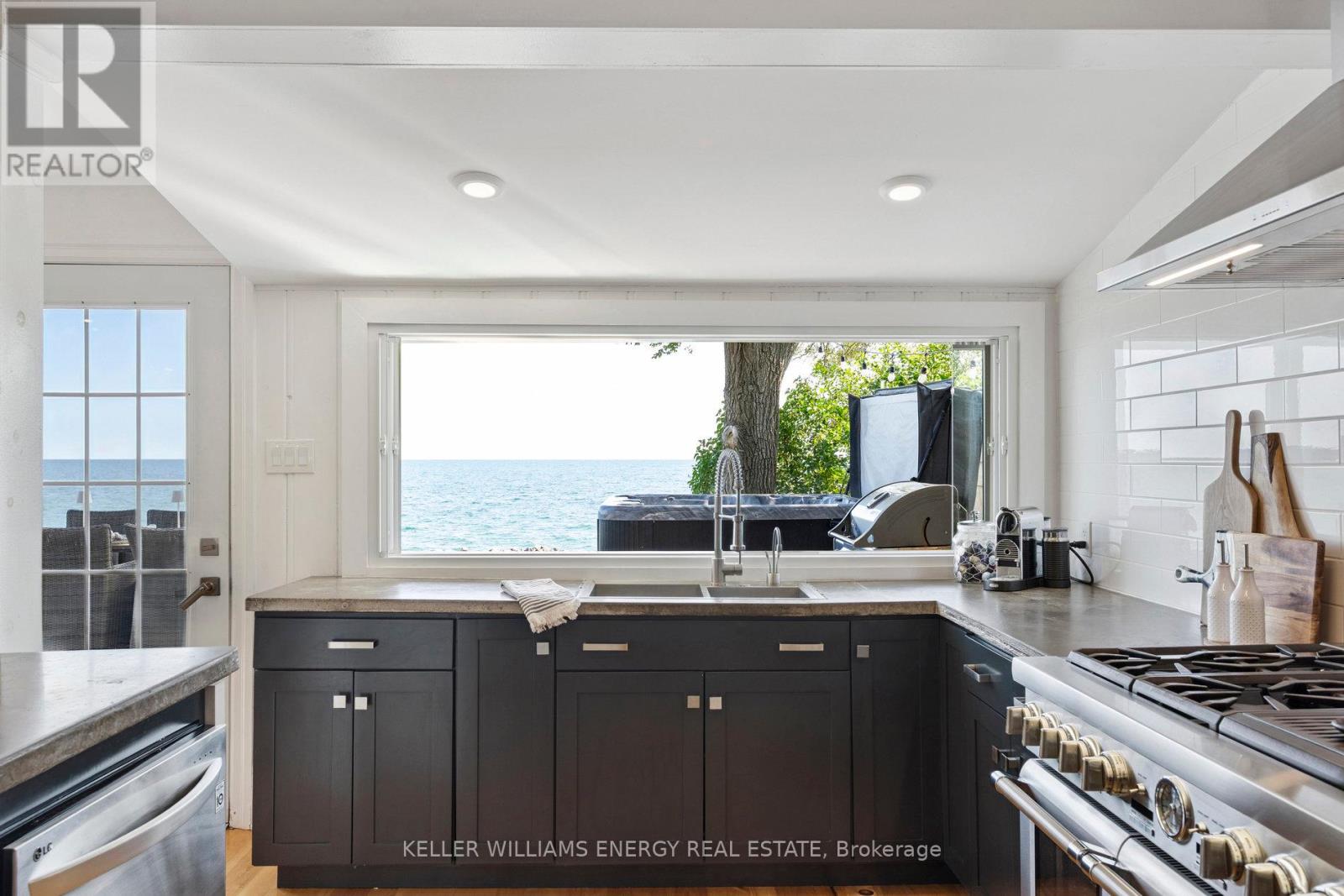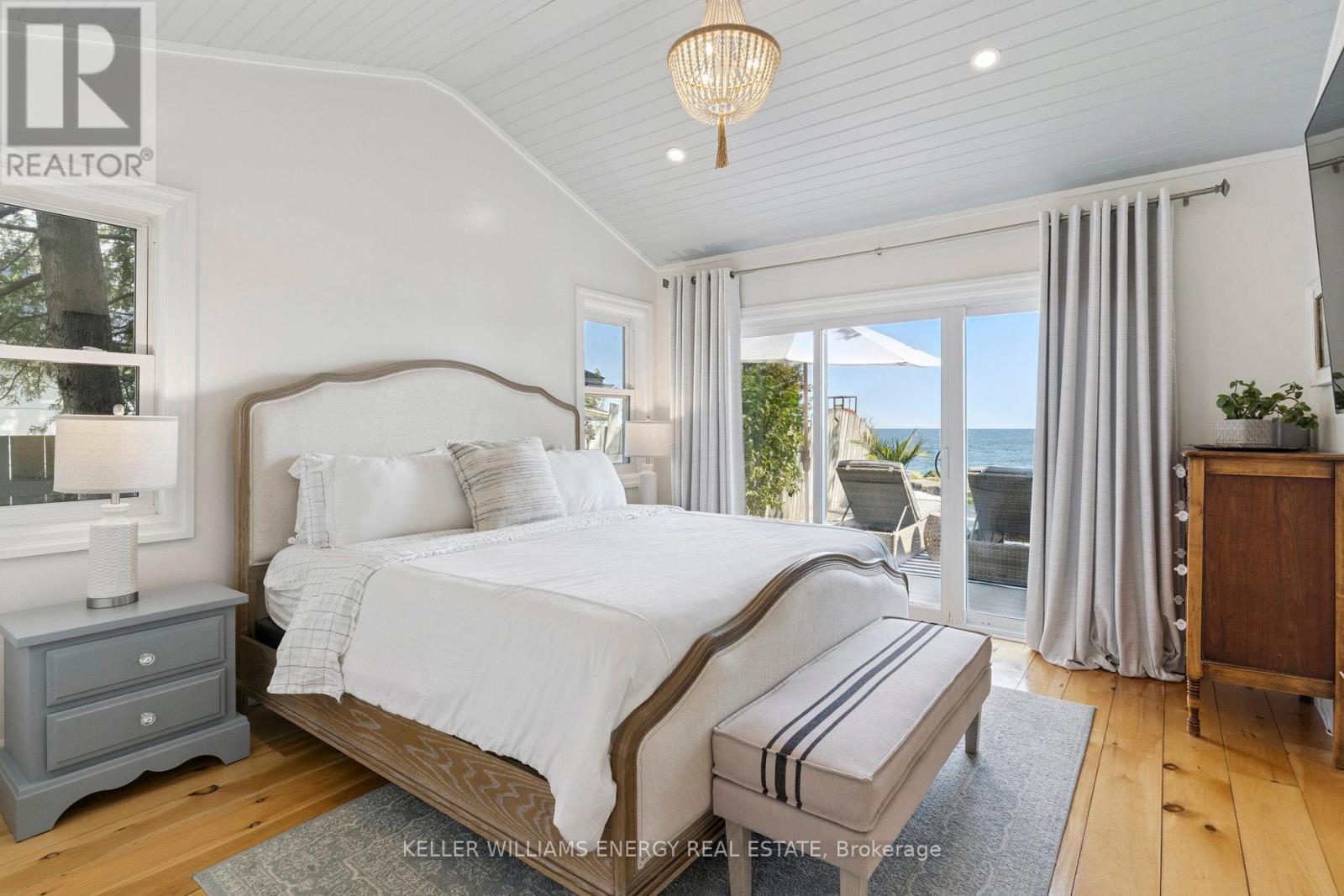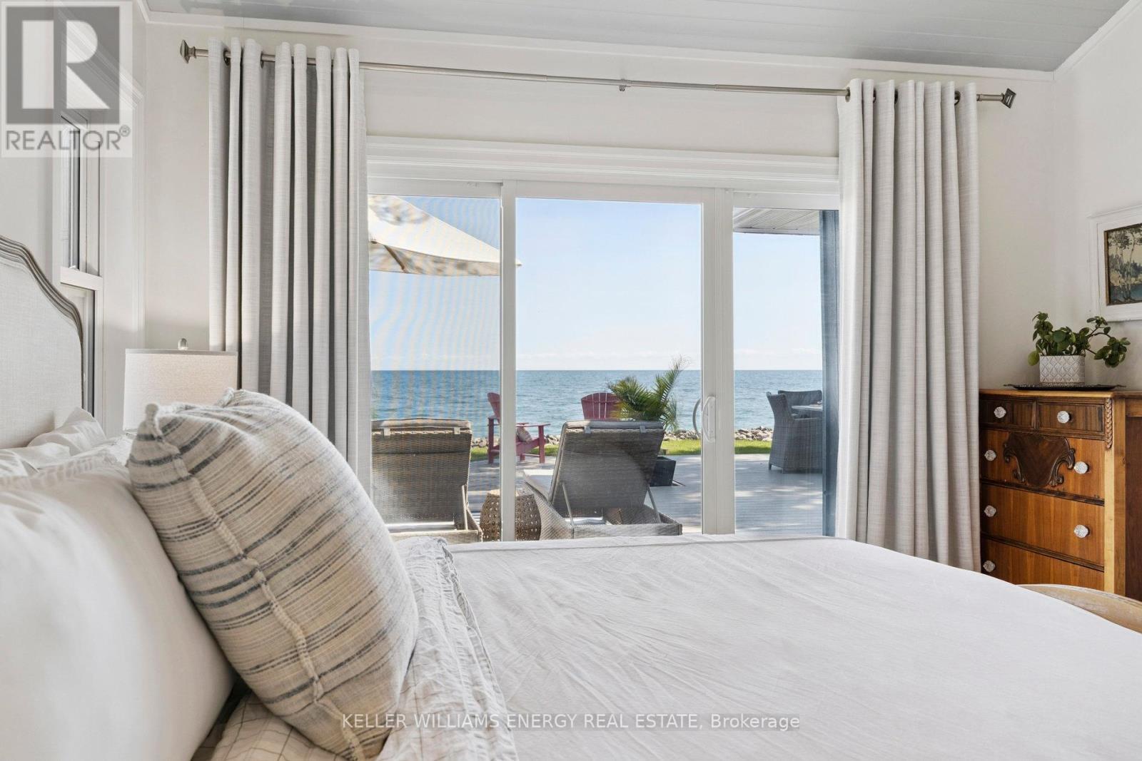 Awaken to sweeping views of Lake Ontario from this elegant waterfront bungalow, set on a rare 300-ft-deep private lot. The vaulted great room features a stunning floor-to-ceiling stone fireplace, cathedral ceilings, and 12-ft sliding glass doors all connecting seamlessly to the expansive lakeside TREX decking. A chefs kitchen complete with Thermador appliances, convenient pot filler, modern counters, elegant skylight windows, and a pass-through window, that truly bring the sound of waves crashing on the shoreline, inside. The primary suite offers a spa-like ensuite with heated marble floors, walk-in closet, and direct walkout to the deck. A separate wing includes a full second kitchen, family flex room with expansive sliding glass doors to the courtyard, a bedroom, and 3-pc bathideal for multi-generational living. The detached 2 car garage features an insulated loft apartment with a kitchen, 3-pc bath, fireplace, and walk-in closet. Landscaped grounds include a hot tub, exquisite French inspired gardens, and multiple outdoor living areas, all just minutes from downtown Bowmanville, Hwy 401, and under an hour to Toronto. (id:51158)