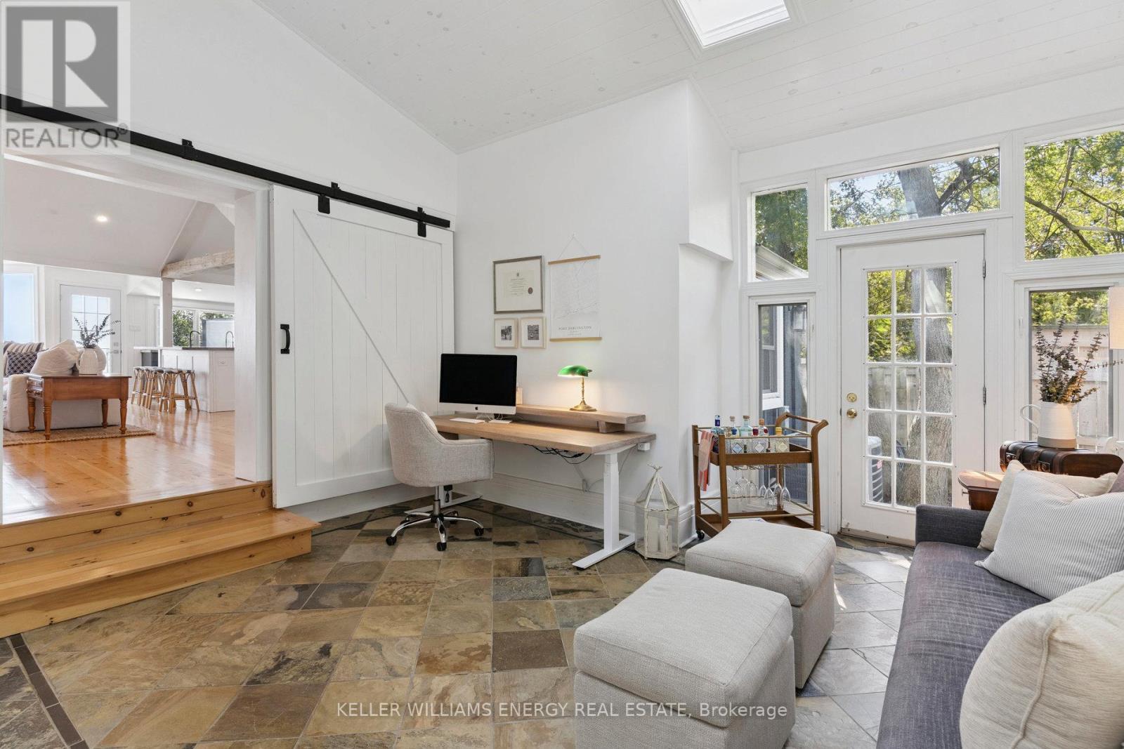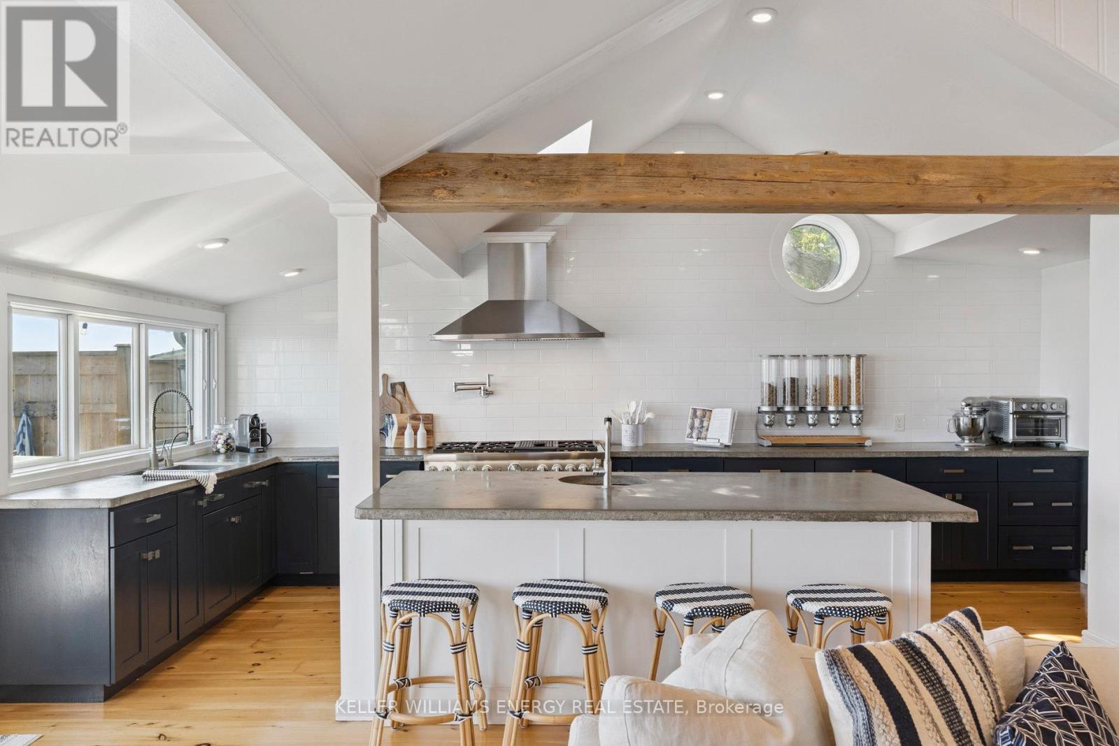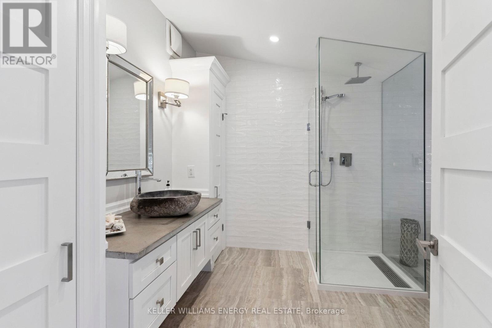Awaken to sweeping views of Lake Ontario from this elegant waterfront bungalow, set on a rare 300-ft-deep private lot. The vaulted great room features a stunning floor-to-ceiling stone fireplace, cathedral ceilings, and 12-ft sliding glass doors all connecting seamlessly to the expansive lakeside TREX decking. A chefs kitchen complete with Thermador appliances, convenient pot filler, modern counters, elegant skylight windows, and a pass-through window, that truly bring the sound of waves crashing on the shoreline, inside. The primary suite offers a spa-like ensuite with heated marble floors, walk-in closet, and direct walkout to the deck. A separate wing includes a full second kitchen, family flex room with expansive sliding glass doors to the courtyard, a bedroom, and 3-pc bathideal for multi-generational living. The detached 2 car garage features an insulated loft apartment with a kitchen, 3-pc bath, fireplace, and walk-in closet. Landscaped grounds include a hot tub, exquisite French inspired gardens, and multiple outdoor living areas, all just minutes from downtown Bowmanville, Hwy 401, and under an hour to Toronto. (id:51158)