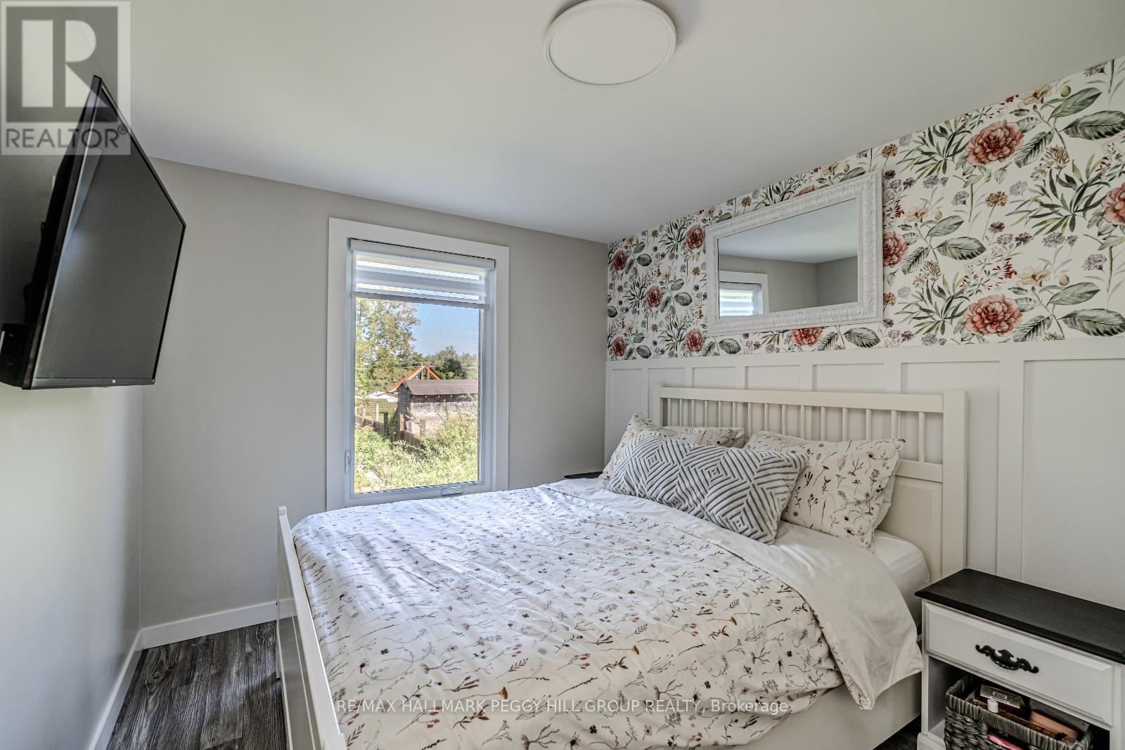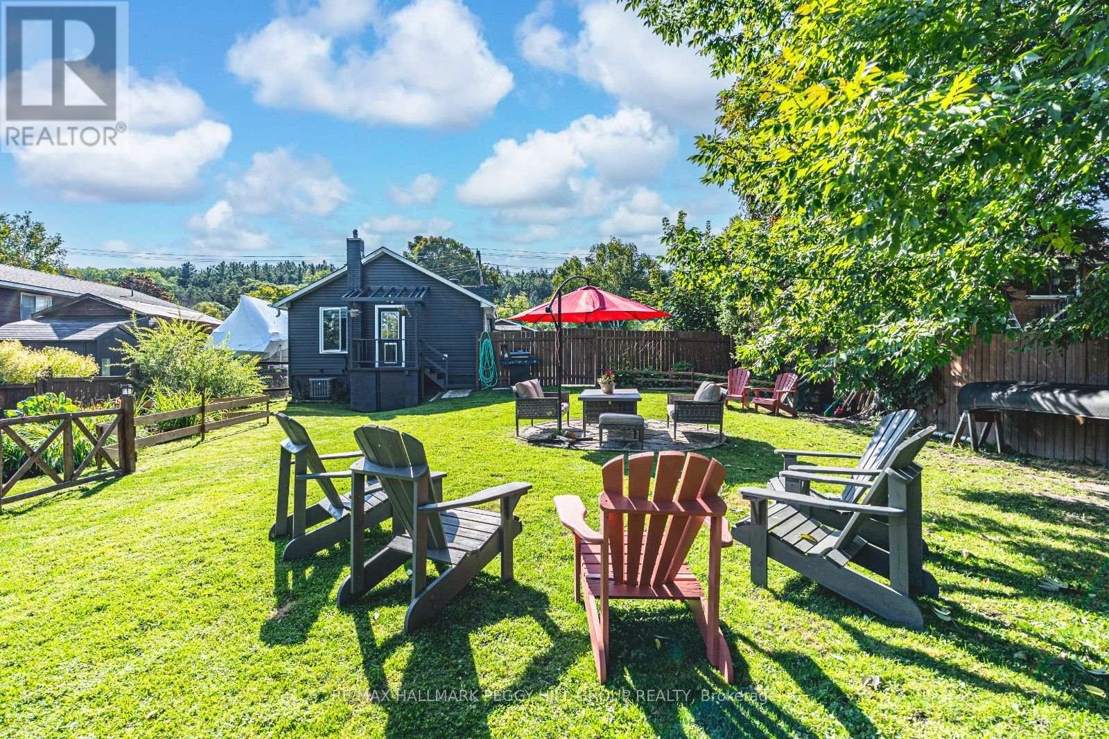 UPDATES GALORE, TASTEFUL FINISHES, & A TURN-KEY BUNGALOW MINUTES FROM EVERYTHING! This adorable bungalow is the ultimate Penetanguishene find, bursting with personality and loaded with updates that make it shine from the inside out! Sitting on an expansive 57 x 139 ft lot backing right onto the Rotary Trail, it serves up a backyard paradise with a patio area, garden space, lush lawn, and a handy storage shed. Pull into the freshly re-sealed driveway and take in the charming curb appeal with a welcoming foyer featuring bold wallpaper, a built-in bench, and a closet that sets the tone for everything this home delivers. The modernized kitchen showcases updated stainless steel appliances, matte olive green shaker cabinets, crisp white subway tile, and complementary countertops, while the combined living and dining area feels dreamy with a sleek electric linear fireplace, rustic wood beam mantle, and a large sun-filled window. The 3-piece bathroom with laundry brings hotel-level vibes with a glass-enclosed shower, elegant tile, a contemporary vanity, and bold black fixtures. The cozy primary bedroom is pure charm with wainscotting, wallpaper, and a double closet. Significant improvements have already been tackled for you, including shingles, windows, doors, siding, flooring, paint, and ceilings, so all that's left to do is move in and enjoy. Cute as can be and bursting with updates, this little gem is a total win for first-time buyers, downsizers, or anyone craving a stylish move-in ready #HomeToStay! (id:51158)