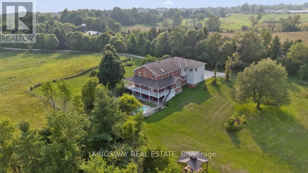 Welcome to 14141 Dublin Line, Where Luxury Meets Lifestyle of 6119 sq ft of total living space on Over 9 Acres of Pure Country Perfection. If you're searching for tranquility, privacy, natural beauty, and luxury wrapped into one incredible estate this is the one! Set on over 9.4 pristine acres of manicured countryside, this show stopping estate offers glorious panoramic views, rolling hills, and a sense of peace thats nearly impossible to find all just 5 minutes to the GO Train, 15 to the 401/407, and a short drive into town. It's your private retreat, perfectly connected. Fully gutted in 2023 and renovated top to bottom by 2024 with no expense spared. This home is a masterclass in design and comfort. From rich hardwood floors to porcelain tile, granite countertops, and luxury finishes throughout everything feels intentional, elevated, and built to impress. From the moment you enter, youre greeted with jaw-dropping views of the rolling landscape and an open layout thats made for hosting. The main level features a crisp white chefs kitchen, oversized living, dining, and family rooms, and a floor plan that balances elegance with everyday functionality. Upstairs? Youll find 5 spacious bedrooms, including TWO primary suites one with three walk-in closets and a spa-like 5-piece ensuite, the other overlooking the pool and hot tub with its own luxe bath. Four out of the five bedrooms have their own ensuites perfect for large families or guests. The walkout basement is bright, open, and built for entertaining. Think: movie nights, game days, slumber parties this space does it all and more. Outside, the amenities continue:Set back from a tree-lined road for maximum privacy, Fully fenced yard with plenty of space to roam, 18x36 in-ground pool + hot tub, Horse paddock, Detached shed, And views that belong on a postcard. This isn't just a home its a lifestyle upgrade!!. Whether you're raising a family, hosting unforgettable events, or just craving space and serenity. (id:51158)