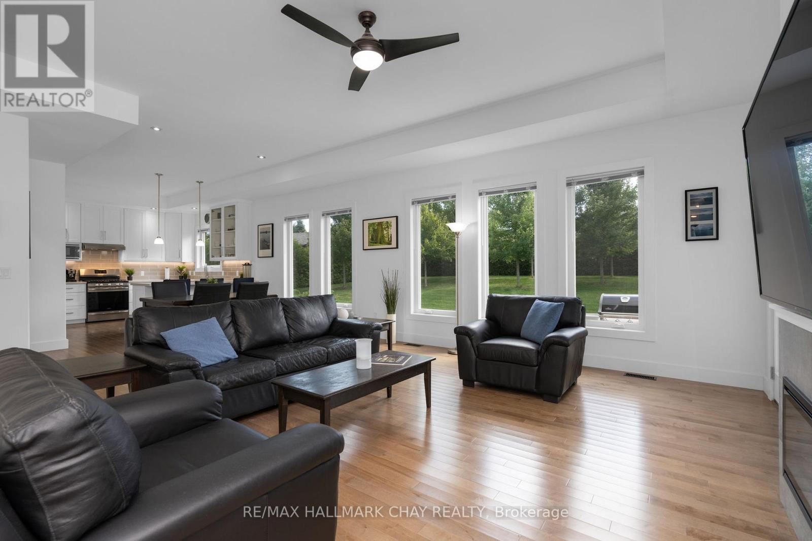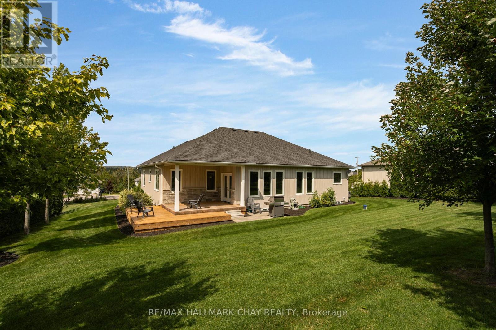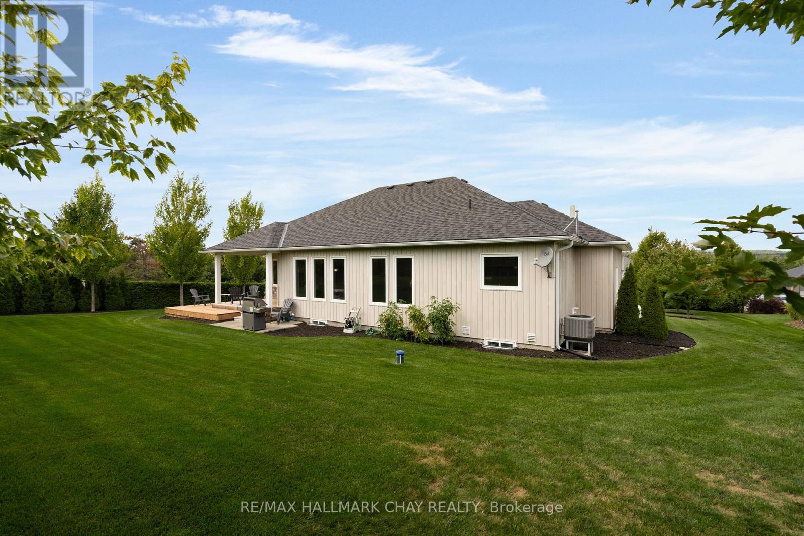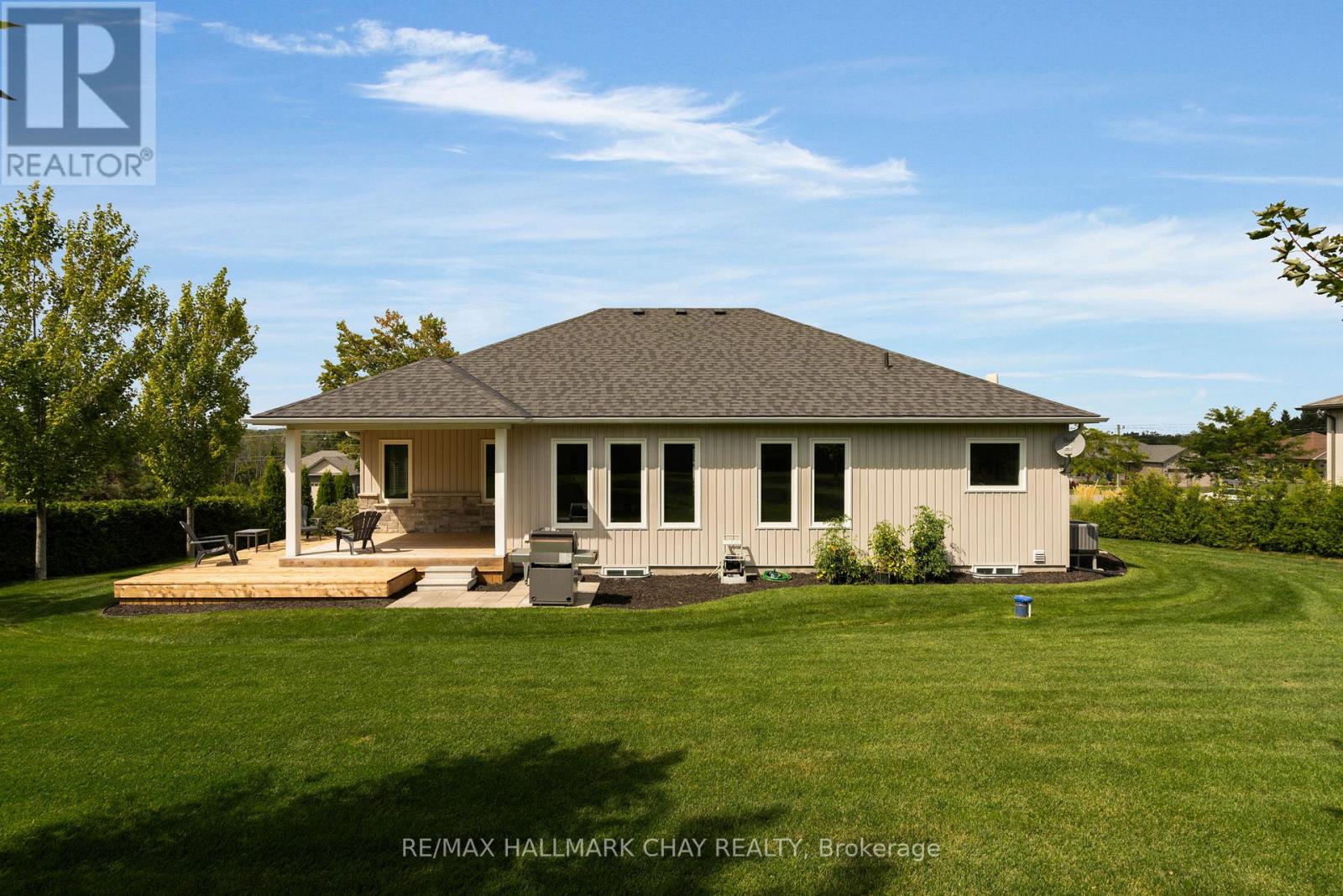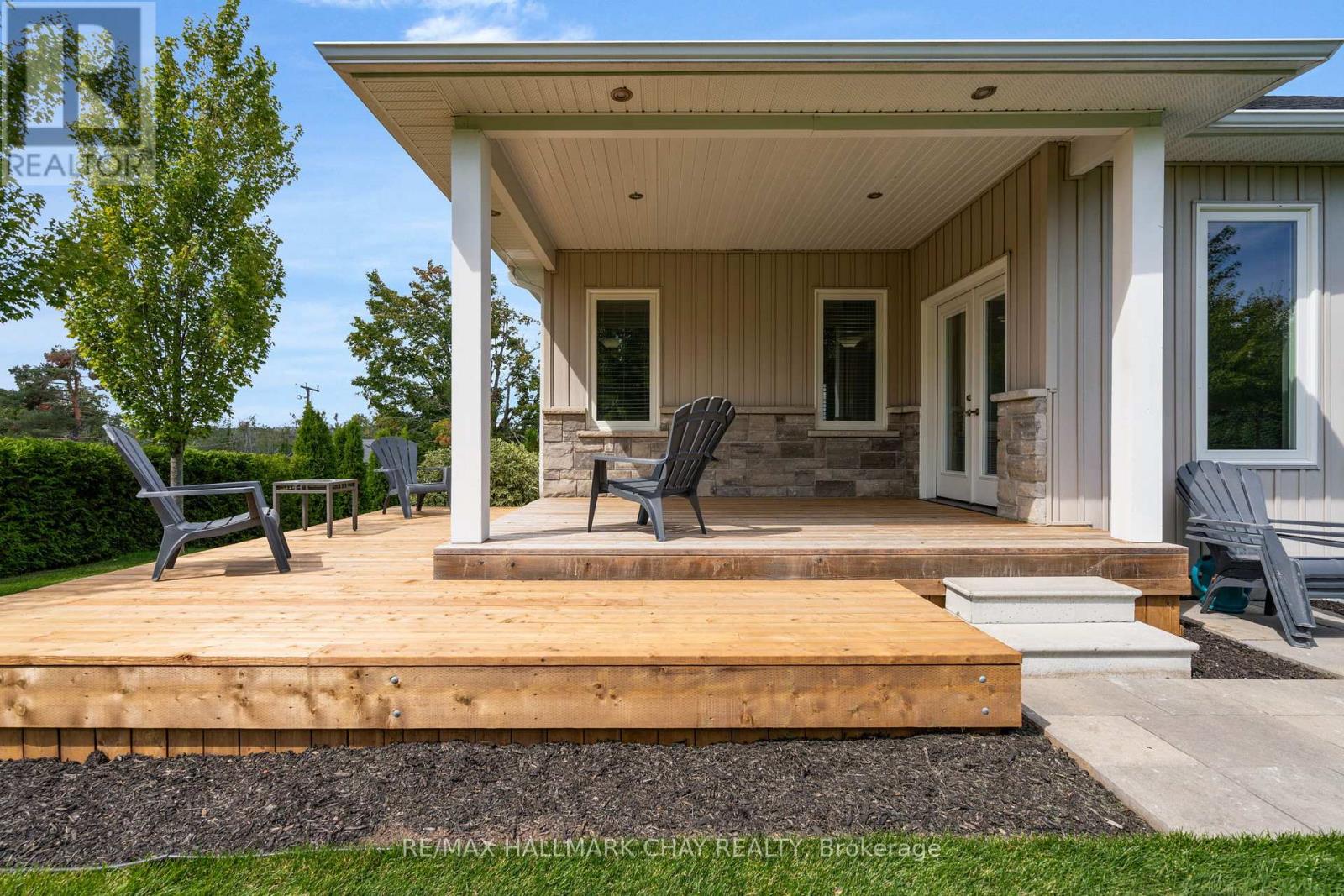 Elegance meets nature with this custom-built Bungalow in the heart of Oro-Medonte. A beautifully landscaped 109 ft x 198 ft lot with stunning views of surrounding forest and EP land! The main floor is an entertainers dream with open concept, expansive windows that embrace sunlight from east to west, 10-foot tray ceilings, pot lights and hardwood floors throughout. Chefs kitchen offers plenty of prep space on the quartz counters, custom cabinetry and high-end SS appliances. Walkout to the fully covered 150 Sq Ft deck with extension overlooking the large treed back yard that provides plenty of privacy. Three Large bedrooms and two full bathrooms, primary with large walk-in closet and spacious ensuite. Convenient Main floor laundry and Inside access to fully insulated oversized garage. Large, paved driveway parks 8+ vehicles. Premium end lot in East Oro development with no homes to the West, built in 2018. A/C plus Heat Pump, 200 Amp service... Steps to school, close to skiing, golfing, boating, beach, hiking, trails, shopping, quick highway access for commuters... Don't miss out! (id:51158)