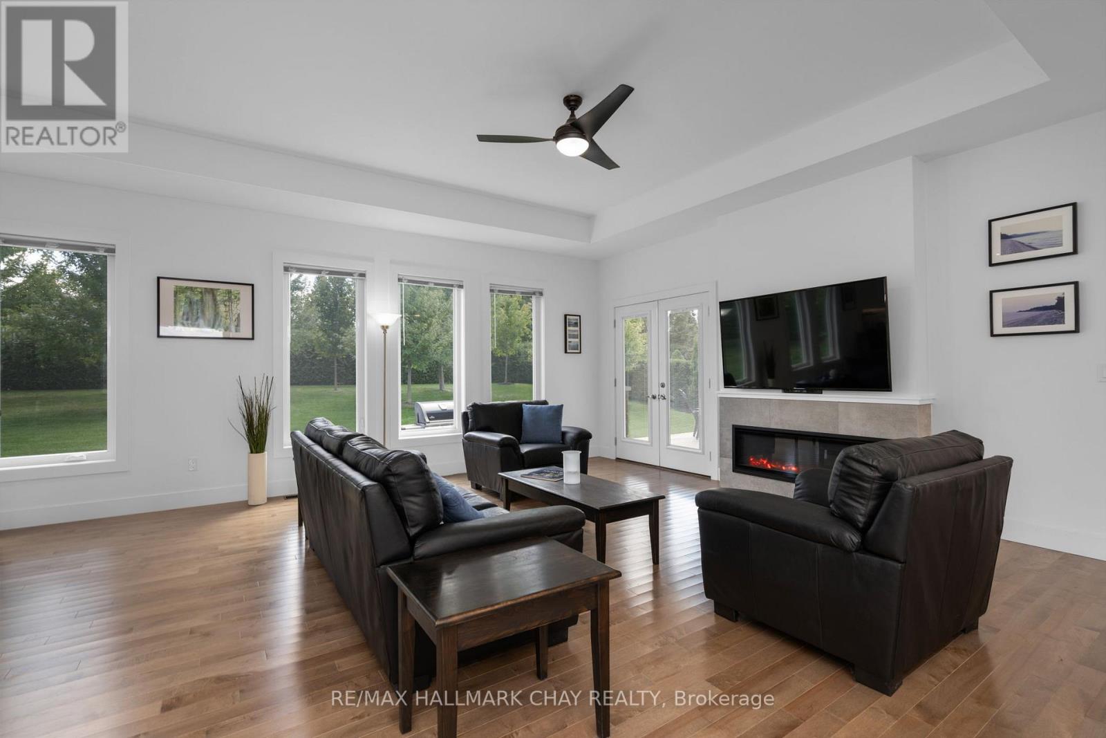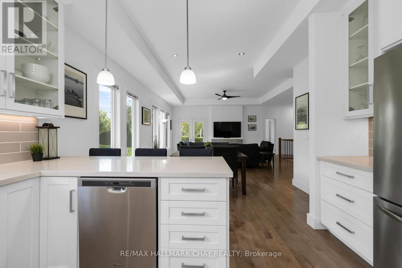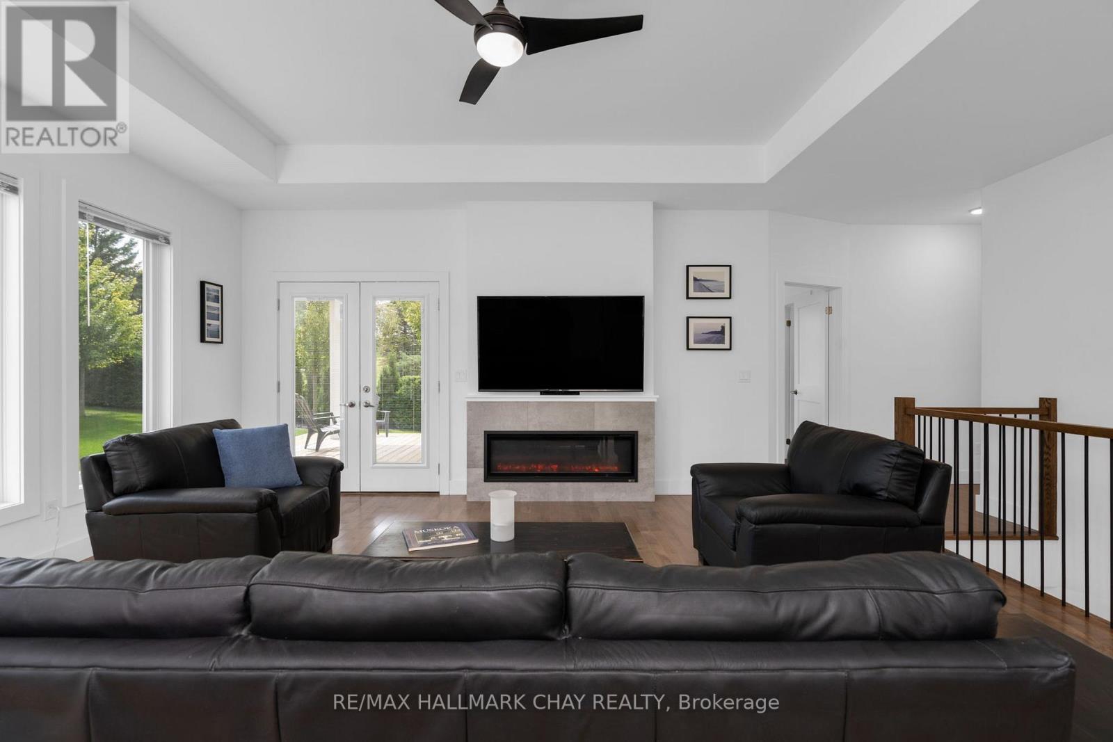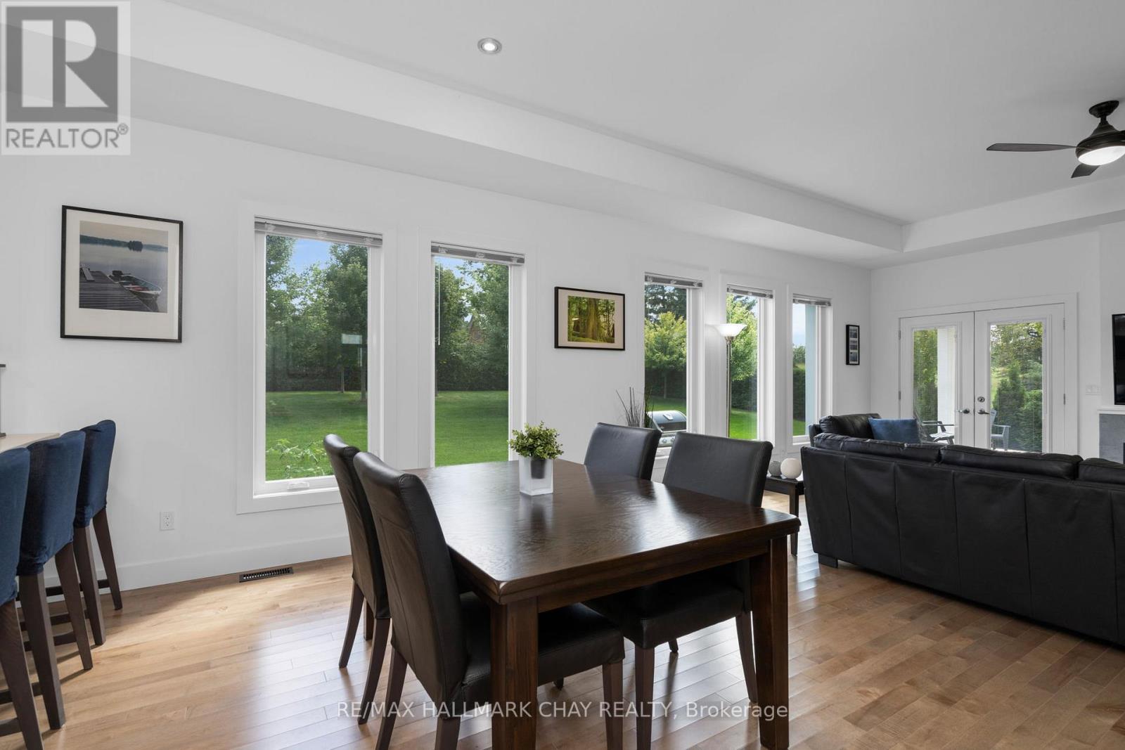 Elegance meets nature with this custom-built Bungalow in the heart of Oro-Medonte. A beautifully landscaped 109 ft x 198 ft lot with stunning views of surrounding forest and EP land! The main floor is an entertainers dream with open concept, expansive windows that embrace sunlight from east to west, 10-foot tray ceilings, pot lights and hardwood floors throughout. Chefs kitchen offers plenty of prep space on the quartz counters, custom cabinetry and high-end SS appliances. Walkout to the fully covered 150 Sq Ft deck with extension overlooking the large treed back yard that provides plenty of privacy. Three Large bedrooms and two full bathrooms, primary with large walk-in closet and spacious ensuite. Convenient Main floor laundry and Inside access to fully insulated oversized garage. Large, paved driveway parks 8+ vehicles. Premium end lot in East Oro development with no homes to the West, built in 2018. A/C plus Heat Pump, 200 Amp service... Steps to school, close to skiing, golfing, boating, beach, hiking, trails, shopping, quick highway access for commuters... Don't miss out! (id:51158)