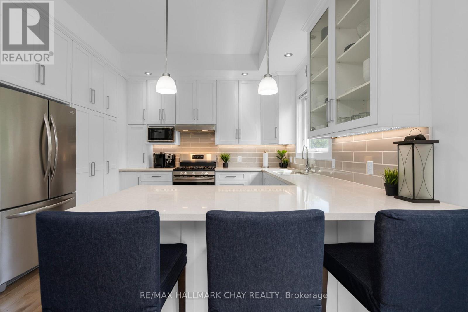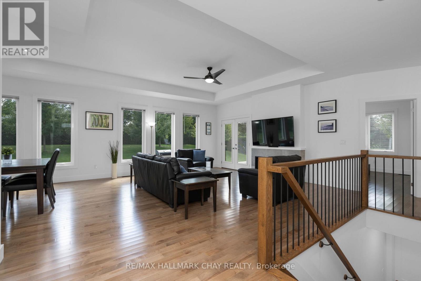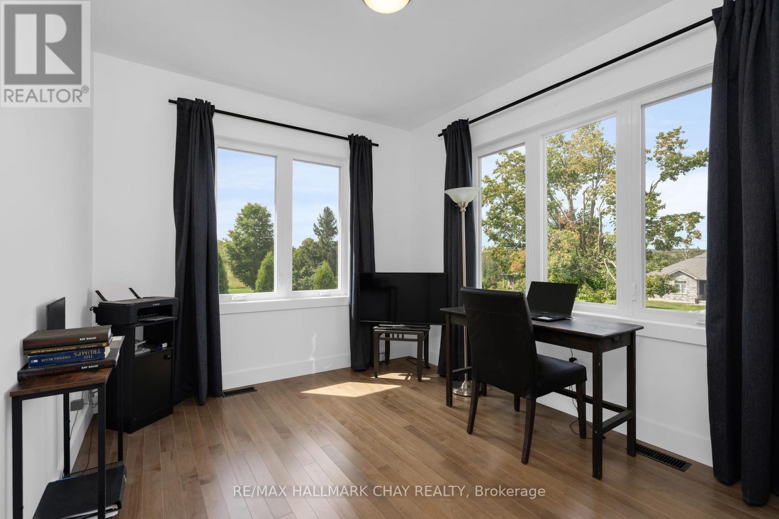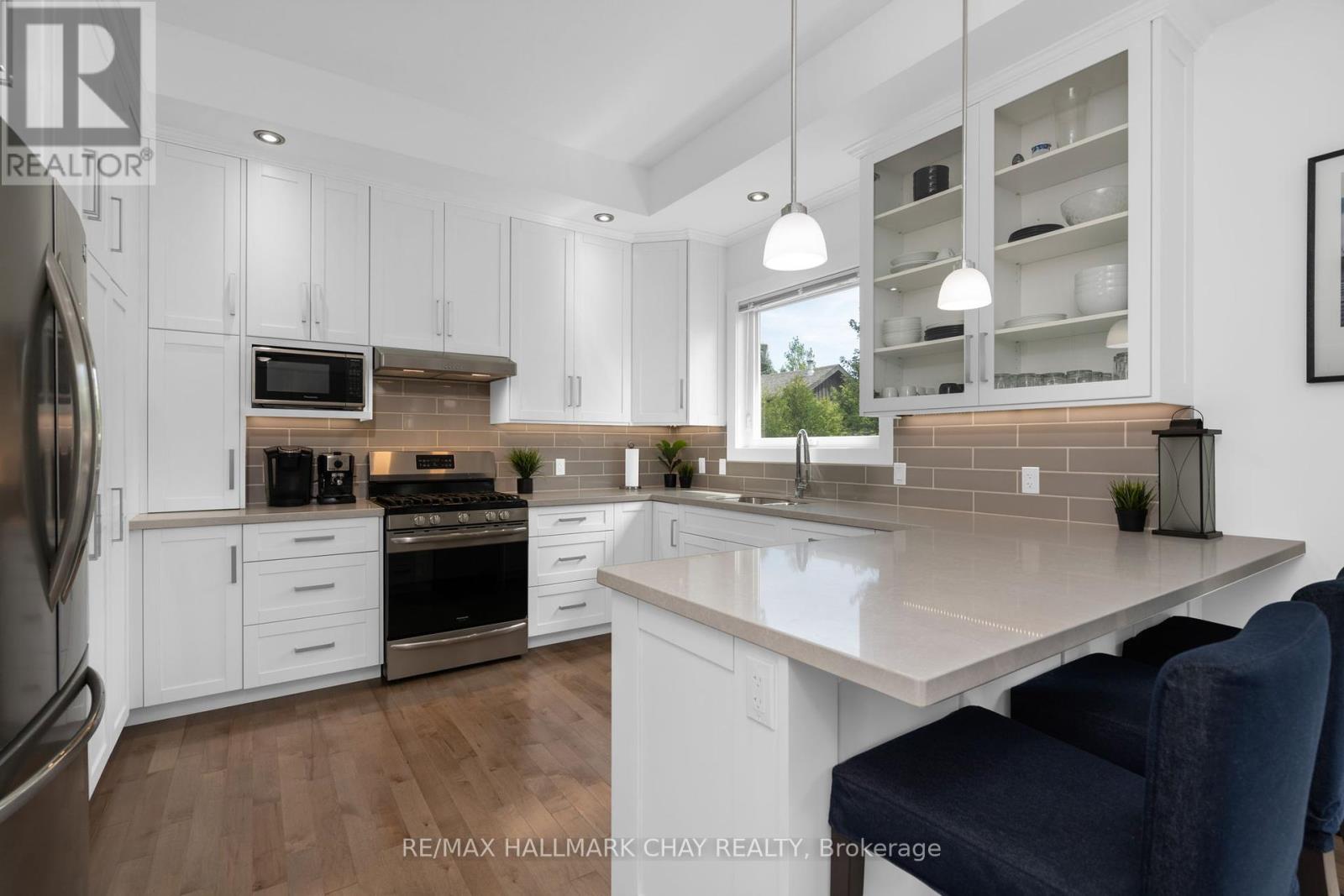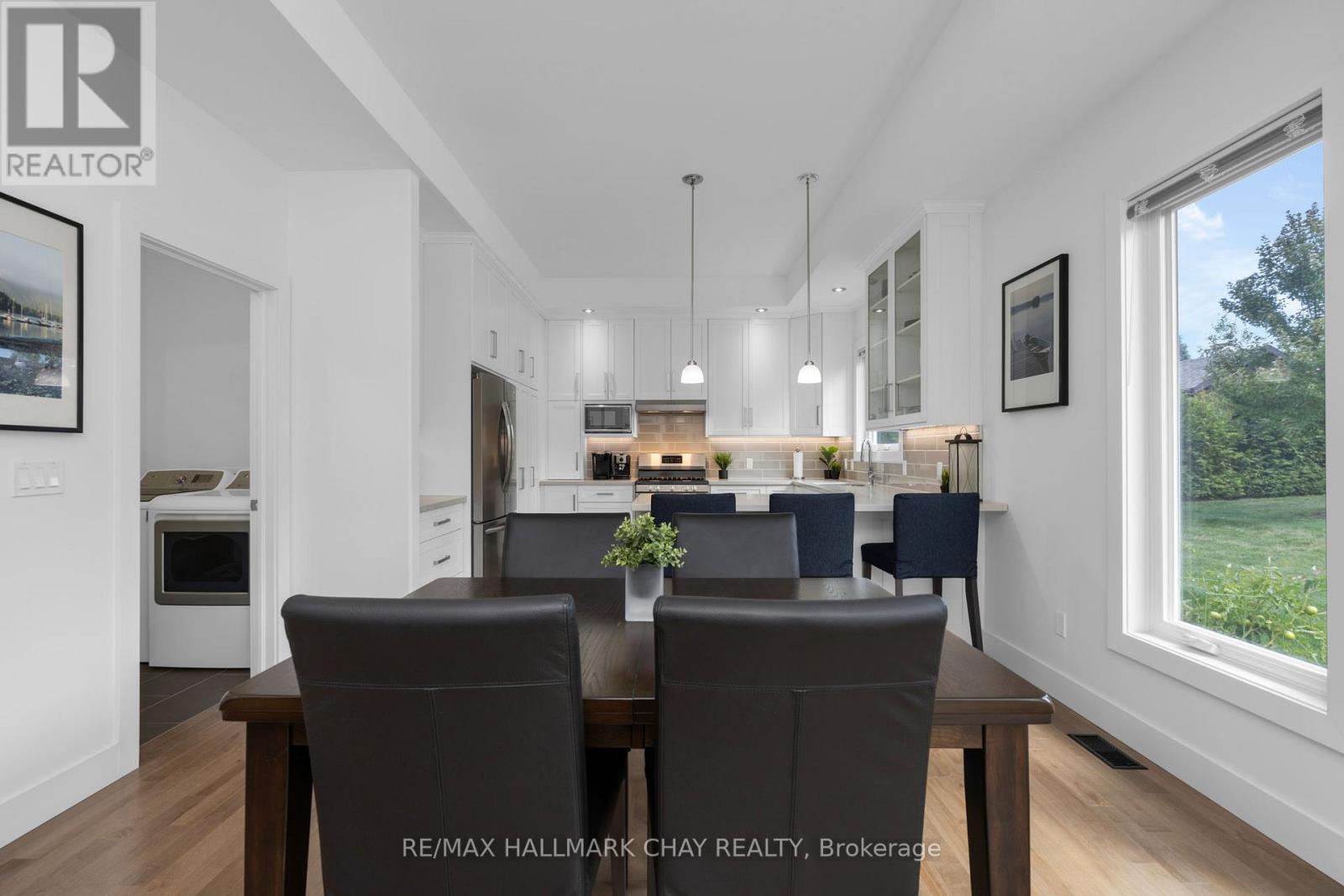 Elegance meets nature with this custom-built Bungalow in the heart of Oro-Medonte. A beautifully landscaped 109 ft x 198 ft lot with stunning views of surrounding forest and EP land! The main floor is an entertainers dream with open concept, expansive windows that embrace sunlight from east to west, 10-foot tray ceilings, pot lights and hardwood floors throughout. Chefs kitchen offers plenty of prep space on the quartz counters, custom cabinetry and high-end SS appliances. Walkout to the fully covered 150 Sq Ft deck with extension overlooking the large treed back yard that provides plenty of privacy. Three Large bedrooms and two full bathrooms, primary with large walk-in closet and spacious ensuite. Convenient Main floor laundry and Inside access to fully insulated oversized garage. Large, paved driveway parks 8+ vehicles. Premium end lot in East Oro development with no homes to the West, built in 2018. A/C plus Heat Pump, 200 Amp service... Steps to school, close to skiing, golfing, boating, beach, hiking, trails, shopping, quick highway access for commuters... Don't miss out! (id:51158)