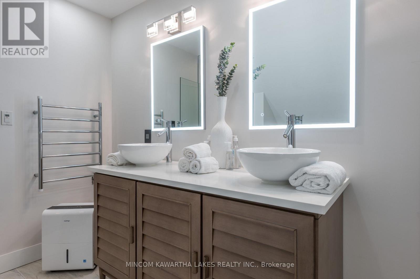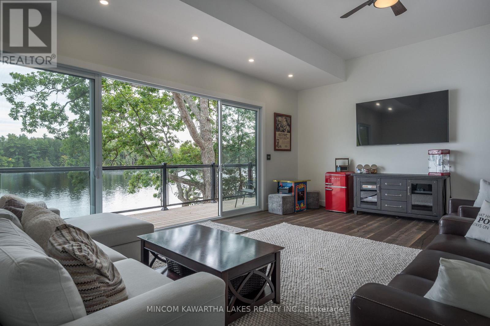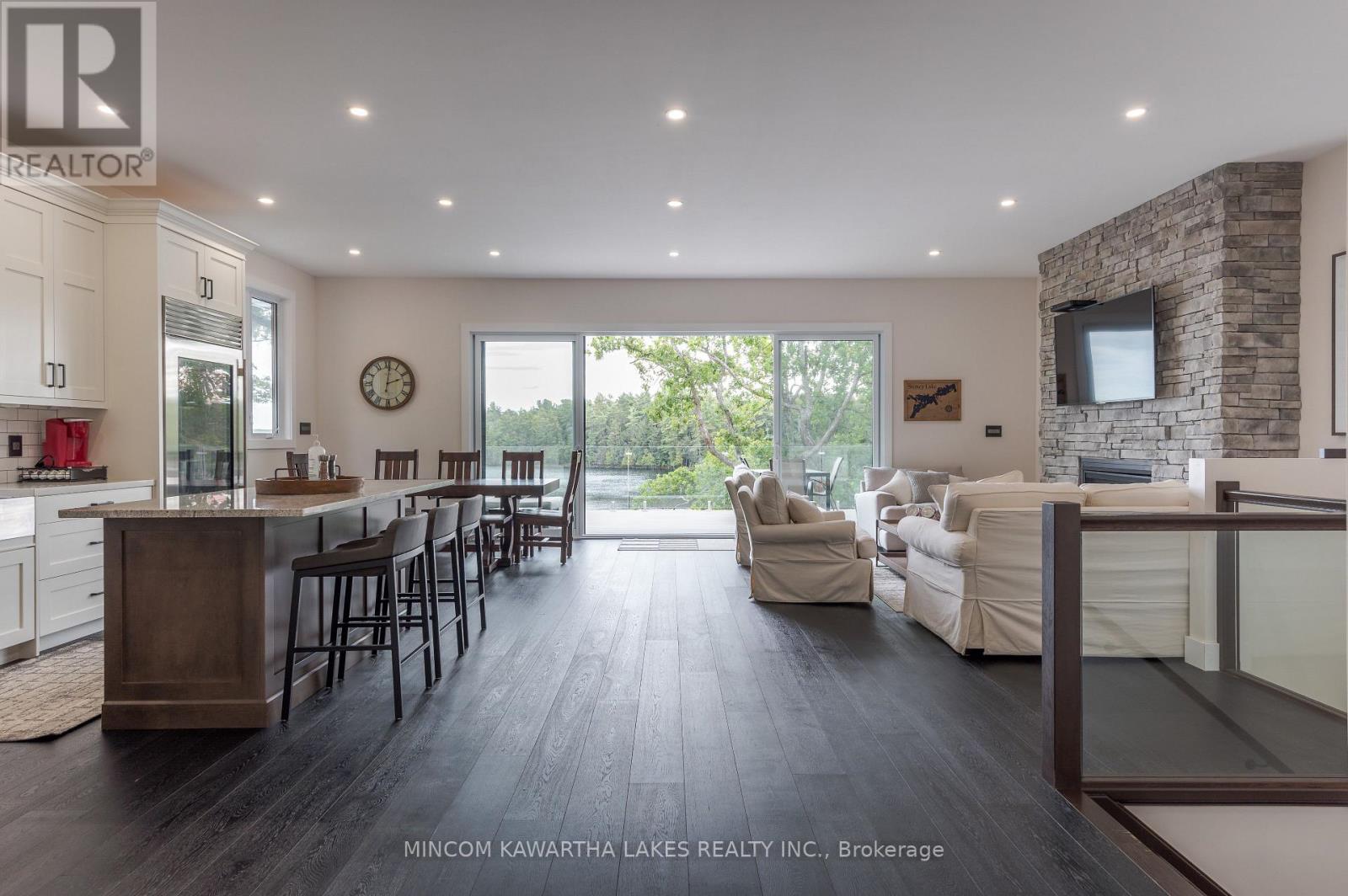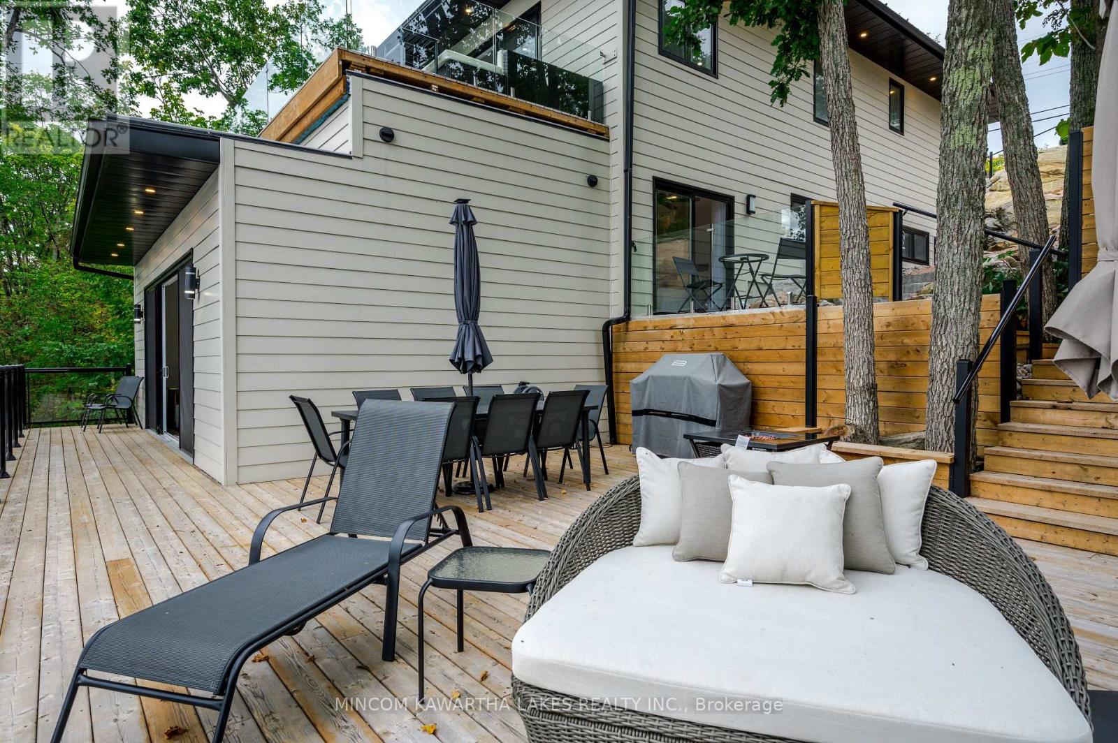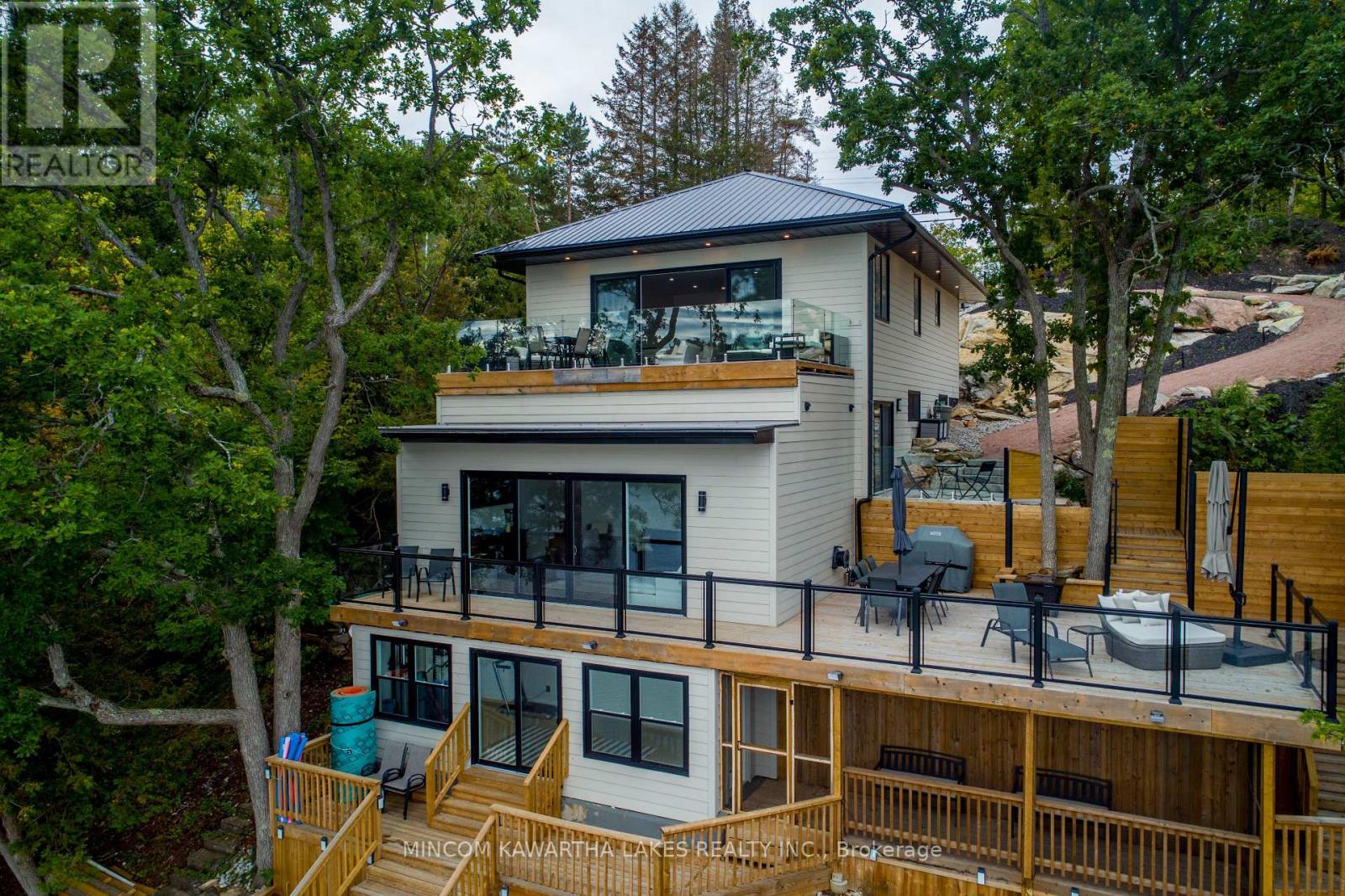 Gorgeous, Newly renovated, year-round turnkey multi-level property on prestigious Stoney Lake with spectacular views. Upper level: open concept, incl. bedroom, office, 3-pc bath, high-end kitchen with Subzero Wolf & Miele appliances & sitting area with a propane fireplace. 16-ft patio doors to top deck with composite Azek decking & frameless glass railing for un-obstructed views. 2nd level has 4 bedrooms including primary suite with a 3-pc ensuite, rain shower, heated floors and private walkout patio with a Bay view. 2nd floor also has 3-pc bath with rain shower, body sprays, shower bench, double sinks, heated floors, heated towel bar, laundry, remaining 3 bedrooms and Craft engineered white oak floor throughout. 3rd level: rec room & game room, 12-ft ceilings and another 16-foot patio door. 4th level: workout room, stamped concrete floors, access to screened-in porch & stairs to docks. 14' clean, deep water for swimming. (id:51158)