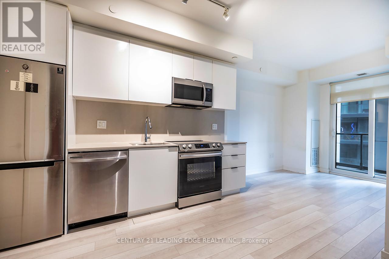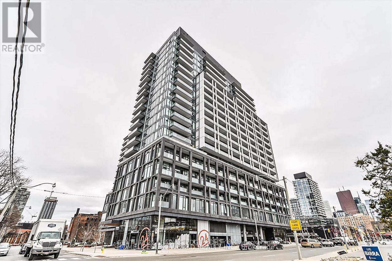 Home on Power is located in the trendy East Side of Toronto in the middle of several amenities & across a park. offers a spacious 1+1 bed layout with floor to ceiling windows, beautiful laminate flooring, great kitchen with stainless steel appliances - quality countertops - . The living room has a walk-out to balcony with south facing views, the den is the perfect cozy retreat & the spacious bedroom with large windows & a walk-in closet. 9Ft Ceilings throughout a bright & airy living space. End Amenities Include 24Hr Concierge, Gym, Outdoor Pool, Rooftop Deck, Party Room & More! Close to shops, restaurants, distillery district, steps to TTC, minutes to downtown core & financial district. (id:51158)