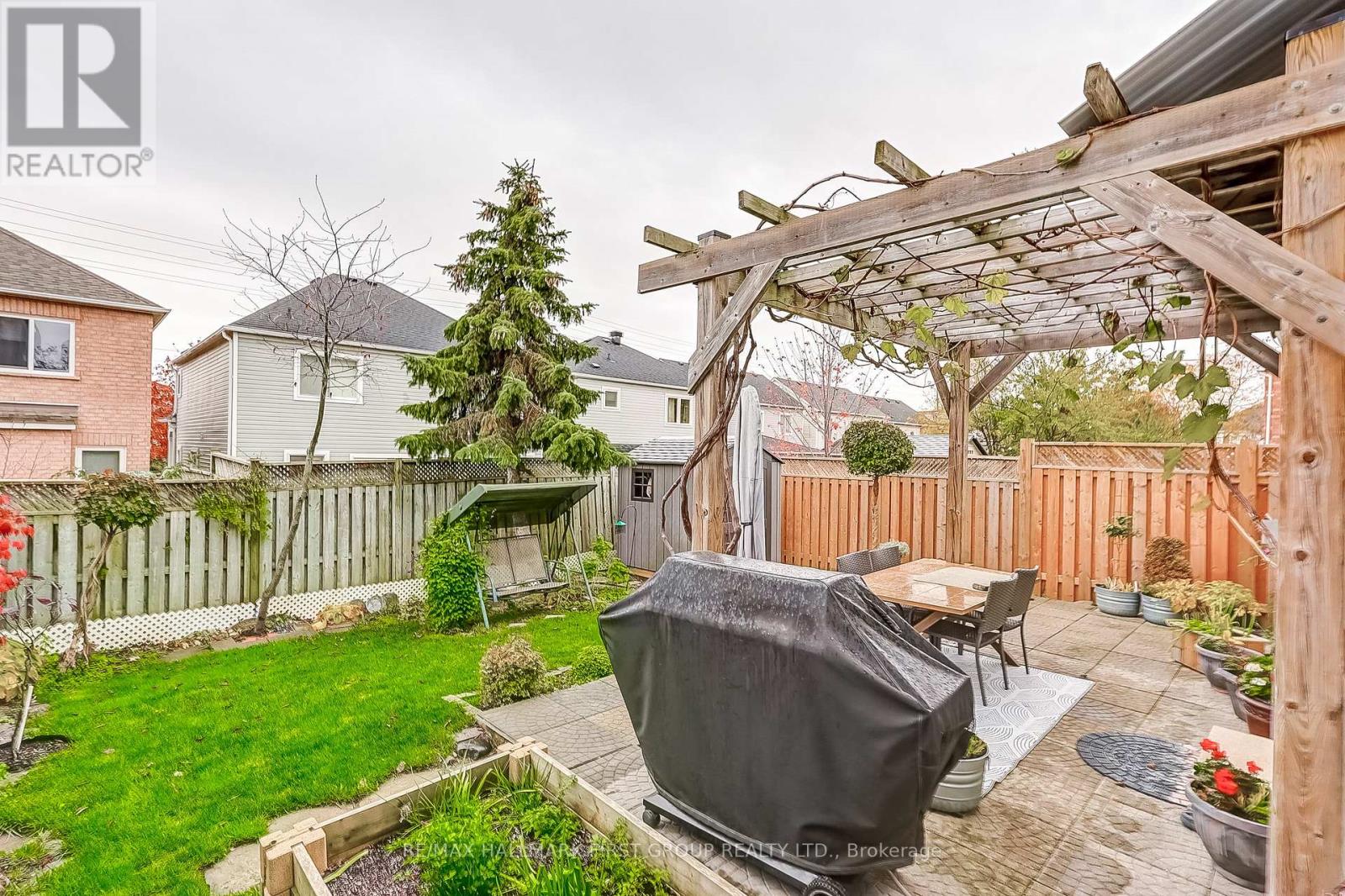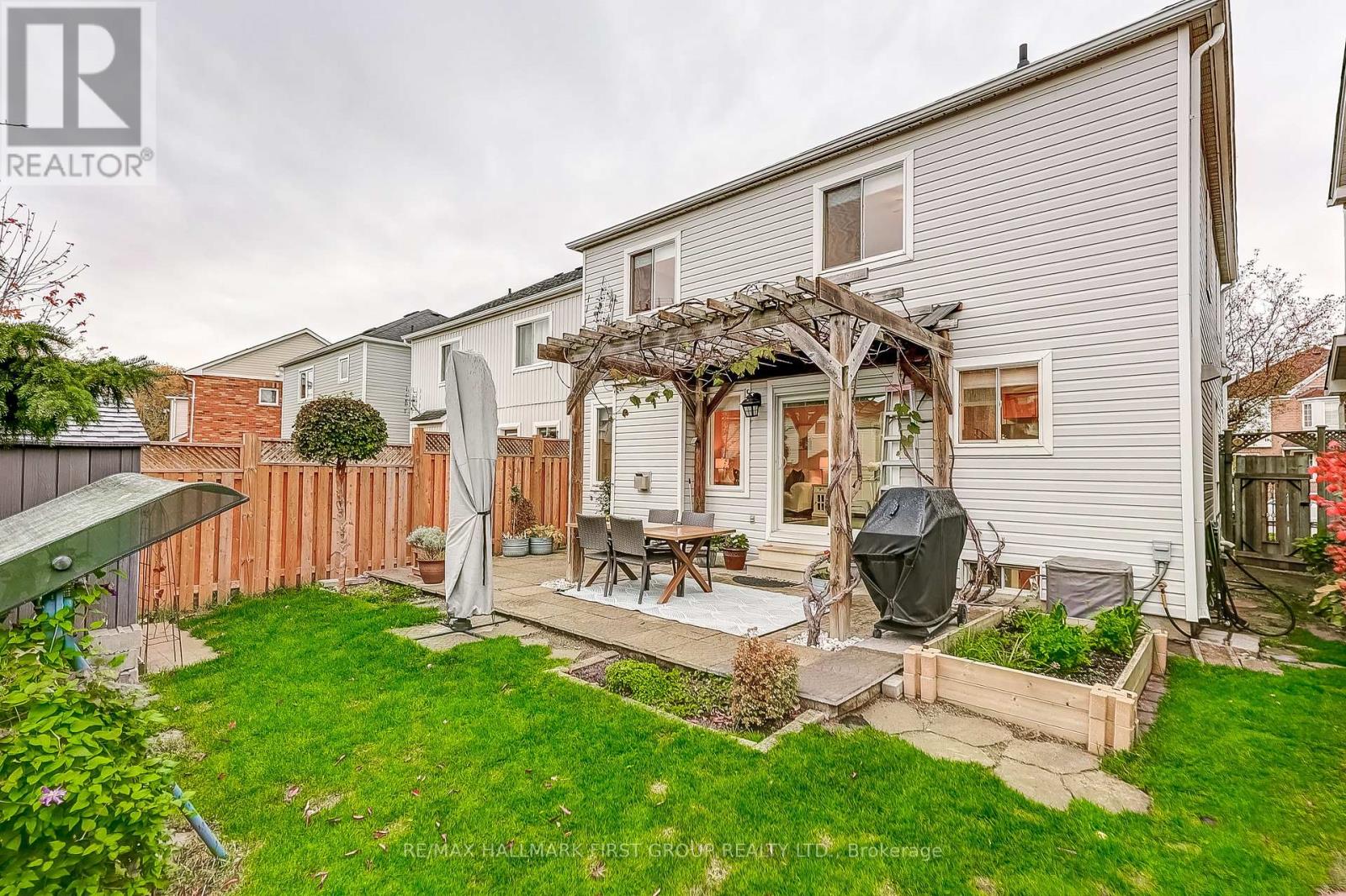 Step inside to a warm, carpet-free home featuring an open-concept kitchen and family room filled with natural light. The sunny kitchen offers stainless-steel appliances, a 2025 quartz countertop, and a breakfast area with walkout to the private backyard patio - perfect for summer dining. The adjoining family room's gas fireplace creates a cozy gathering space, while the separate living and dining rooms offer flexibility for entertaining. Upstairs, four spacious bedrooms include a primary retreat with walk-in closet and ensuite. Additional bedrooms feature double closets and 1 even offers a walkout to a private deck - ideal for relaxing or morning coffee. Freshly painted throughout (2025) and featuring updated toilets and shower door (2024), this home reflects true pride of ownership. Enjoy the fenced backyard with patio arbour, grapevines, vegetable and herb gardens, and a natural-gas BBQ hookup - a tranquil retreat for family and pets. Located minutes from Delpark Homes Centre with pools, ice rinks, library, and farmers' market; Cineplex theatres; Harmony Valley Dog Park; extensive trails; and top-rated schools, colleges, and Ontario Tech University. Commuters will love easy access to Hwy 407, 401 and 35/115. Additional features include central vac, garden shed, attached single car garage and the full unfinished basement offers excellent storage or customization potential for future recreation space, or home gym . A wonderful place to call home - move-in ready and perfectly located in one of Oshawa's most vibrant family neighbourhoods! (id:51158)