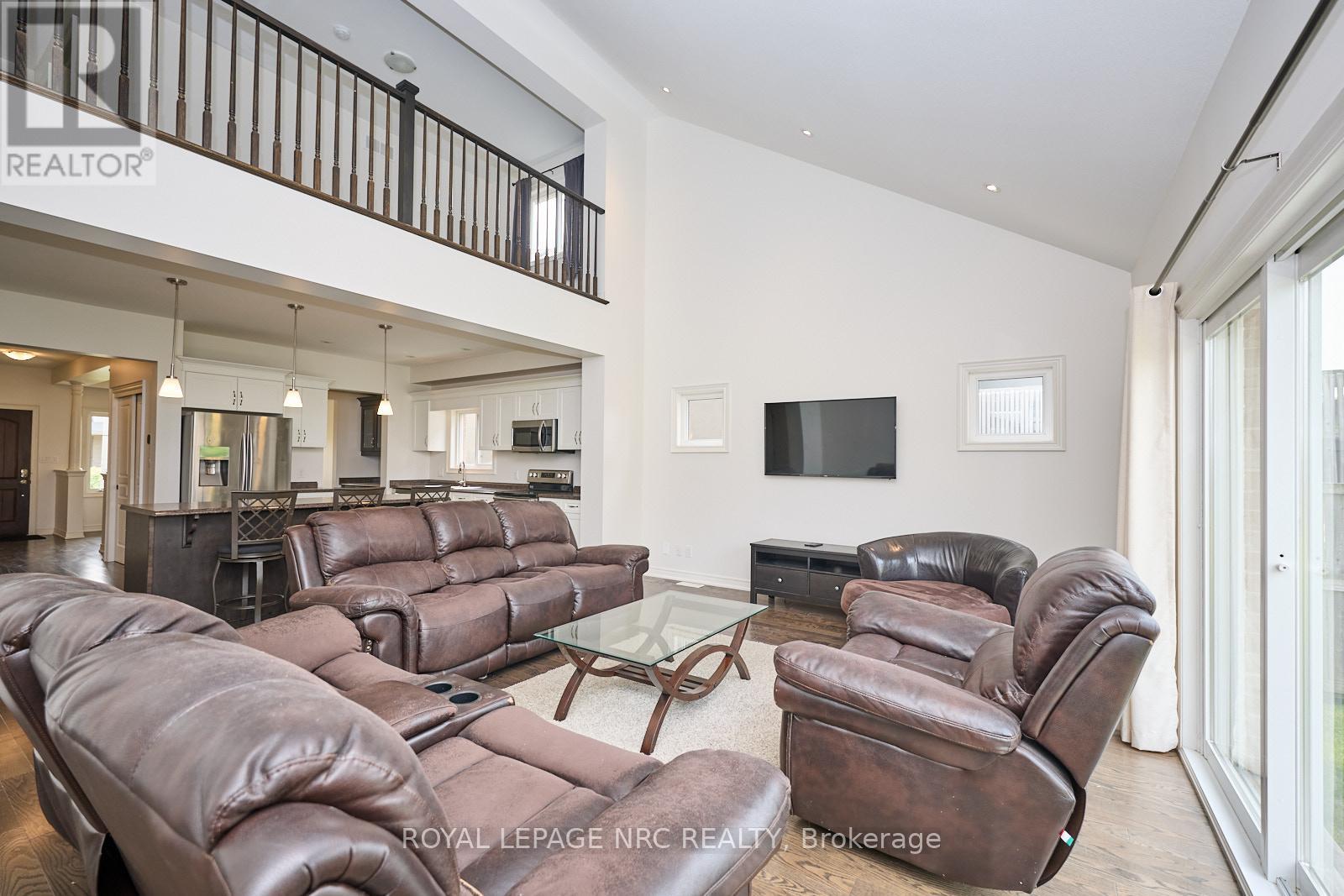 MLS# X12196924 – FOR SALE : 143 Tuliptree Road 558 – Confederation Heights Thorold – 5 Beds, 4 Baths Detached House ** Welcome to 143 Tuliptree Road! This attractive two-storey home boasts a double attached garage and a generous driveway, offering four parking spots in total. Lets explore! As we step inside, we see the formal dining room to the left; a perfect spot to host dinner parties and enjoy time with family and friends. The kitchen features a large island with seating, stainless steel appliances, and a pantry for extra storage. From the kitchen, we step into the living room, where 9 foot ceilings and large windows create an airy, welcoming space. Double doors lead to the spacious backyard, ideal for outdoor gatherings. NO REAR NEIGHBOURS!! A wonderful bonus of this home is the main-floor primary bedroom, large and bright, complete with a 4-piece ensuite for added comfort and what a convenience! You will also find a 2-piece powder room on this level for guests. Lets head upstairs! At the top, a generous loft/landing awaits you. This level features two good-sized bedrooms, one of which offers ensuite privilege to the 4-piece bathroom that serves the upper level. Please notice the attractive engineered hardwood flooring on the. main floor and second level! Lets head down to the basement; a fully finished space with so much to offer. Here, you will find two more good-sized bedrooms, a home office, a second kitchen, a storage room, a utility room, and a spacious recreation room, perfect for family fun or relaxation. The basement flooring consists of high quality vinyl. The entire house has been repainted, with the exception of the primary bedroom. This home is ideal for multi-generational living! Located close to Brock University with quick and easy highway access, its a fantastic choice for a family home, a commuter’s home, or an investment property. (id:51158) ** 143 Tuliptree Road 558 – Confederation Heights Thorold **