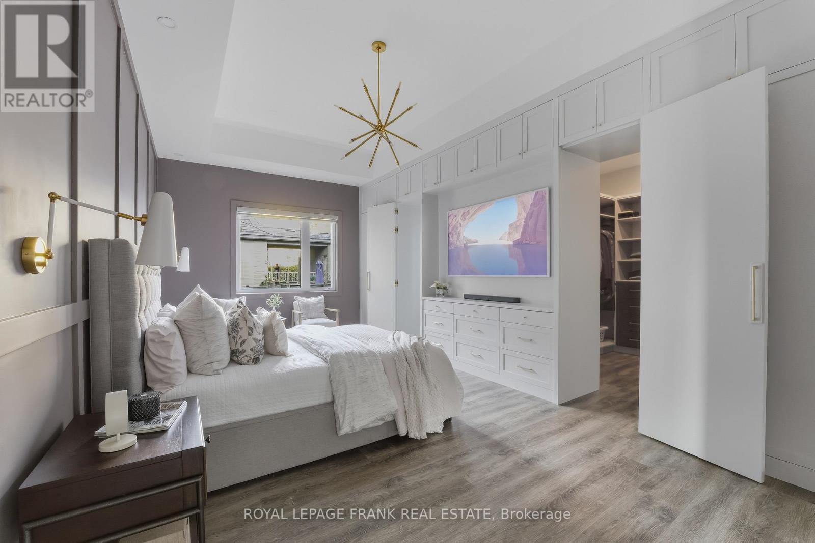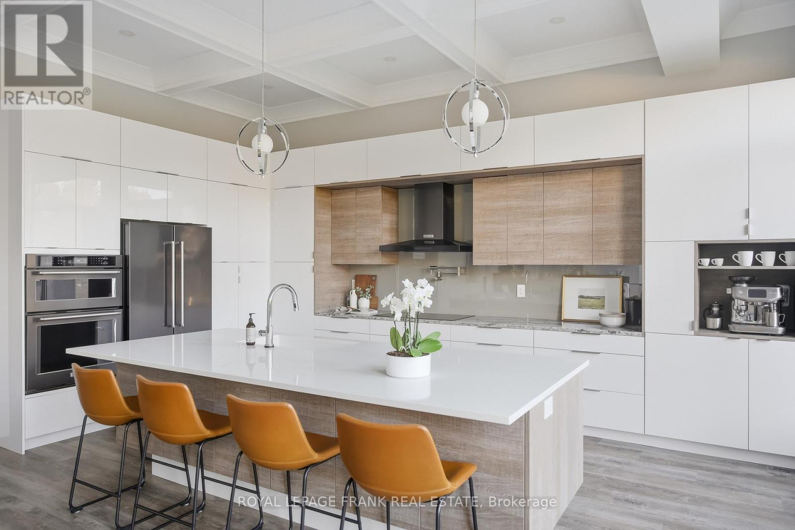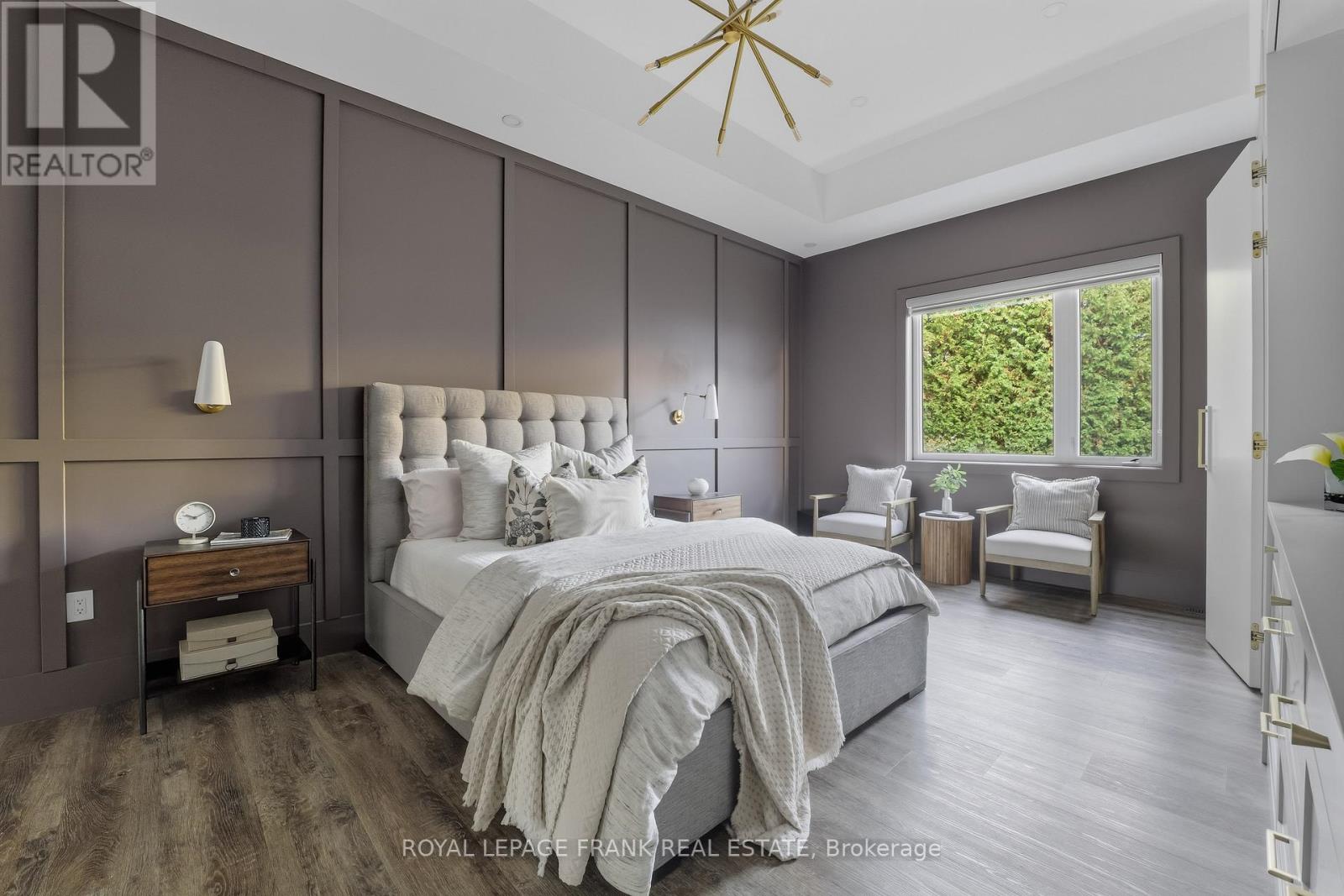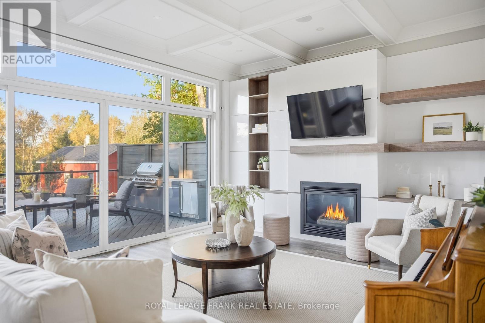 Welcome to an extraordinary custom-built estate offering over 4,000 square feet of luxurious living space on a meticulously landscaped 1.35-acre lot. Originally built in 2018 and enhanced with hundreds of thousands in recent high-end renovations, this home is a flawless blend of sophistication, comfort, and modern design. From the moment you arrive, you'll be captivated by the grand covered porch, new fluted glass entryway, and stunning curb appeal. Inside, soaring vaulted and coffered ceilings, detailed crown moulding, and expansive floor-to-ceiling windows fill the home with light and elegance. The main floor showcases a modern luxury kitchen complete with a massive center island, wall oven, cooktop, pot filler, and coffee bar, all overlooking the serene, private backyard and greenspace beyond. The open-concept living area features a gas fireplace surrounded by custom built-ins and integrated speakers, perfect for entertaining or relaxing. Two main-floor primary sites each offer walk-in closets and spa-like en-suites, with the main primary featuring built-in cabinetry, a lavish dressing room, and a magazine-worthy 5-piece ensuite with heated floors and a built-in speaker system. The windows, a four-piece bathroom with heated floors, a theatre room with surround sound and entertainment zones with beautifully landscaped patio featuring a built-in gas fireplace and heated spa pool with waterfall, a putting green, and a grass area enclosed by a high-quality vinyl fence (+/-$70K). Beyond the fenced area is an extra-wide green space with forest. Additional highlights include a luxury laundry/mudroom with quartz counters and custom cabinetry, indoor/outdoor speakers, 200-amp electrical, HRV humidifier, security system with cameras, and a tankless water heater. Conveniently located near all amenities and highways with easy access to Toronto and the airport, this exceptional property offers the perfect balance of luxury, privacy, and convenience. (id:51158)