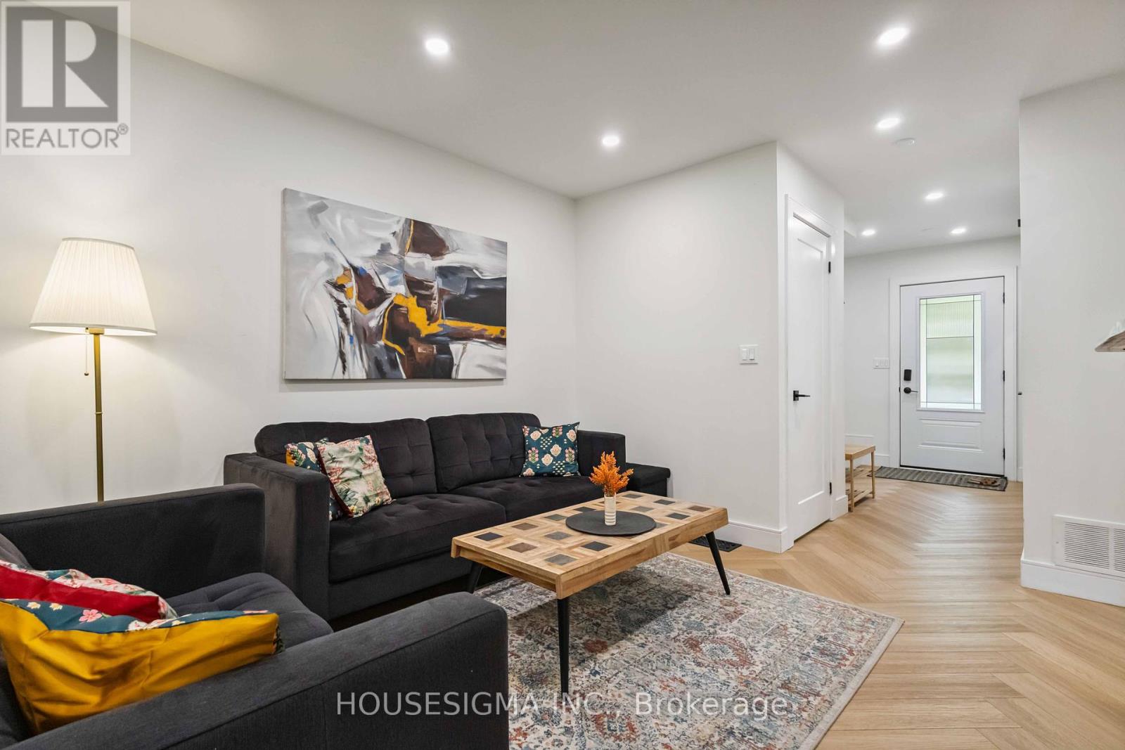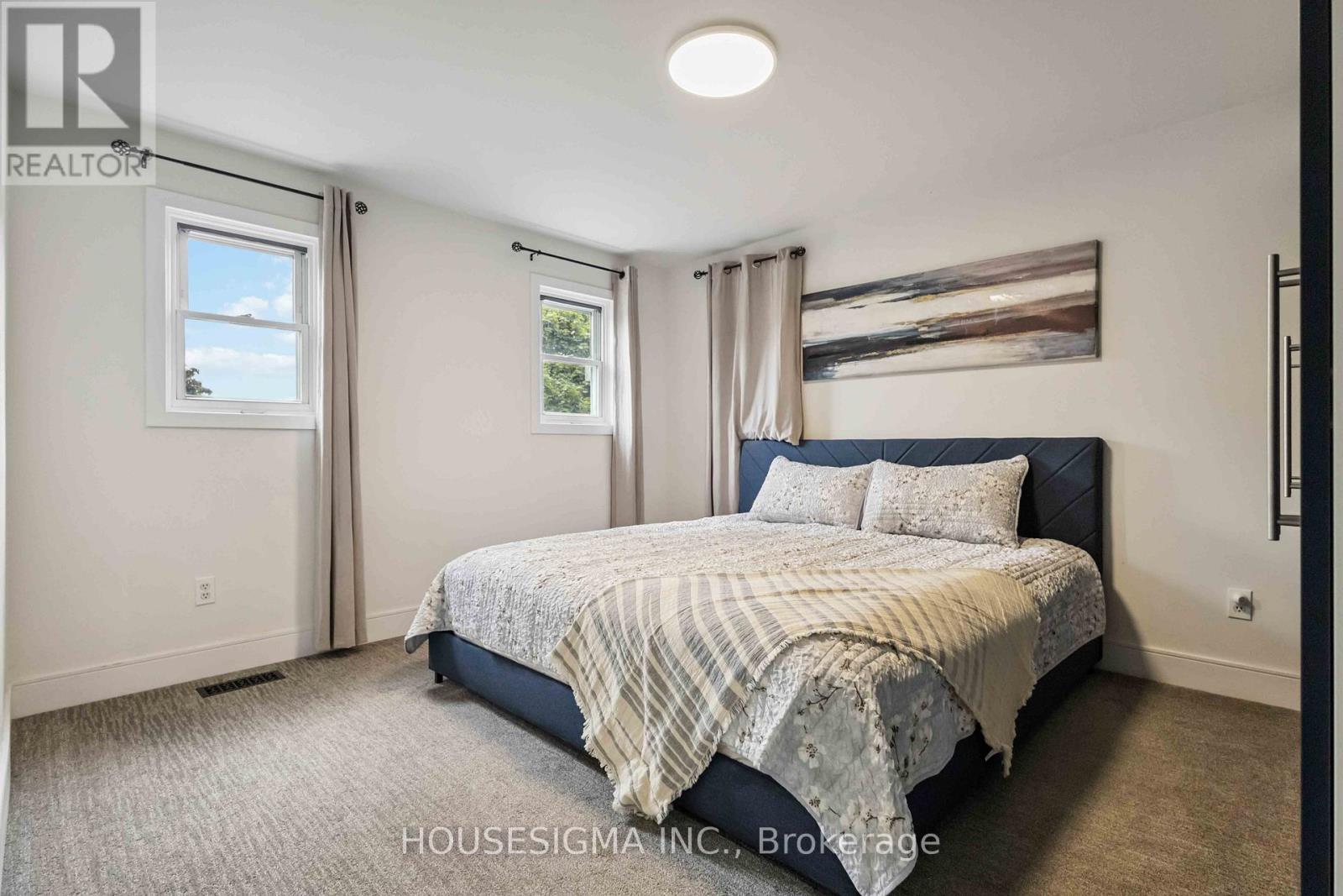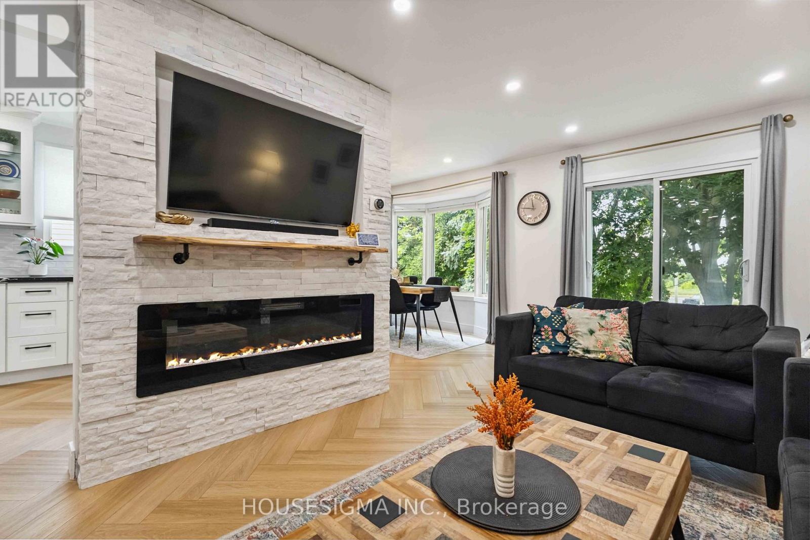 Stunning, 2021 renovated 3-bedroom, 4-bathroom detached home in one of North Oshawa's most sought-after mature neighbourhoods. Situated on a premium lot with no front or rear neighbours, this home backs onto Ritson Fields, a sprawling, city-maintained open space perfect for family play, walking trails, and community recreation. Step inside to discover a completely modernized interior featuring: Custom-designed solid maple kitchen with solid plywood shelving premium quartz countertops, upgraded gas stove, soft-close hardware, crown moulding, and built-in features like dual lazy Susans, spice rack, tip-out trays, and custom pantry All bathrooms fully renovated, including a master ensuite with glass-enclosed shower and elegant tile work Premium flooring installed in an elegant herringbone pattern on the main floor Smooth ceilings throughout the house Upgraded LED pot lighting, and designer accents throughout main floor, including a stained wood wall in dining and a natural stone fireplace wall with built-in 60" electric fireplace in living room Refinished oak staircase, new patterned carpets upstairs, and custom walk-in closet in primary bedroom Finished walkout basement with separate entry, full bathroom, and in-law suite potential Major upgrades include: New ductwork, Lenox furnace & AC (2021) New widened entry door, insulated garage door, and patio door (2021) Widened 4-car driveway (2024) + interlocked front porch (2023) Finished basement with vinyl plank flooring, tiled laundry, pot lights, and flat ceilings Located minutes from top-rated schools, shopping, transit, and major amenities. Truly turnkey, no expense spared. Just move in and enjoy modern living in a family-friendly community. (id:51158)
