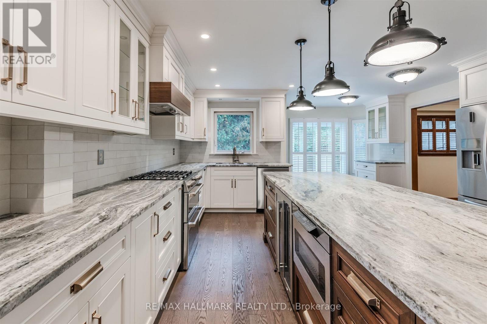 Exceptional Value in Prestigious South Richvale! Welcome to 145 Old Surrey Lane, a beautifully maintained all-brick home nestled beside parkland in one of Richmond Hill's most desirable neighbourhoods. This sun-filled home offers 4 generously sized bedrooms, including a primary suite with a 4-piece ensuite, a newly updated kitchen with granite countertops, stainless-steel appliances and stunning center island, and an inviting step-down living and dining area filled with natural light-ideal for hosting and everyday comfort. The fully finished basement features a separate walk-up entrance, providing excellent potential for an in-law suite, while the backyard oasis with its stone patio is perfect for entertaining, relaxing, and creating cherished memories with family and friends. You'll find thoughtful touches throughout, including California shutters, granite countertops in bathrooms, ample storage space, a two-car garage with inside entry, a new central a/c unit (2025), owned water heater (2024), and a roof with a transferable lifetime warranty. Located just minutes from the Richmond Hill Country Club, major highways (407, 404), shopping, great schools (including Charles Howitt P.S.), and wooded trails (South Richvale Greenway), this lovingly cared for home has been treasured by the same family for over 33 years. Don't miss this one, check out the virtual tour! (id:51158)