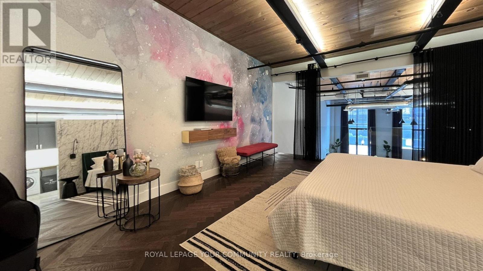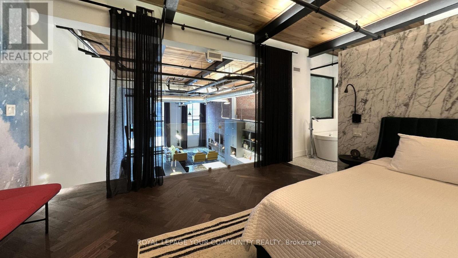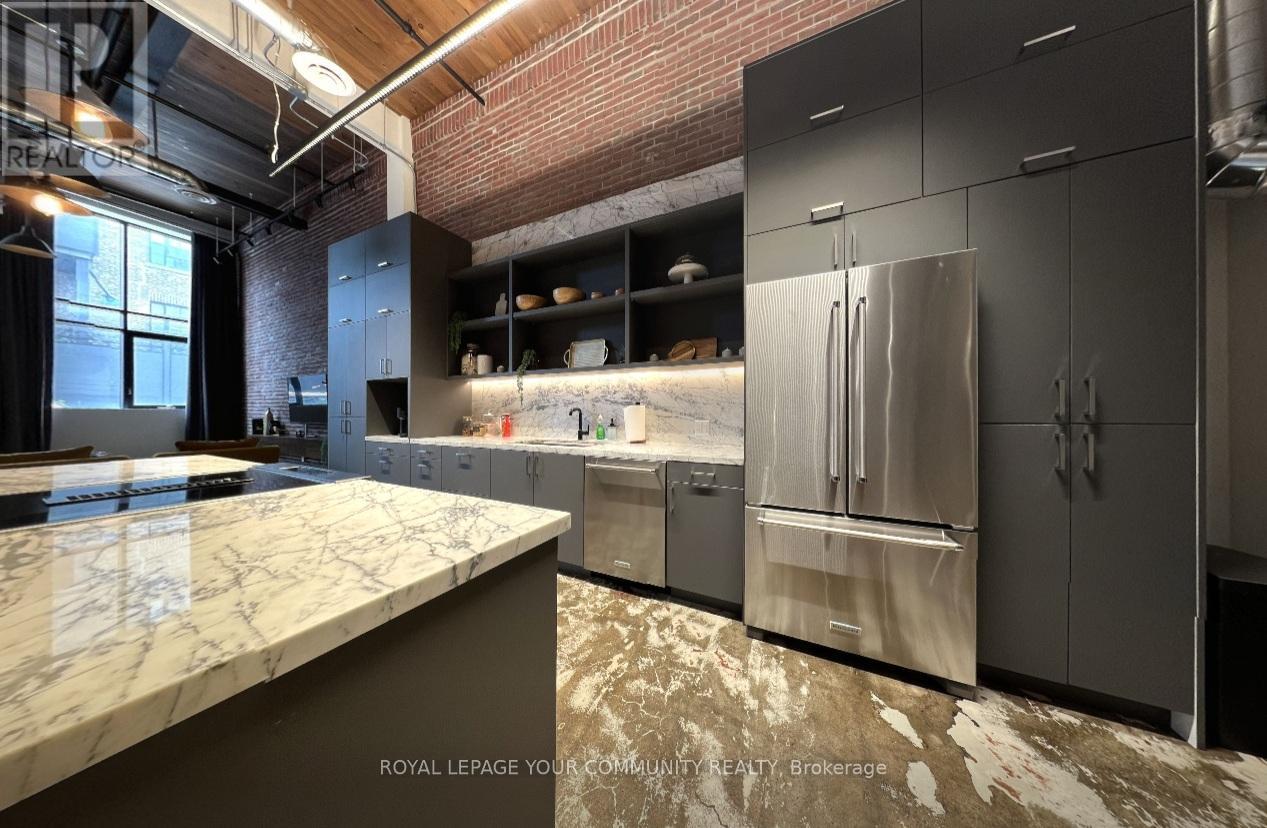 Welcome to i-Zone Live-Work Lofts, one of Toronto's most distinctive and sought-after warehouse conversions, perfectly situated at Dundas Street East and Carlaw Avenue. This rarely available 1-bedroom loft offers the ultimate blend of creative energy, industrial character, and luxurious modern finishes. Soaring 17ft ceilings, oversized windows and high-end fixtures throughout create a perfect balance of sleek sophistication and authentic loft charm. Designed with both style and function in mind, this residence is ideal for anyone seeking a home that reflects their individuality. At i-Zone, lifestyle extends far beyond your front door. Residents enjoy access to a rooftop deck, a party room, meeting room, games room, and secure entry system. The building is also pet-friendly! Living here means immersing yourself in one of Toronto's most dynamic and artistic neighbourhoods. Surrounded by galleries, studios, and creative spaces, you'll be part of a vibrant community that thrives on inspiration. Just steps away, discover trendy cafés, craft breweries, boutique fitness studios, and some of the city's best restaurants in trendy Leslieville and Riverside. Commuters and city explorers alike will love the convenience with a 9/10 Walk and Transit Score and 8/10 Bike Score, you're never far from where you need to be. The DVP, Gardiner, TTC, and downtown core are all within easy reach. If you've been searching for a home that's as unique as you are, this stylish loft at i-Zone delivers an inspiring backdrop for your next chapter. (id:51158)
