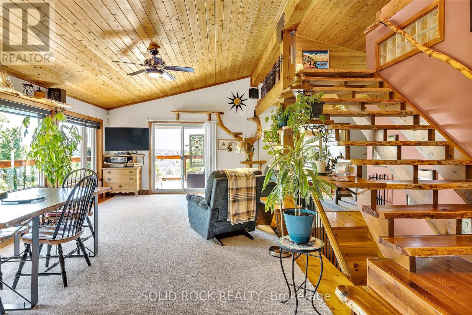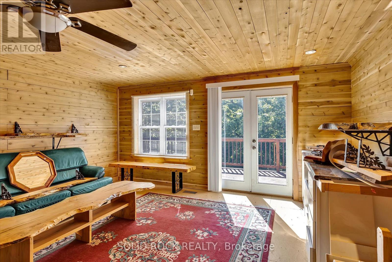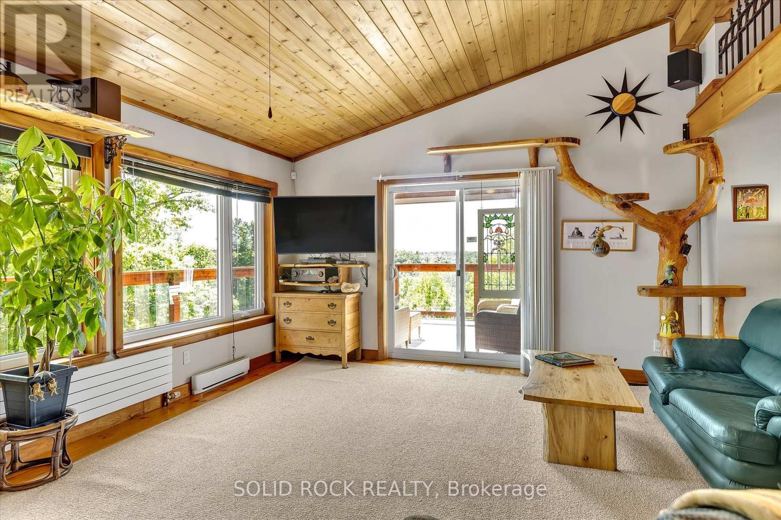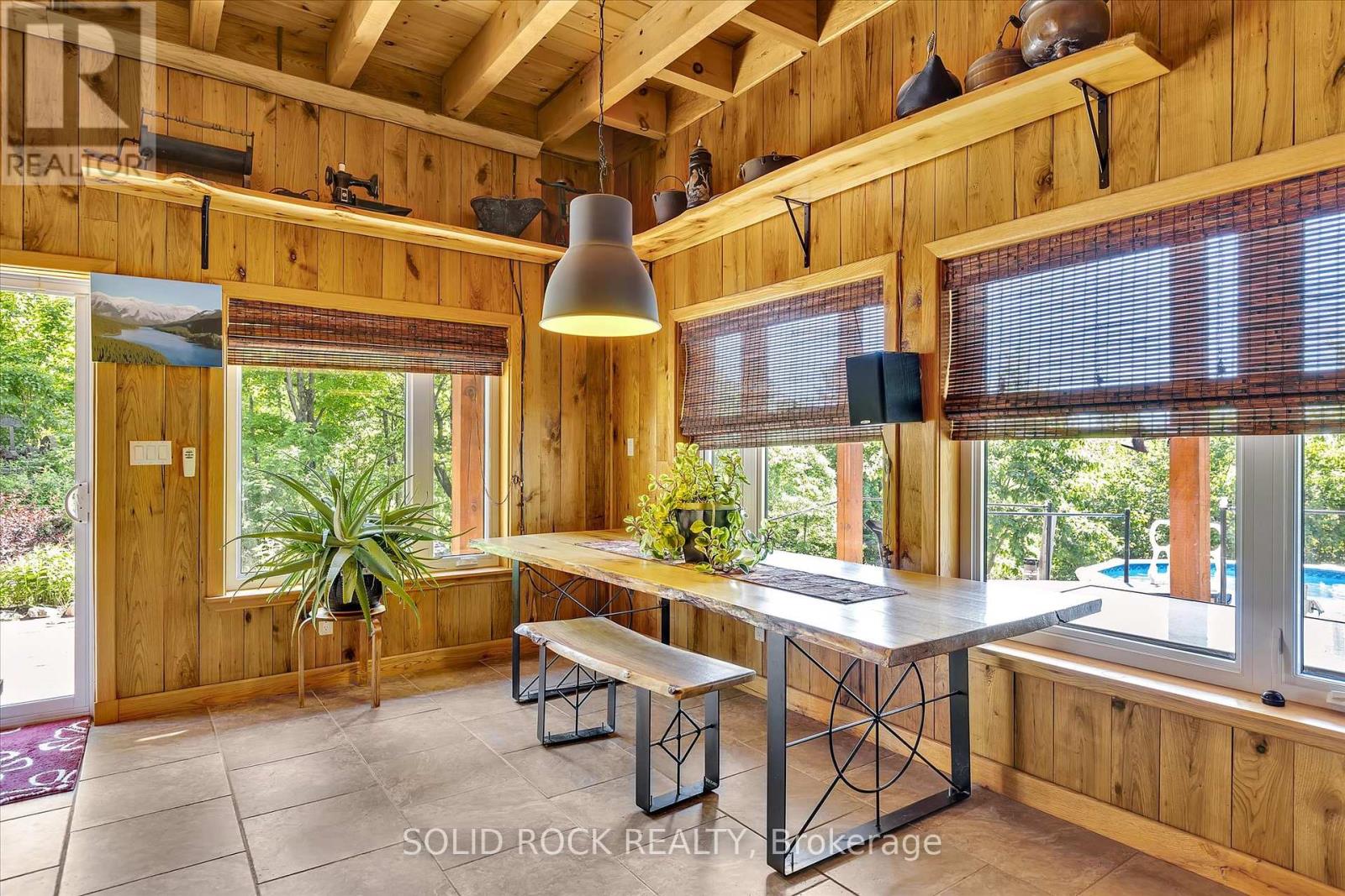 Don't miss this one of a kind (unique) home built in 2012 (10 inches of insulation in the walls). Windows and natural light on both floors. Ground floor is a walkout entirely above grade. Home was built to let the natural light in with overhangs to protect from the hot sun during the summer and to let the warmth in during the winter (passive solar design). The passive solar design allows the heat to shut off in the winter when the natural light flows in. The views (from inside and out on the upper deck) are simply spectactular in all 4 seasons. Upper loft area gives you extra space. Potential for extra bedrooms with spaces such as loft, office, and den downstairs. Extensive landscaping was created using limestone and perennials....go for a walk in your very own park! 10+ acres with privacy plus and only 5 minutes from town! Large two-level finished shop/showroom with a deck on the second level. The possibilities are endless for this shop/showroom for the new owner. Cool off on hot days in the shade with beautiful summer breezes or a dip in the pool. Really lovely neighborhood and minutes away from Mag's Landing (the public boat launch) and Marmora's very own park set out along Crowe River. 35-40 minutes from both Belleville or Peterborough. Marmora and Lake is equal distance between Ottawa and Toronto. Includes a Garden Shed and Large Drive Shed. (id:51158)