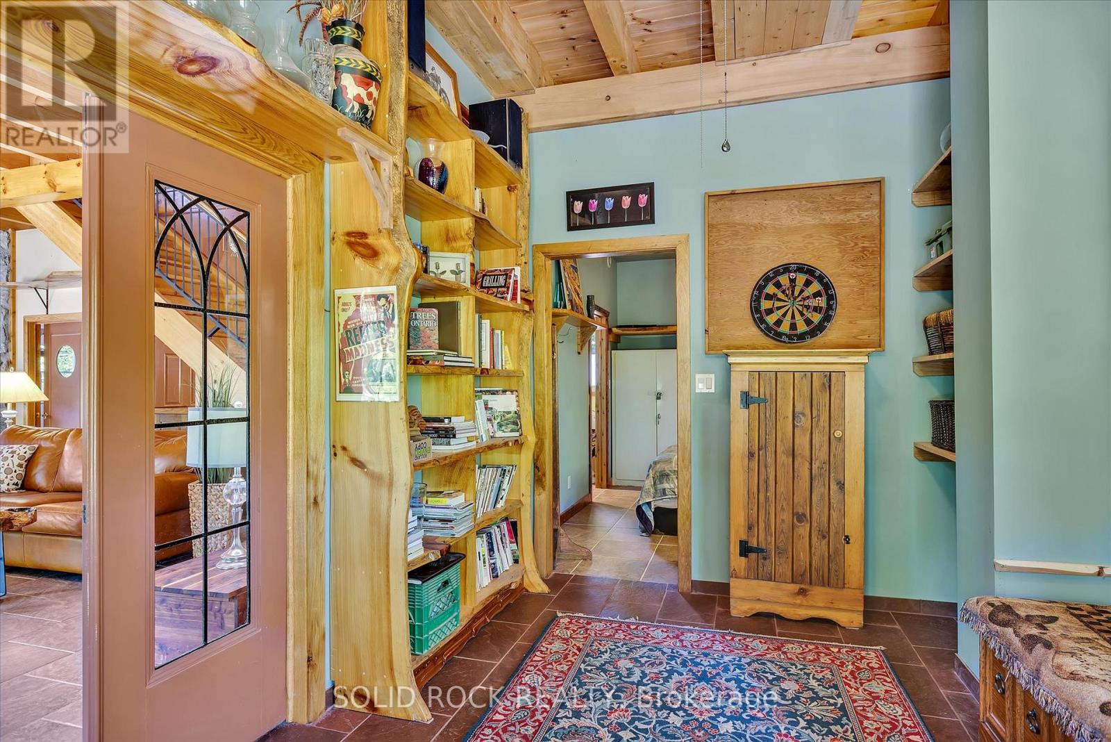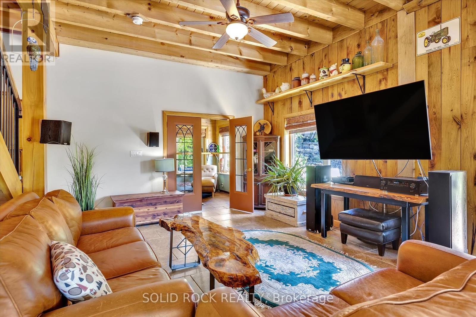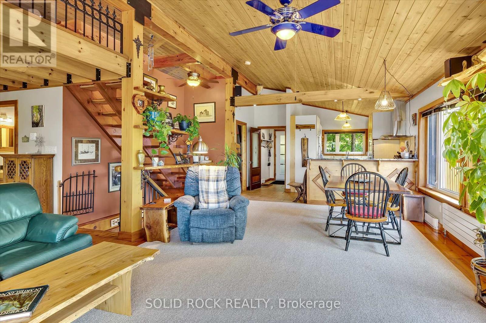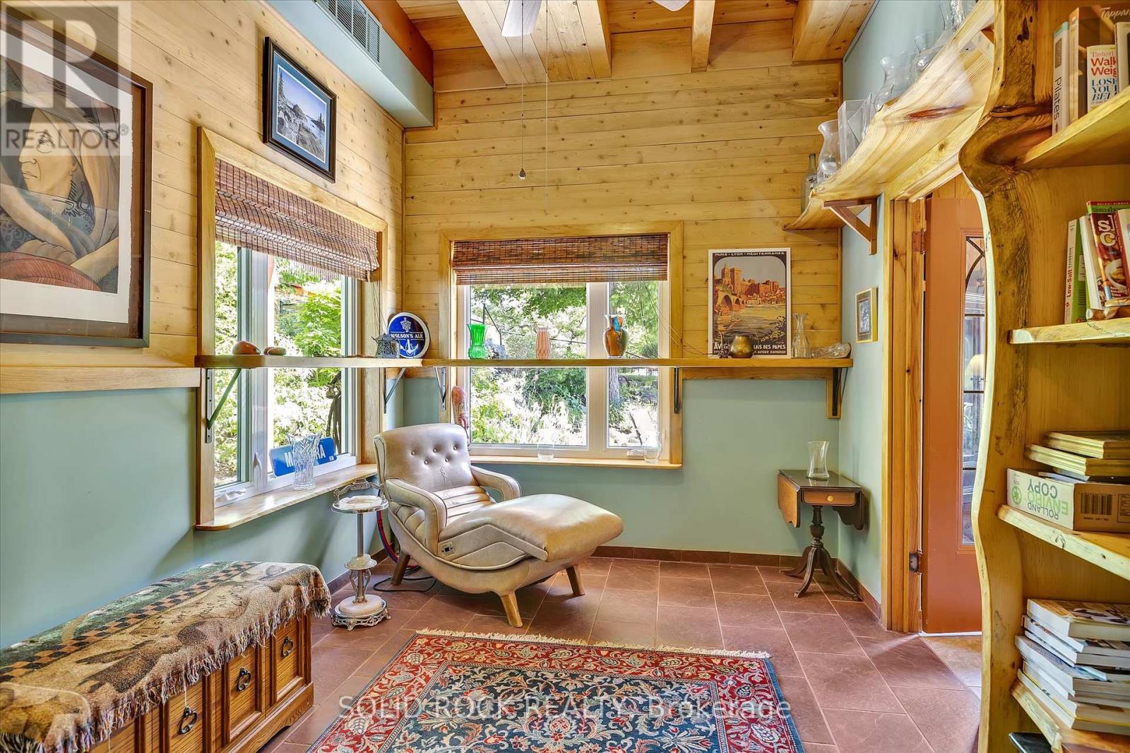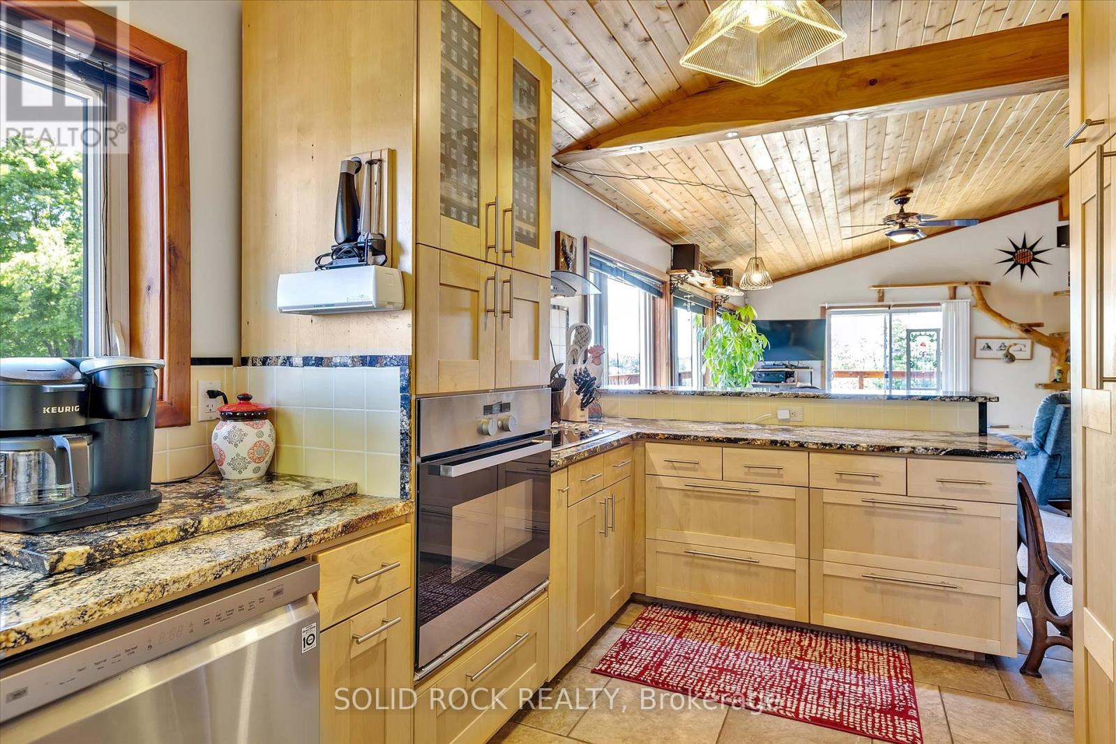 Don't miss this one of a kind (unique) home built in 2012 (10 inches of insulation in the walls). Windows and natural light on both floors. Ground floor is a walkout entirely above grade. Home was built to let the natural light in with overhangs to protect from the hot sun during the summer and to let the warmth in during the winter (passive solar design). The passive solar design allows the heat to shut off in the winter when the natural light flows in. The views (from inside and out on the upper deck) are simply spectactular in all 4 seasons. Upper loft area gives you extra space. Potential for extra bedrooms with spaces such as loft, office, and den downstairs. Extensive landscaping was created using limestone and perennials....go for a walk in your very own park! 10+ acres with privacy plus and only 5 minutes from town! Large two-level finished shop/showroom with a deck on the second level. The possibilities are endless for this shop/showroom for the new owner. Cool off on hot days in the shade with beautiful summer breezes or a dip in the pool. Really lovely neighborhood and minutes away from Mag's Landing (the public boat launch) and Marmora's very own park set out along Crowe River. 35-40 minutes from both Belleville or Peterborough. Marmora and Lake is equal distance between Ottawa and Toronto. Includes a Garden Shed and Large Drive Shed. (id:51158)