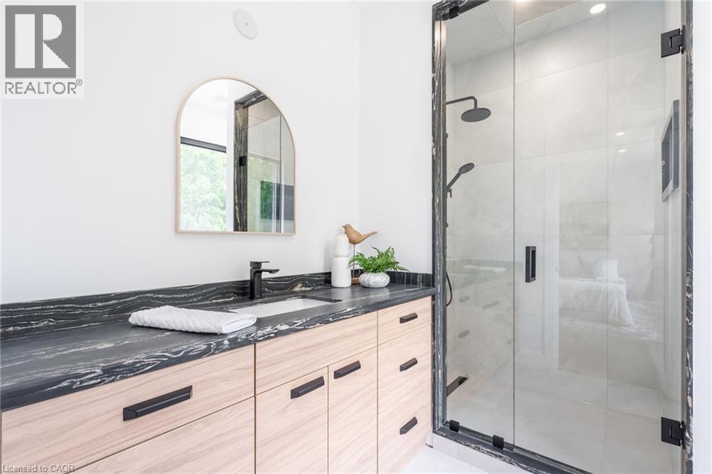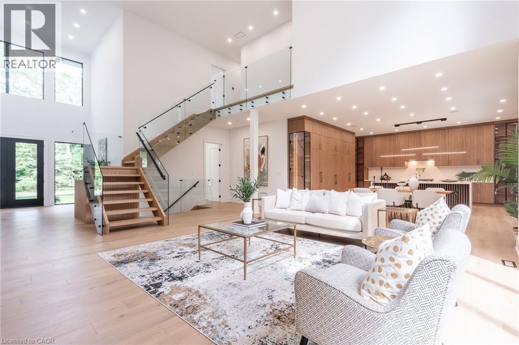 Welcome to this stunning custom-built masterpiece in the prestigious Maple Lane neighbourhood of Ancaster! This luxurious 3,700 square-foot home boasts four spacious bedrooms all with generous walk-in closets, and four elegant baths, offering unparalleled comfort and style. Nestled on an expansive 75’ x 188’ lot, the property is surrounded by mature trees, providing a serene and private oasis. Located just steps away from the renowned Hamilton Golf and Country Club, walking trails and the Ancaster Village, no expense has been spared in the design and finishes of this contemporary haven. The heart of the home is the enormous open-concept kitchen, seamlessly connected to the dining space, family room, and outdoor covered porch with fireplace, perfect for entertaining and family gatherings. The abundance of large windows bathes the interior in natural light, enhancing the bright and airy ambiance. Experience the epitome of luxury living in a lush, mature neighbourhood with this exception al residence. Don’t miss your chance to own a piece of paradise in one of Ancaster’s most sought-after locations! Luxury Certified. (id:51158)