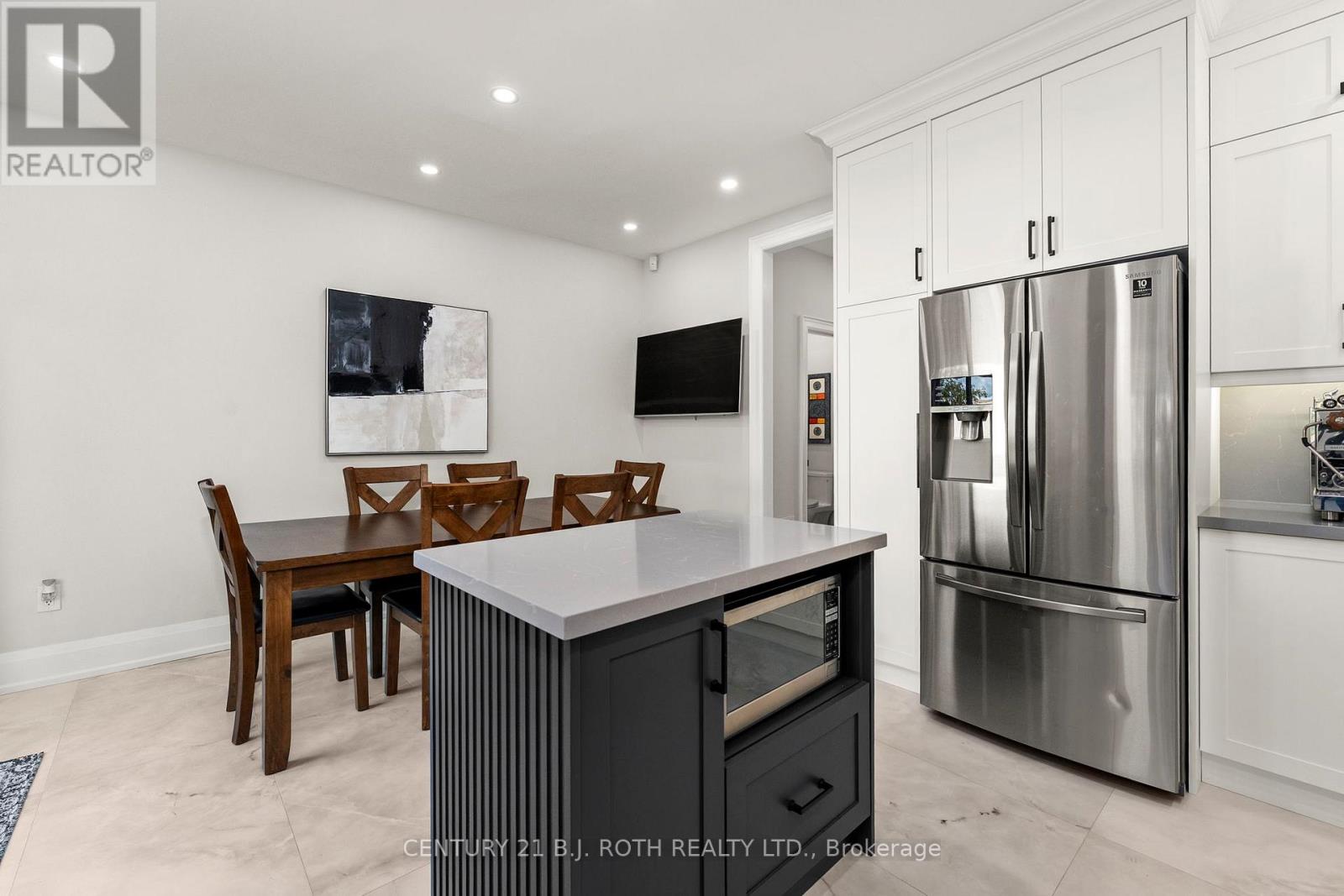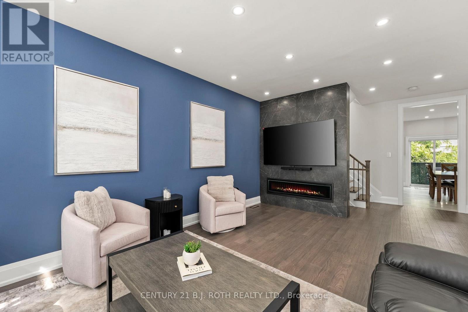 Welcome to 8032 Kipling Ave, Unit 15, an exquisitely renovated semi-detached home offering over 2,000 sq. ft. of beautifully finished living space. Thoughtfully redesigned in 2023, every detail of this 3-bedroom, 4-bathroom residence reflects quality craftsmanship and modern elegance. Step inside to find engineered hardwood flooring paired with hand-selected porcelain tile, all set beneath smooth 9' ceilings with recessed lighting that enhance the bright, airy feel. A striking fireplace feature wall seamlessly wraps around, creating a stunning focal point in the main living area. The chefs kitchen is a true showpiece, featuring extended cabinetry, quartz countertops with a matching backsplash, premium stainless steel appliances, under-cabinet lighting, and a professional gas range, perfect for creating gourmet meals. Upstairs, two spa-inspired bathrooms await, including a luxurious primary suite with custom cabinetry and a spacious walk-in closet. A skylight over the staircase fills the home with natural light, highlighting the elegant design throughout. The finished lower level offers a versatile rec room ideal for a study, home office, or family retreat. Outdoors, enjoy entertaining on the upper deck or unwinding in privacy on the lower deck. If you've been searching for a turnkey home that combines sophisticated style with meticulous upgrades, this is the one to call home. (id:51158)