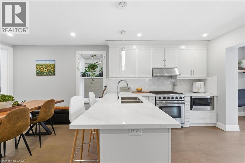 Welcome to the one you've been waiting for—an elegant, detached residence on Century Street in the heart of Hamilton that perfectly balances historic character with modern luxury. This beautifully finished 3-bedroom, 2.5-bath home features new engineered hardwood and abundant pot lights throughout. The show-stopping open-concept kitchen boasts custom cabinetry, quartz counters, stainless steel appliances, and French doors opening to a private rear yard with a new concrete two car driveway. A refinished regal staircase leads to the second floor, offering bedroom-level laundry and a primary suite complete with a walk-in closet and a 4-piece ensuite featuring a 6-foot soaker tub. The finished basement provides excellent bonus space with an additional bathroom. Meticulously updated over the past 5 years—including new A/C, windows, waterproofing, upgraded 3/4in water line, smart lighting, wired security features and exterior finishes—this turn-key home offers total peace of mind. Ideally located near General Hospital, the James Street Art District, and the new GO Station, this property is the perfect blend of style and convenience. Don't miss out! (id:51158)
