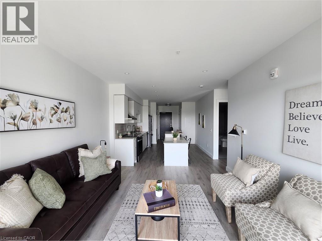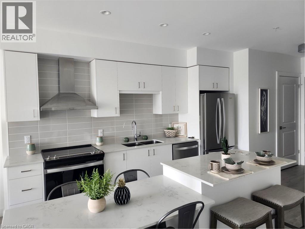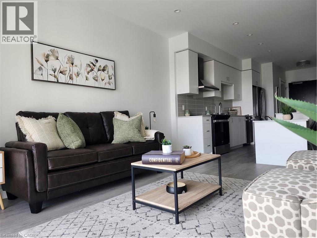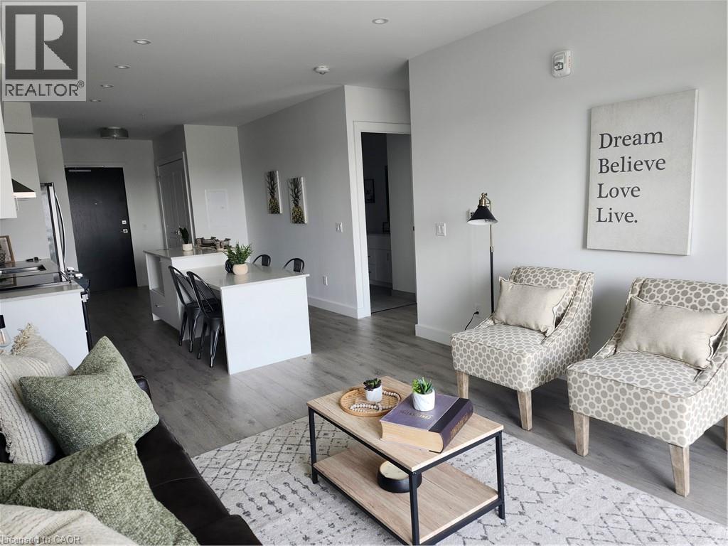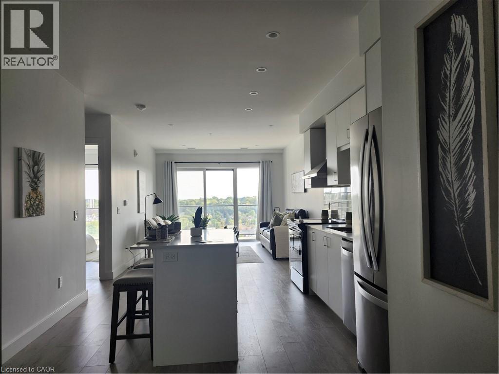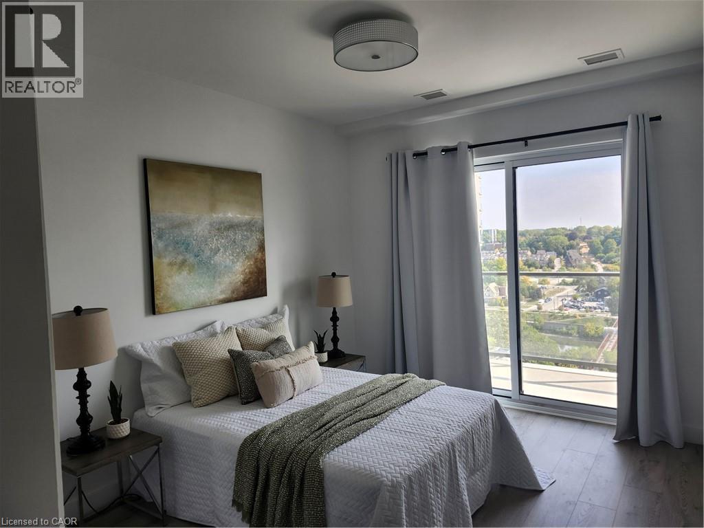 FOR SALE: 2 BEDROOM CONDO UNIT AVAILABLE IN THE HIGHLY SOUGHT-AFTER GASLIGHT DISTRICT! This brand new 1007 SQFT unit located in the Gaslight District — Cambridge’s new dining, entertainment, and culture hub is ready and waiting for you. With stellar views of West Galt and The Grand River, plenty of amenities in the surrounding area makes for perfect living. This unit offers 9’ ceilings, open concept kitchen/dining, large windows, in-suite laundry, a walk-in closet, and premium finishes throughout. The open balcony is spacious and offers panoramic views of the city, with easy access from both the living room and the bedroom. You’ll also enjoy exclusive access to new Gaslight Condos amenities: Exercise room; games room; study/library; and an expansive outdoor terrace with pergolas, fire pits, and BBQ areas overlooking Gaslight Square, large lobby, party room, media room complete with kitchen and dining space, rooftop patio, terrace, community barbecues, a fitness room and a yoga/pilates studio, bike storage and more. All this in the heart of downtown Cambridge - walking distance to cafes, restaurants, shops, 2 live theatres, a Farmer's Market, libraries, galleries, the University of Waterloo School of Architecture as well Grand River trails and watersports. One underground parking spot plus a locker. (id:51158)