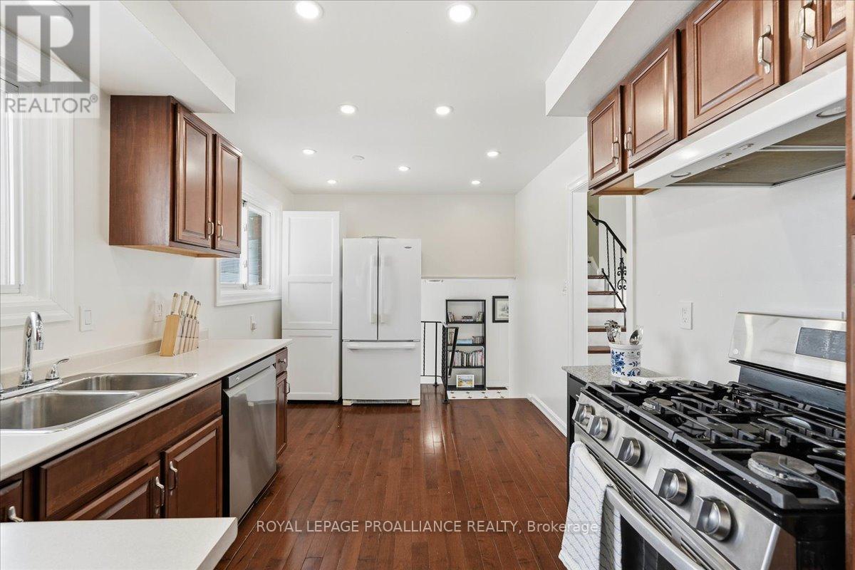Located in family-friendly West Park Village, this well-designed 4-level split offers space for everyone with three distinct living areas; a bright living room, cozy family room, and spacious rec room. The functional layout includes 3 bedrooms and 2 full bathrooms, ideal for growing families. Hardwood floors flow through the main living spaces and bedrooms, while the eat-in kitchen features a gas stove. The walk-out basement adds tremendous value, offering a second kitchen, laundry, great storage, and direct backyard access. Enjoy a fenced yard with patio, gardens, and gas BBQ hookup, plus convenient garage entry. A fantastic home in a sought-after neighbourhood. (id:51158)