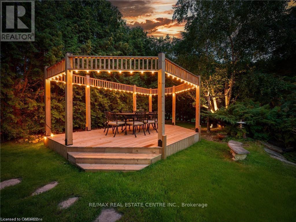 Welcome to this ULTRA-PRIVATE SECRET GARDEN - A Rare Executive Country Estate Property backing onto Blue Springs Golf Club (Home of PGA Canada) w/ the most stunning yard that will rival any luxury resort. This prestigious all-brick home features open concept living + fully finished basement. It is nestled on a stunning 1.38-ACRE LOT (including a beautiful side lot for added privacy) in a quiet enclave of distinguished executive homes. There is a sense of space as you enter the grand foyer w/ its 9' ceilings and curved staircase. The heart of this home is the gourmet EI kitchen which overlooks the WO to the stunning yard and living room w/ vaulted ceiling, fireplace and additional WO to the yard. There is a main level office located off the front entrance and convenient main level laundry w/ tub. The upper floor has 3 generous bedrooms (there were 4 - can easily convert back), one being the primary bedroom w/ his/her closets and 5-pc ensuite. The basement features an over-sized 4th bedroom, RI for bathroom, a 2nd office, gym, family room and workshop. The dream yard will take your breath away and includes a pavilion for dining al fresco, heated pool, koi pond w/ waterfall, golf-themed bar, screened-in pergola, extensive hardscaping (2000+ SF of flagstone installed on 3 of concrete for stability) and professional low-maintenance landscaping - the ultimate space for entertaining. Additional features: 3-car garage, parking for 10+ in the driveway, garage entry to home, replaced exterior doors, no rentals, energy efficient gas pool heater (2018), new pool liner and cover (2025), furnace (2017), well pump (2024); water softener, UV system, HWT all owned; all windows replaced and home re-insulated, extensive UG sprinklers (including side lot), 12 x 16 double-sided pine Mennonite-built shed. Peaceful location close to golf, trails, lake, 15 minutes to 401. This is your opportunity to finally make a luxury move to the country. Thank You for showing our listing! (id:51158)