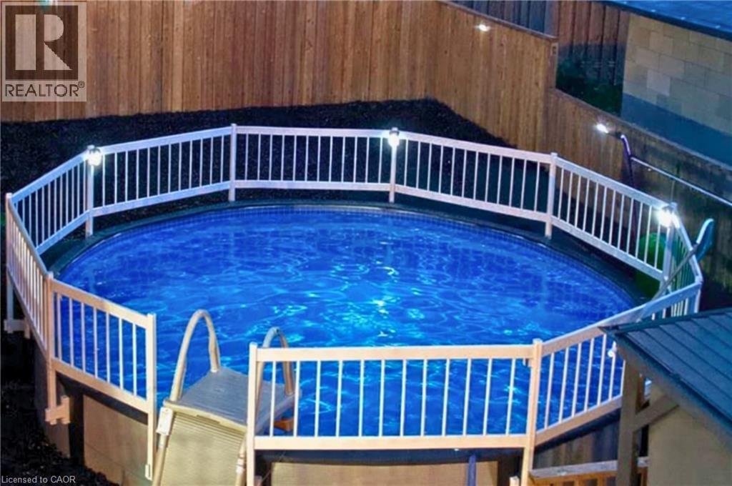 Welcome home to 150 Glamis Road Located in a desirable North Galt location, this beautifully updated semi-detached property with over 1400 sqft of finished living space is decoratively on-point and move-in ready! The bright main level offers a spacious living room with a gorgeous feature wall and an updated eat-in kitchen (2019) with plenty of cabinetry, and counter space plus a charming coffee nook to enjoy. Upstairs, there are three good-sized bedrooms along with an updated 4-piece bath (2021). The finished bsmt offers additional living space, including a 3 piece bath, a den/office and a potential 4th bedroom. Outside, the home has great curb appeal, parking for 3 vehicles, and a spacious backyard. An exposed aggregate patio (2018), gazebo, and heated above-ground pool create a comfortable space to relax and enjoy the warmer months. Notable updates include carpet-free flooring and fresh paint throughout, windows (2022), a high-efficiency furnace (2019), newer fridge, dishwasher and clothes washer (2025), exterior doors (2023), roof (2024), and an upgraded electrical panel (2021). Located in a convenient and family-friendly neighbourhood, close to schools, parks, and shopping, along with quick access to the 401, this home will not last long! (id:51158)
