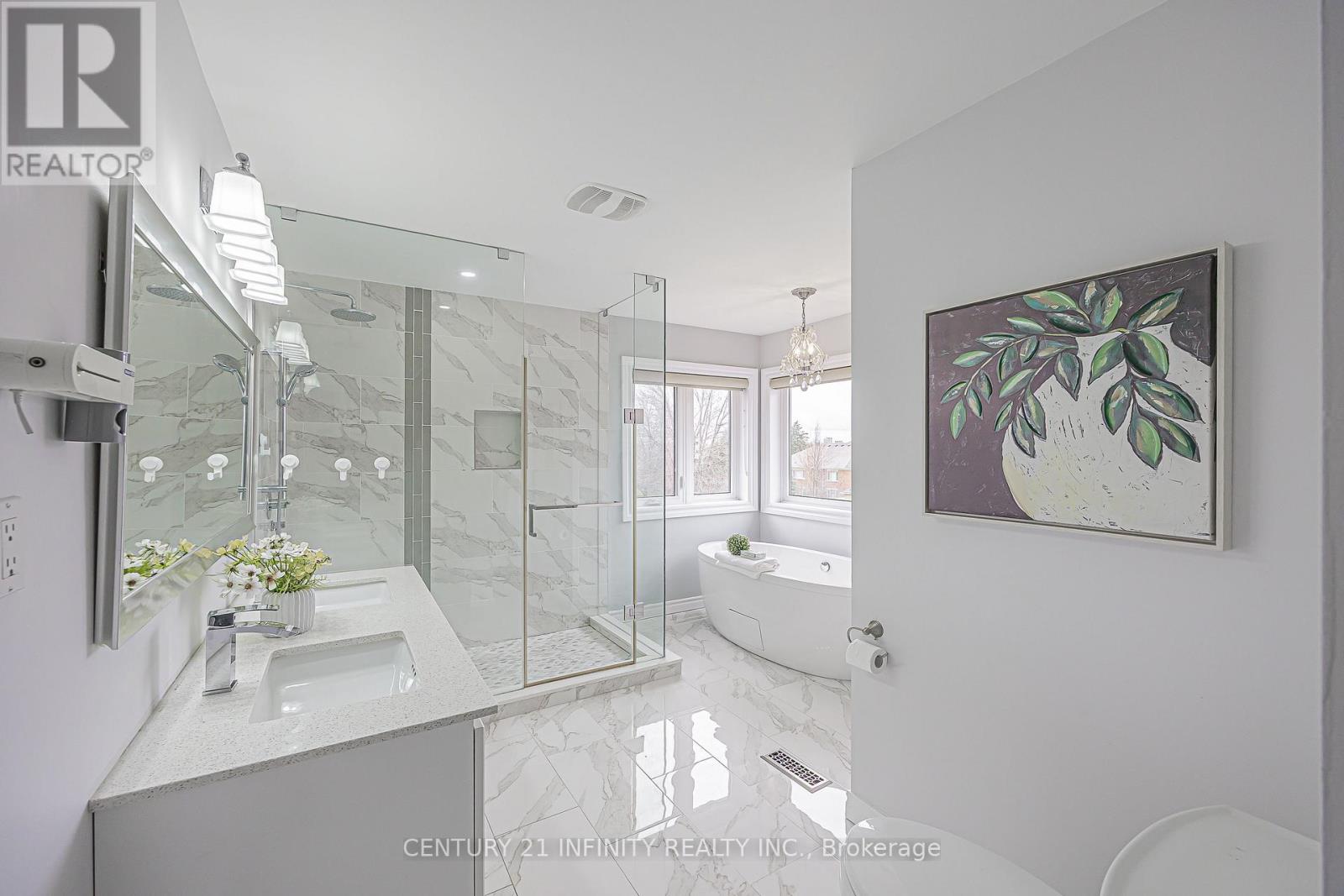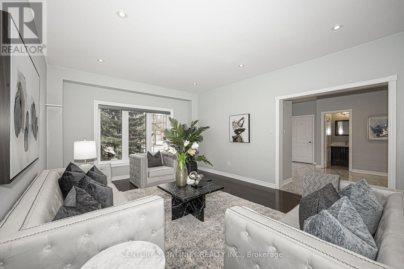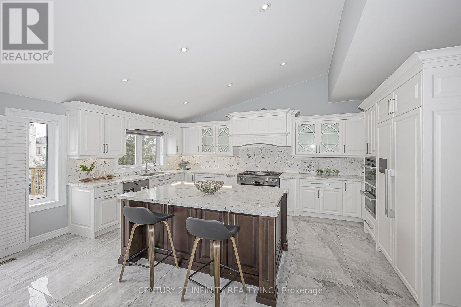 **OPEN HOUSE SUNDAY APRIL 12 FROM 2-4PM** Amazing family home with nearly 5,000 sqft. of finished living space, including a fully finished walk-out basement. Features 9-ft ceilings, a soaring vaulted roofline in Family Room and Kitchen; Fireplace with accent wall, hardwood flooring throughout, and elegant large tile flooring on the main level. High-end customized kitchen with premium quartz counters, centre island, backsplash, and top-of-the-line German-made Miele appliances. Main-floor large bedroom ideal for seniors, guests, or office use. A stunning spiral hardwood staircase with elegant iron railings leads to a spacious and sunlight-filled second-floor landing and hallway. Spacious primary suite with upgraded ensuite featuring free standing tub and spacious walk-in shower, and Large size walk-in closet with built-in organizer. Two bedrooms with semi-ensuite 3pc washroom; large bedroom with bay window and extra size closet. Fully finished Walk-out basement comes with extra size L-shape recreation room, bedroom, den and cooler room, and 3-pc bathroom; beautiful Wainscoting in basement wall; walk-out to patio and fenced yard, custom-built triple-tier deck for outdoor time; professionally finished interlock driveway with extra parking. Minutes to sought-after Bayview Hill P.S. and top-ranked school boundary. (id:51158)