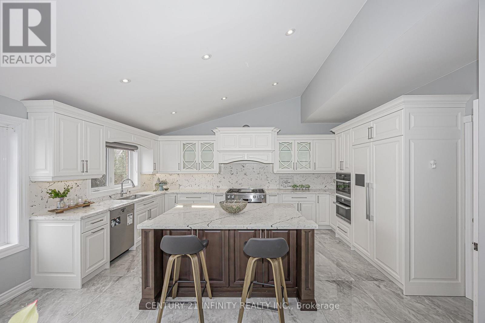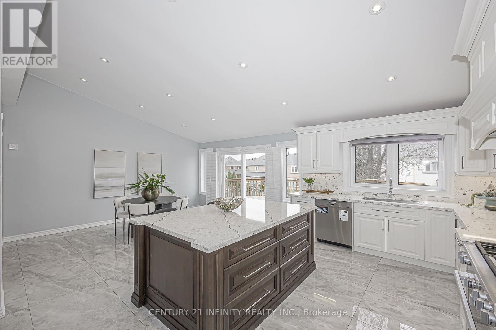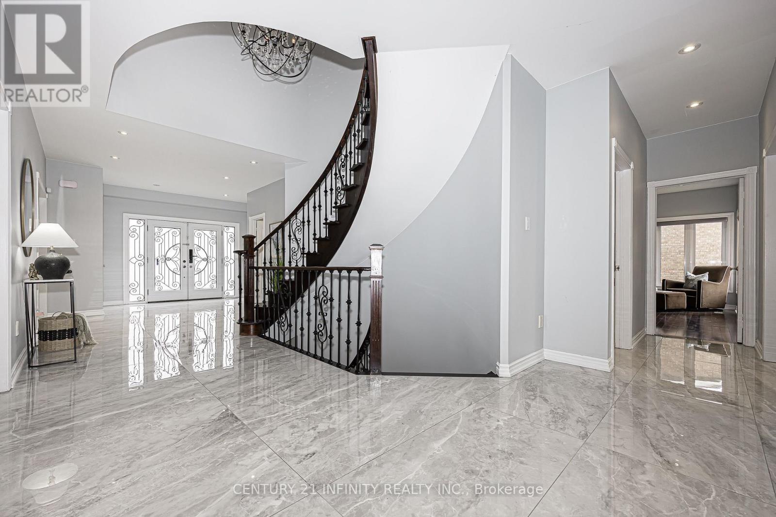 **OPEN HOUSE SUNDAY APRIL 12 FROM 2-4PM** Amazing family home with nearly 5,000 sqft. of finished living space, including a fully finished walk-out basement. Features 9-ft ceilings, a soaring vaulted roofline in Family Room and Kitchen; Fireplace with accent wall, hardwood flooring throughout, and elegant large tile flooring on the main level. High-end customized kitchen with premium quartz counters, centre island, backsplash, and top-of-the-line German-made Miele appliances. Main-floor large bedroom ideal for seniors, guests, or office use. A stunning spiral hardwood staircase with elegant iron railings leads to a spacious and sunlight-filled second-floor landing and hallway. Spacious primary suite with upgraded ensuite featuring free standing tub and spacious walk-in shower, and Large size walk-in closet with built-in organizer. Two bedrooms with semi-ensuite 3pc washroom; large bedroom with bay window and extra size closet. Fully finished Walk-out basement comes with extra size L-shape recreation room, bedroom, den and cooler room, and 3-pc bathroom; beautiful Wainscoting in basement wall; walk-out to patio and fenced yard, custom-built triple-tier deck for outdoor time; professionally finished interlock driveway with extra parking. Minutes to sought-after Bayview Hill P.S. and top-ranked school boundary. (id:51158)